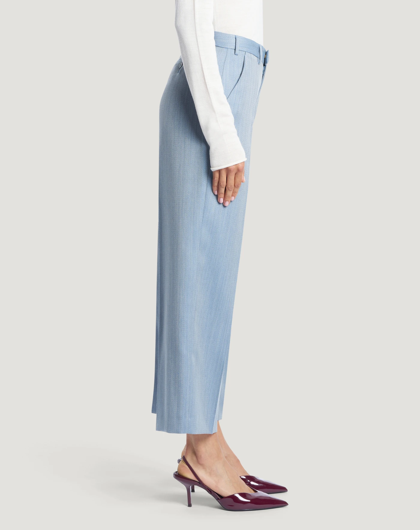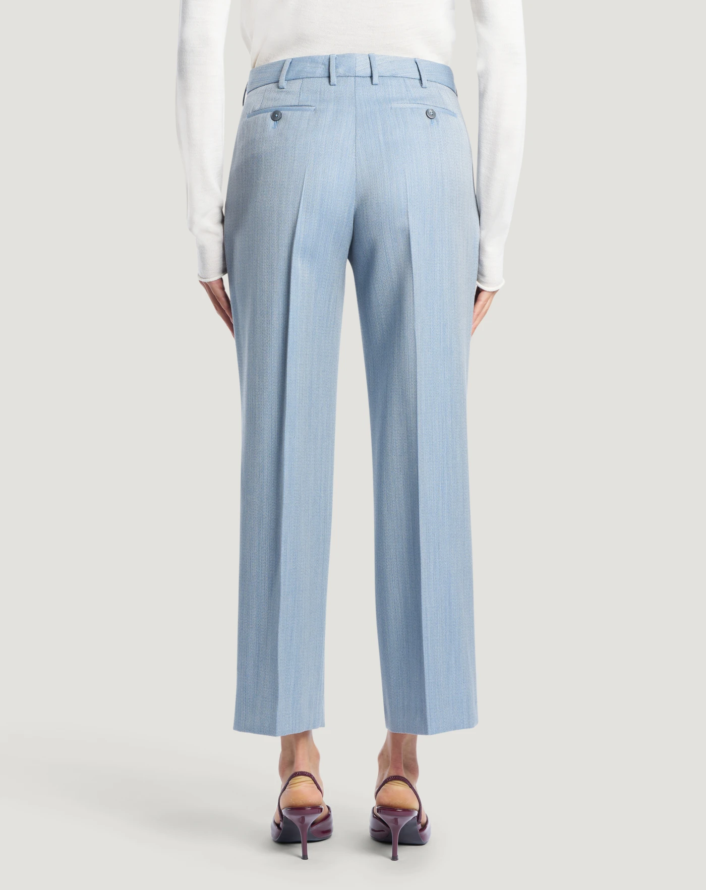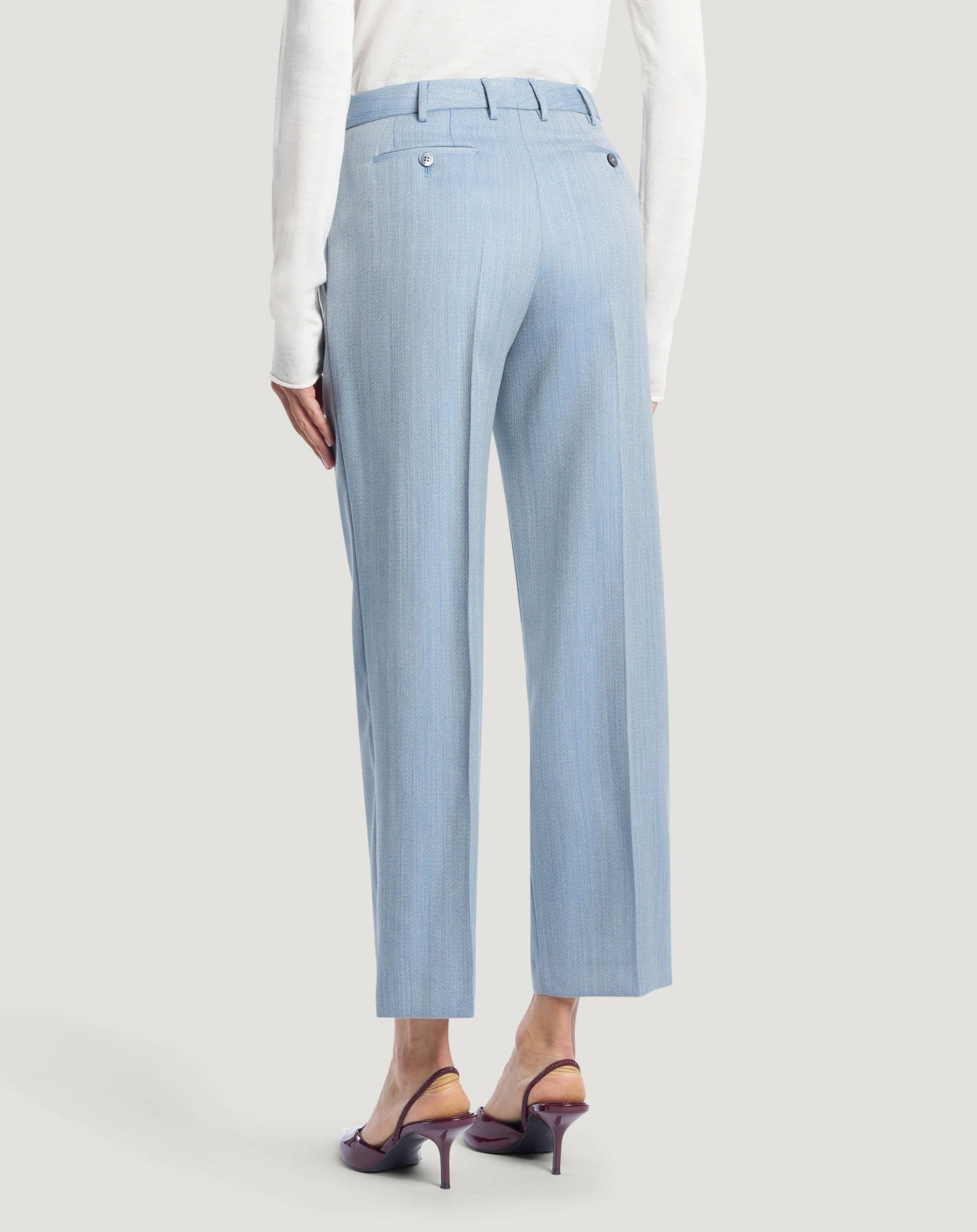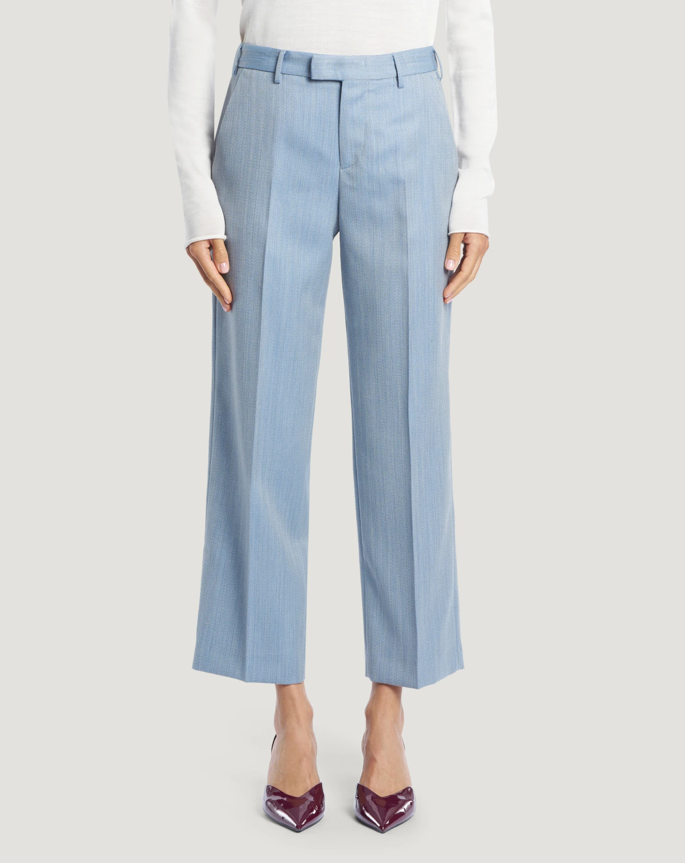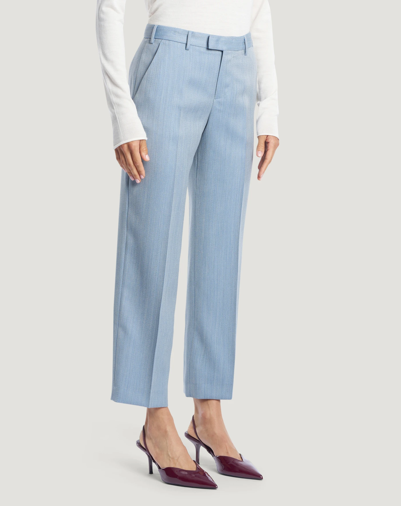 Hose aus reiner Wolle mit Malfilé-Effekt, einem Stoff, der sich weich anfühlt, angenehm zu tragen ist und einen hochwertigen Eindruck vermittelt.Das Modell mit gerader, schmaler Passform verfügt über ein schlichtes Design, das sich sowohl für einen lässigen als auch für einen eleganten Look eignet.
