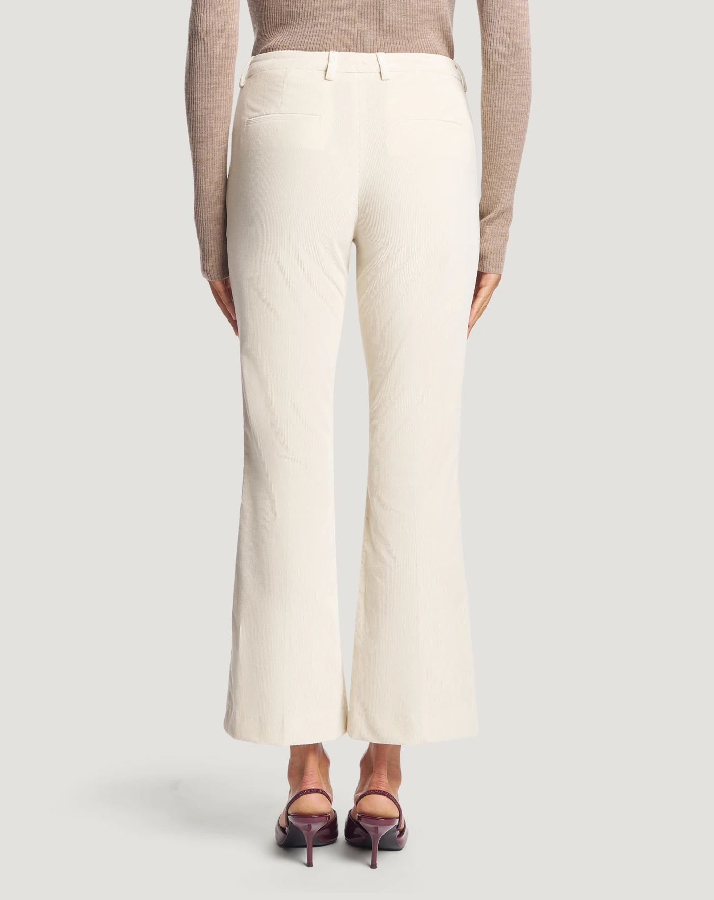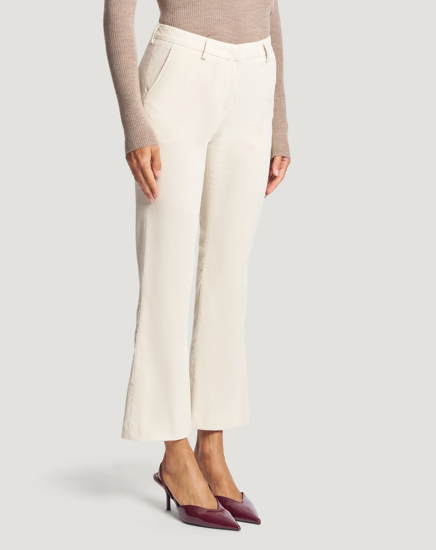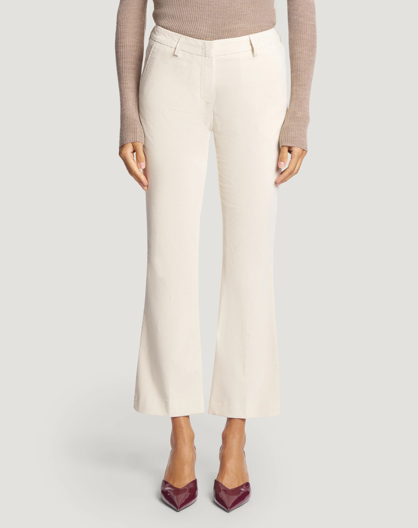 Samthose aus elastischem Baumwollmischgewebe in Feincord-Qualität mit superweichem Griff und einer glänzenden Farbe.Das knöchellange Modell mit ausgestelltem Schnitt in Weiß ist die ideale Wahl, um Ihren Alltagslook aufzufrischen.
