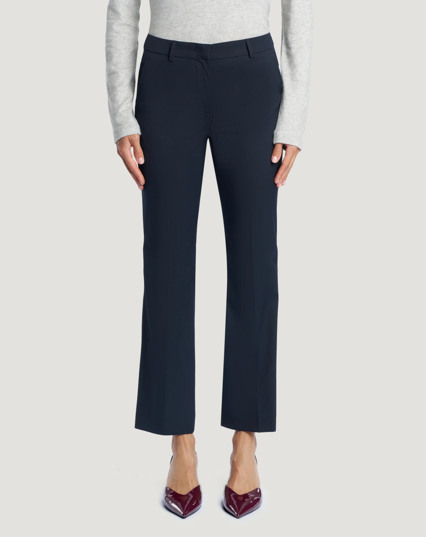 Hose aus superleichtem Active-Wolltwill, einem Stoff mit technischem und raffiniertem Look, perfekt für den Alltag.Das knöchellange Modell mit ausgestelltem Schnitt in Blau eignet sich ideal für besondere Anlässe.