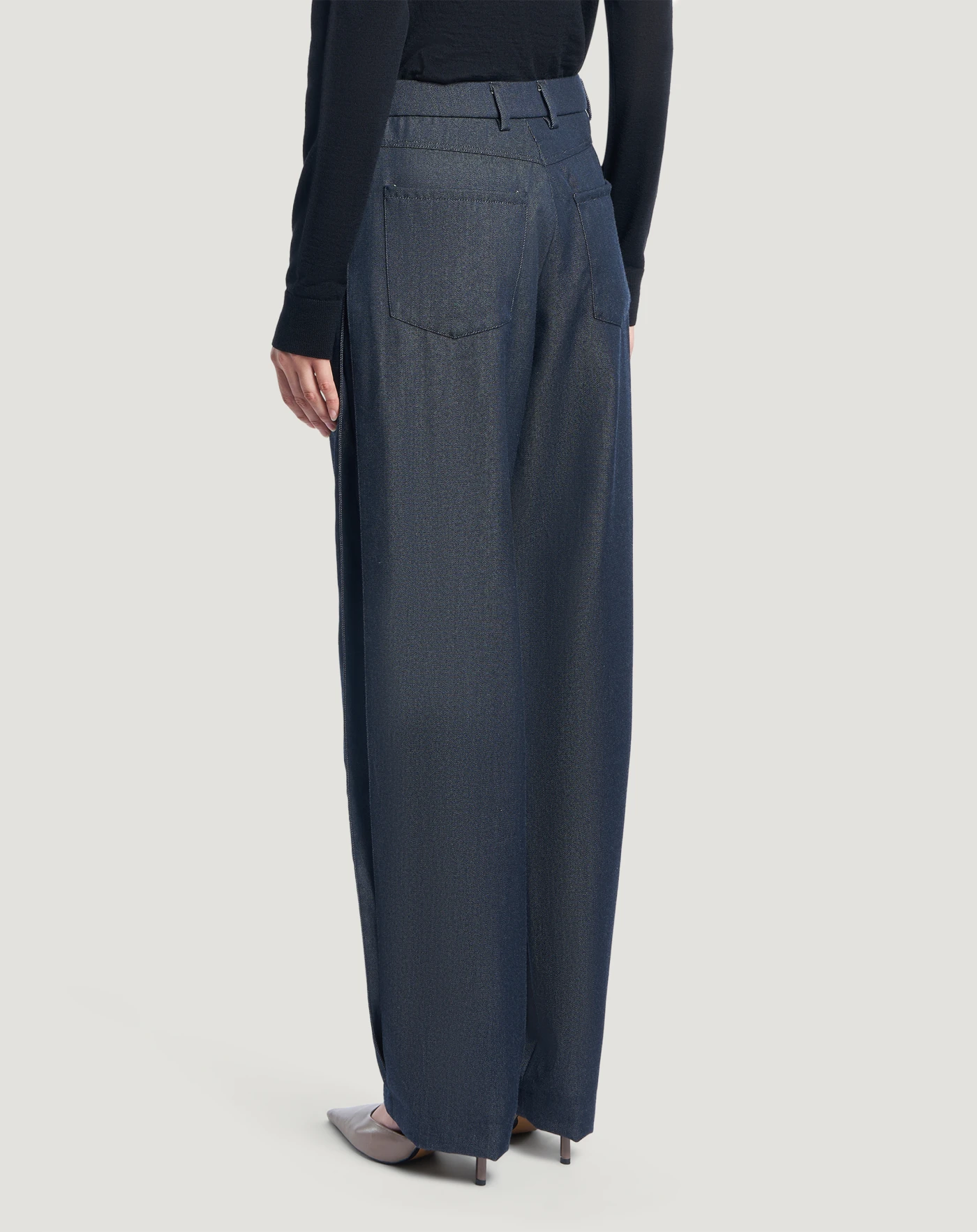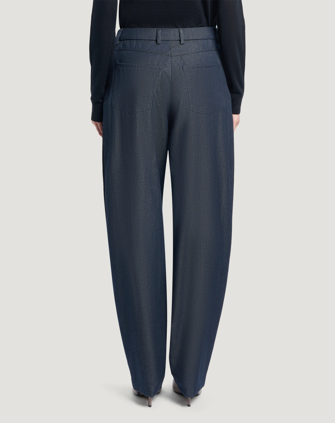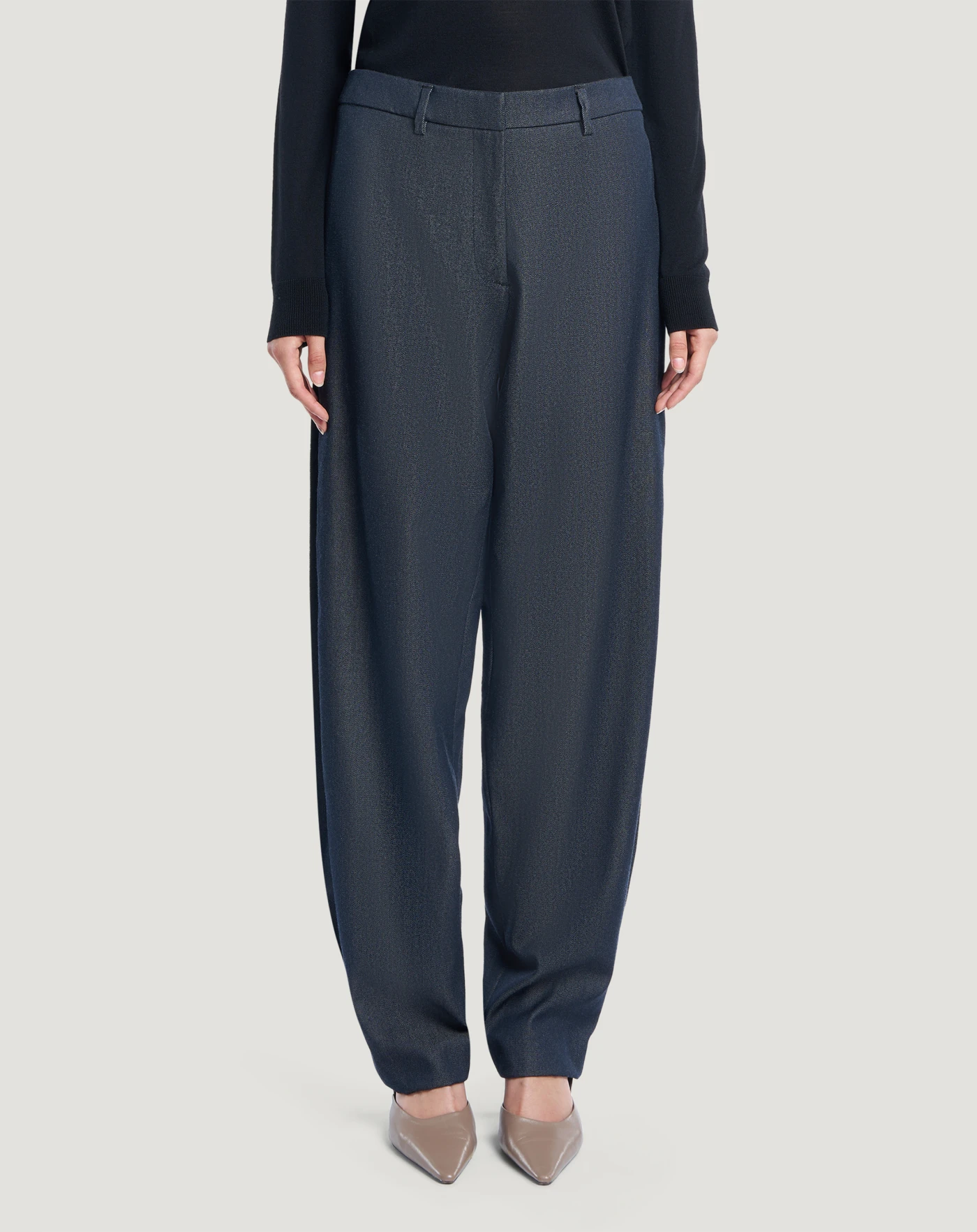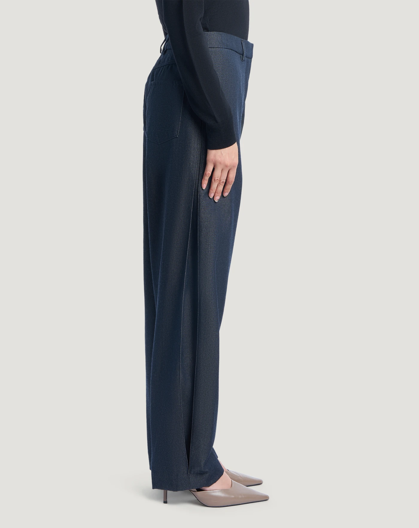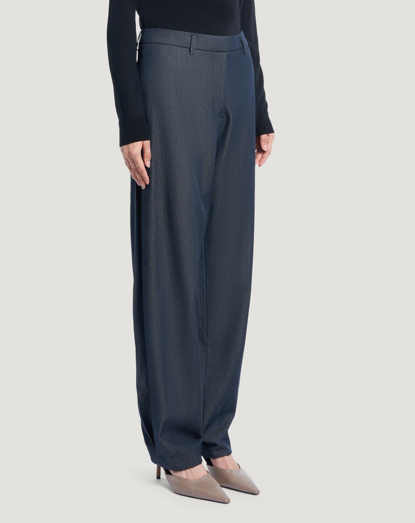 Hose aus Wolle und Baumwolle in Denim-Optik.Das Modell mit weitem, entspanntem Schnitt und Einsätzen an den Seiten sorgt für ein neuartiges Design. Die Variante in Dunkelblau in Denim-Optik verleiht Ihrem Stil einen zeitgemäßen Touch.