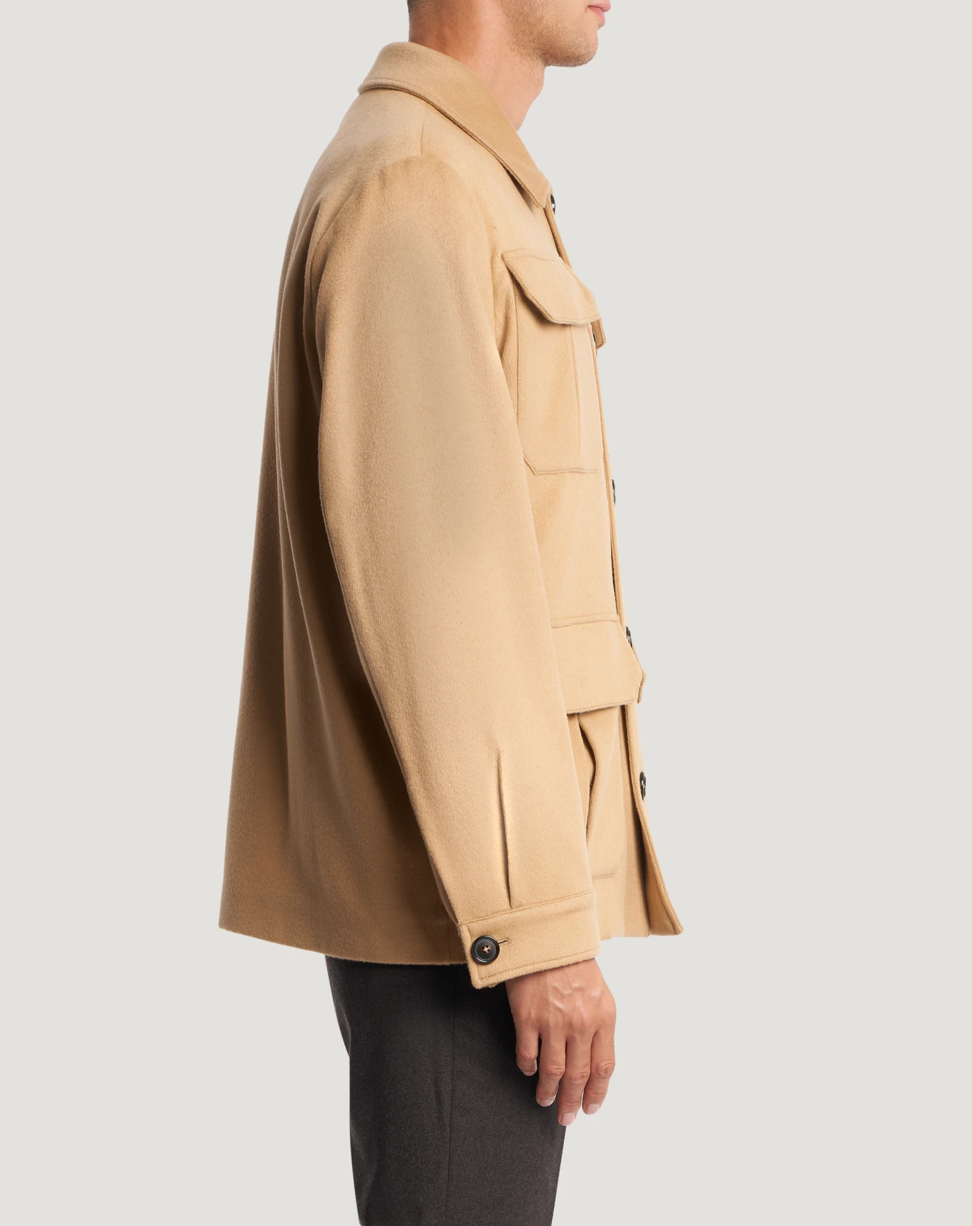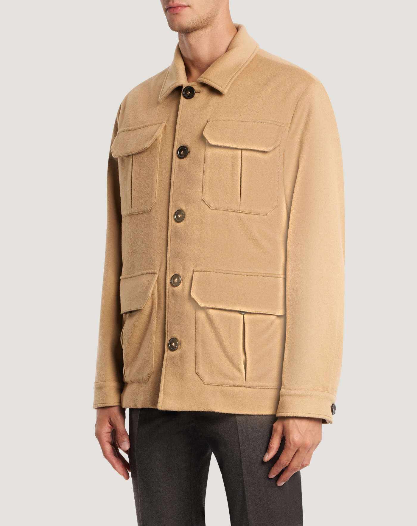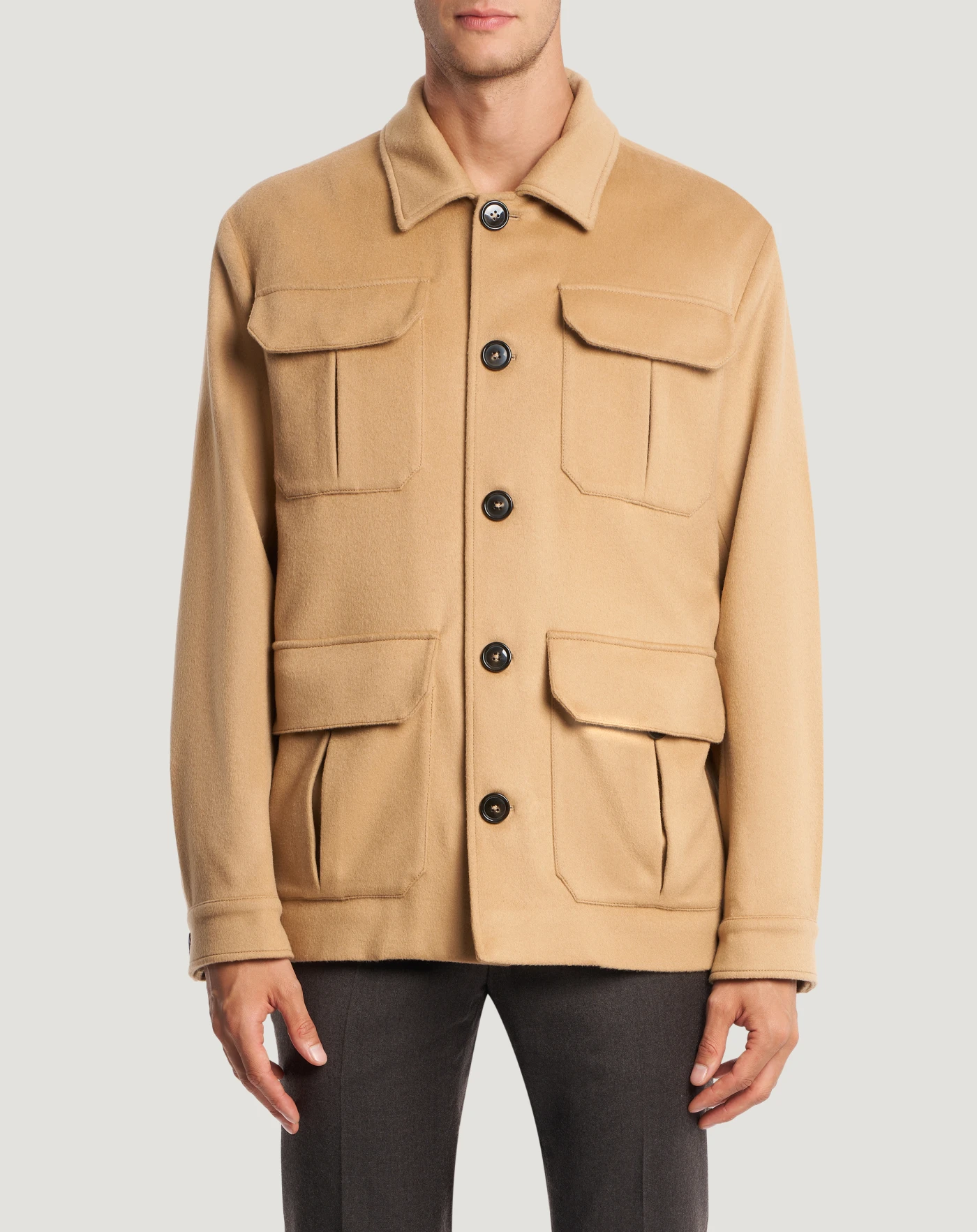Explorer-Jacke aus Woll- und Kaschmirstoff, einem feinen, warmen und angenehm zu tragenden Gewebe.Eine bequeme Passform und Maxi-Taschen zeichnen das Design aus. Wählen Sie die Variante in Kamelbrau, um Ihren Looks eine raffinierte Note zu verleihen.