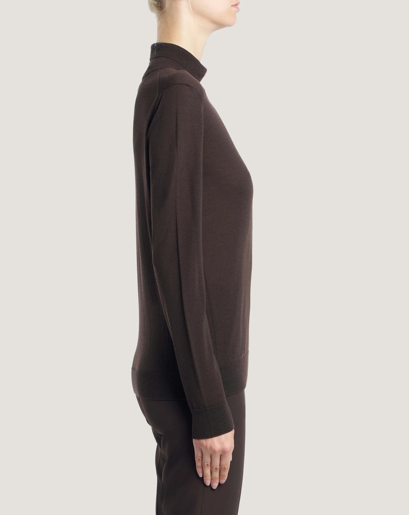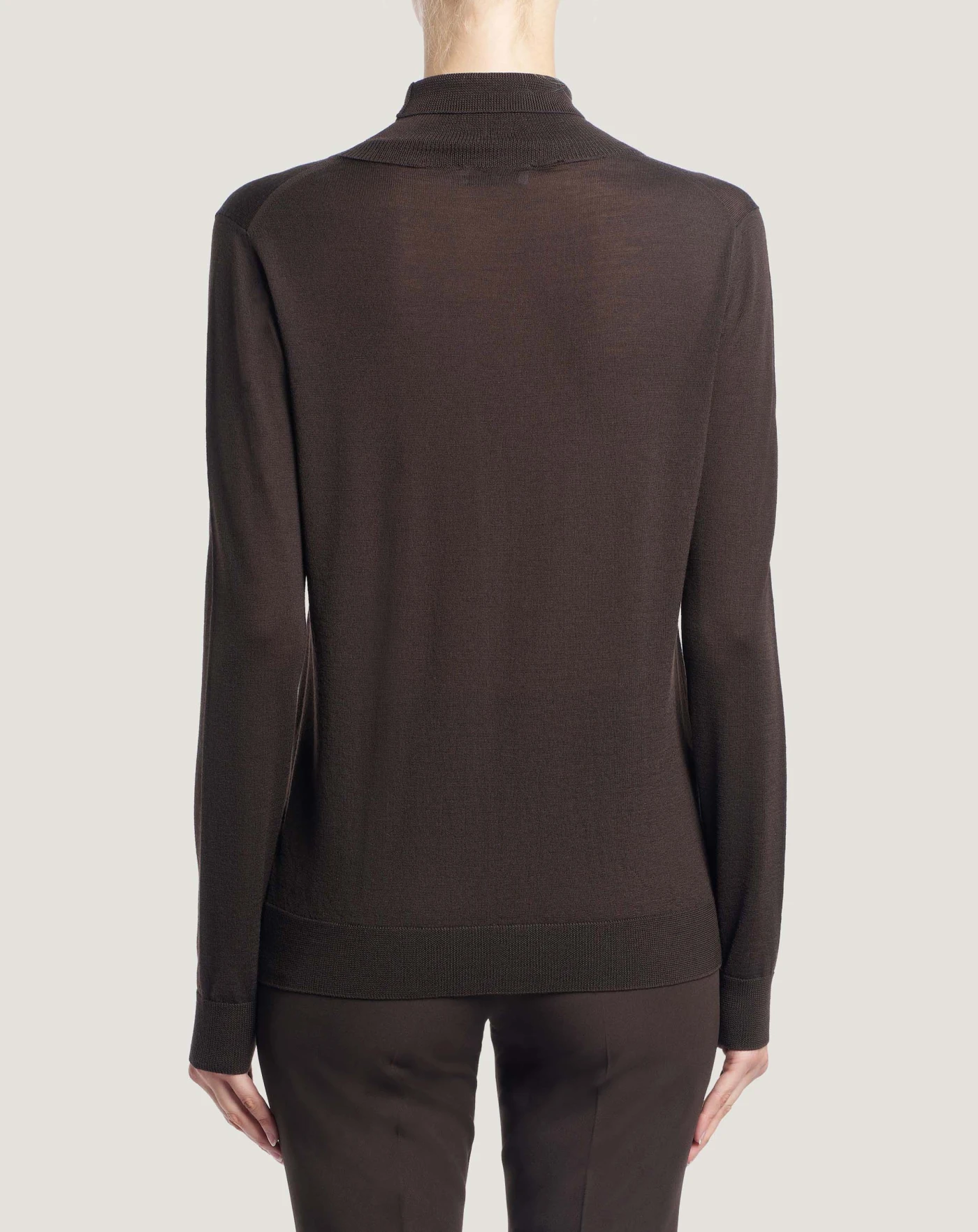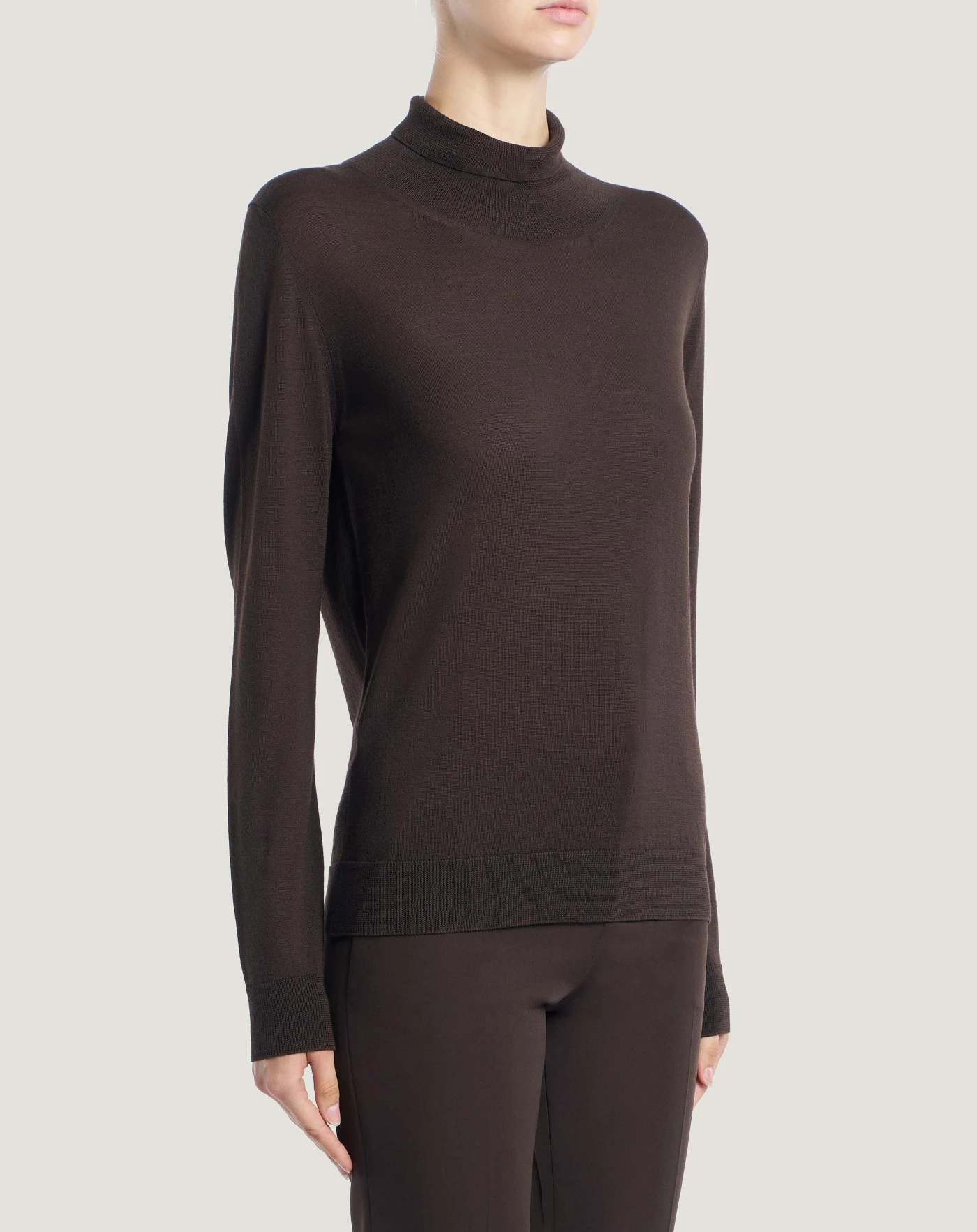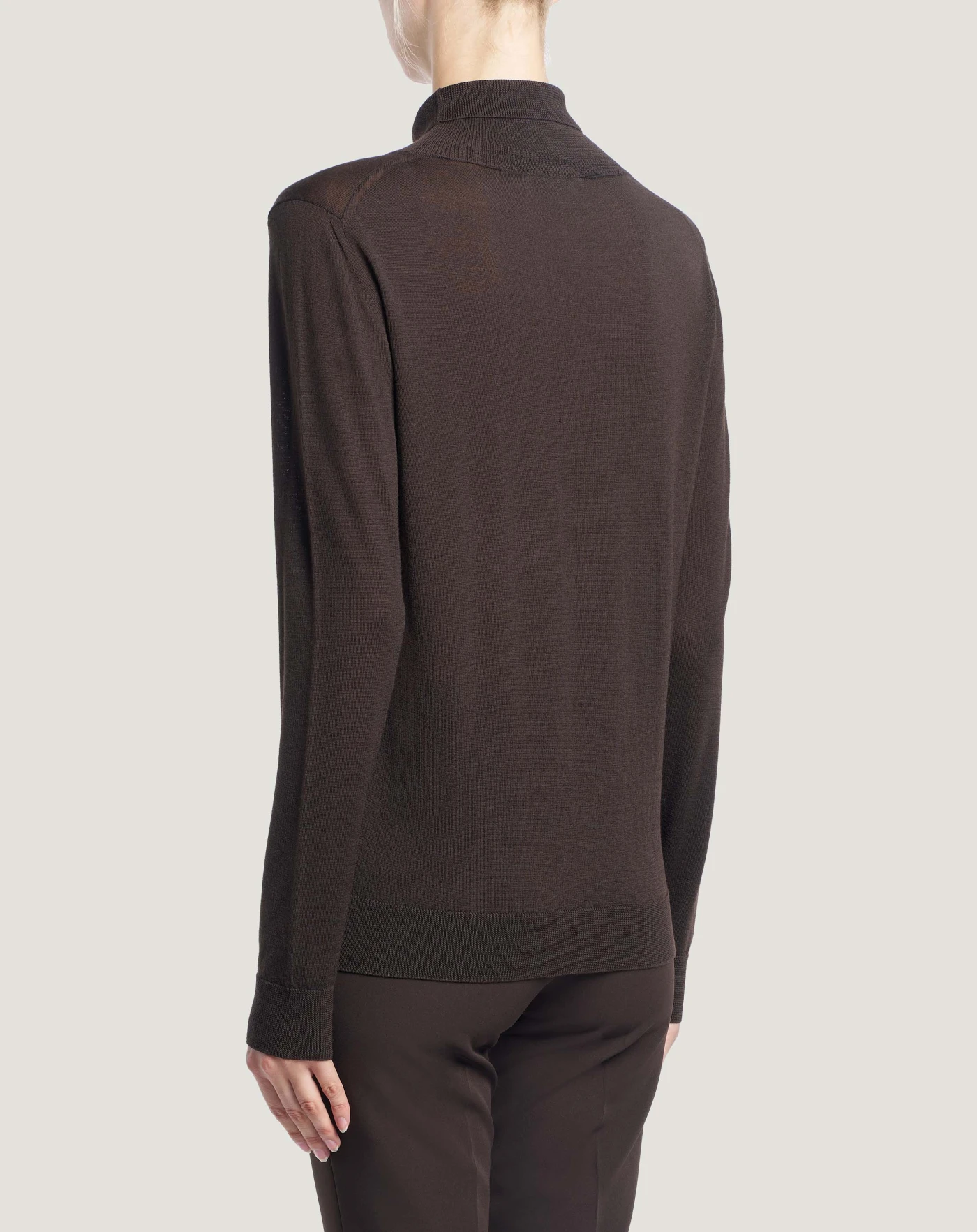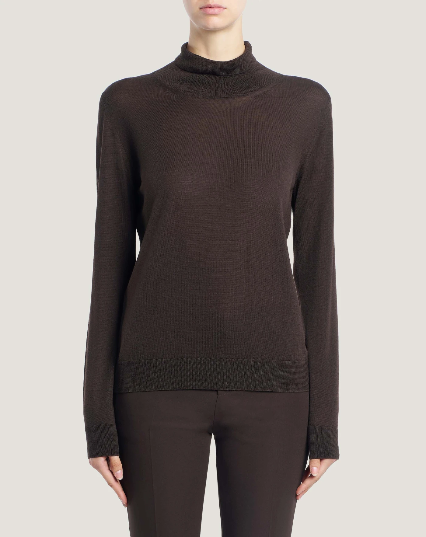 Pullover aus extrafeiner Wolle in Glattstrick mit Fadenfeinheit 18, die das Kleidungsstück leicht und sehr angenehm macht.Das Modell in normaler Passform mit hohem Kragen hat ein schlichtes und vielseitiges Design, das sowohl formelle als auch legere Looks abrundet und perfekt unter dem Blazer getragen werden kann. Die Variante in Braun verleiht Ihrem Look mehr Intensität.