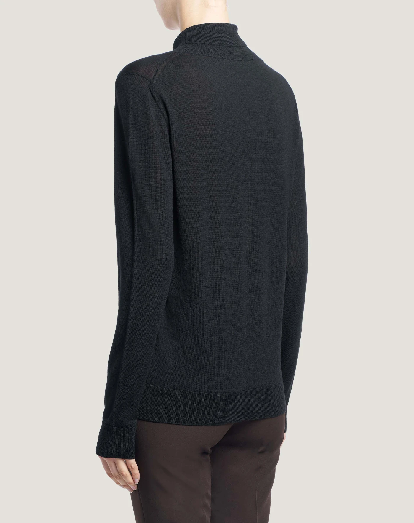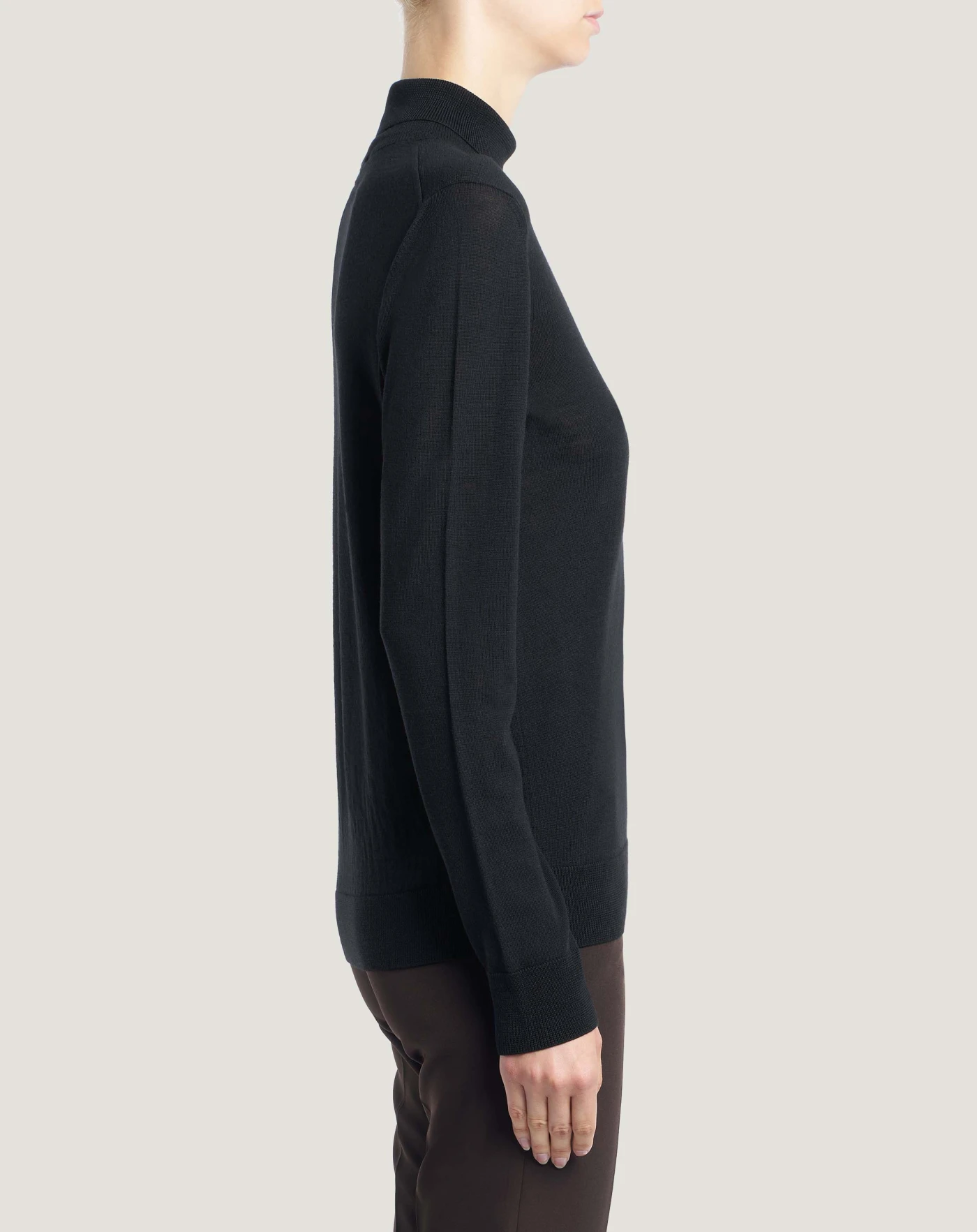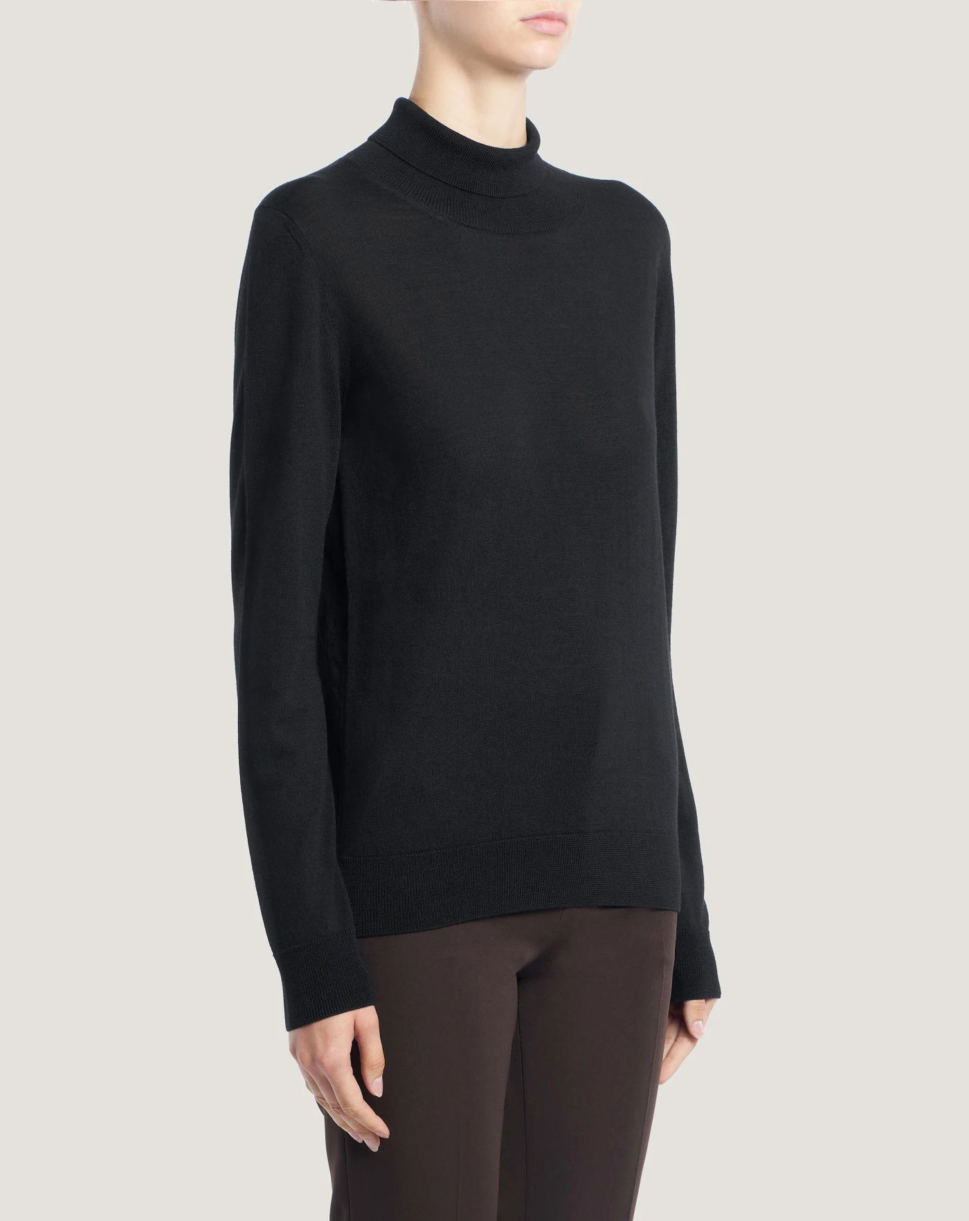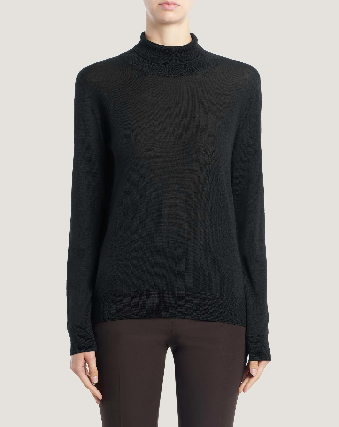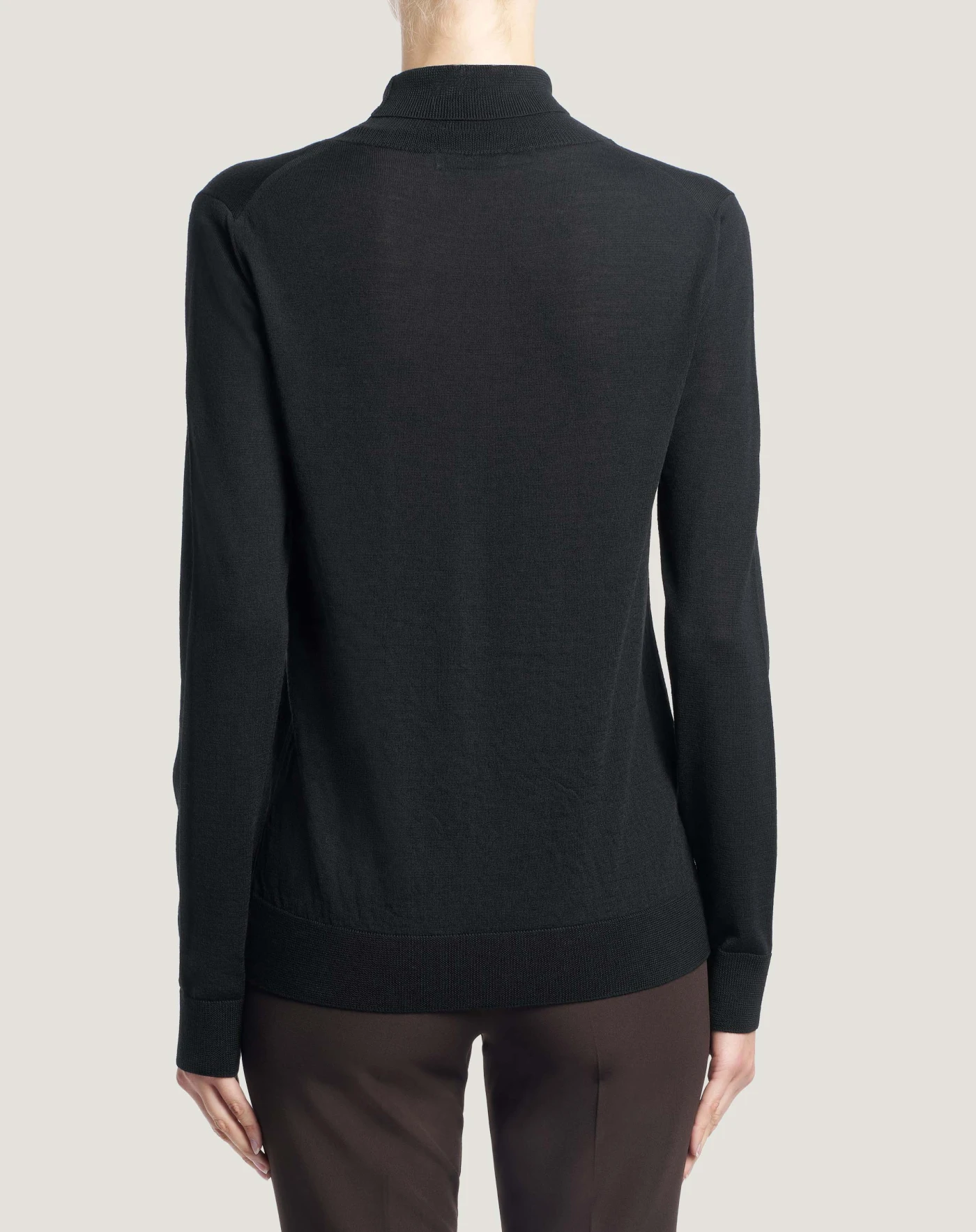 Pullover aus extrafeiner Wolle in Glattstrick mit Fadenfeinheit 18, die das Kleidungsstück leicht und sehr angenehm macht.Das Modell in normaler Passform mit hohem Kragen hat ein schlichtes und vielseitiges Design, das sowohl formelle als auch legere Looks abrundet und perfekt unter dem Blazer getragen werden kann. Wählen Sie die Variante in Schwarz für einen eleganten Stil.