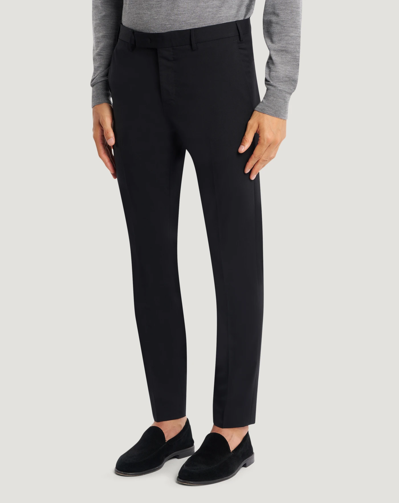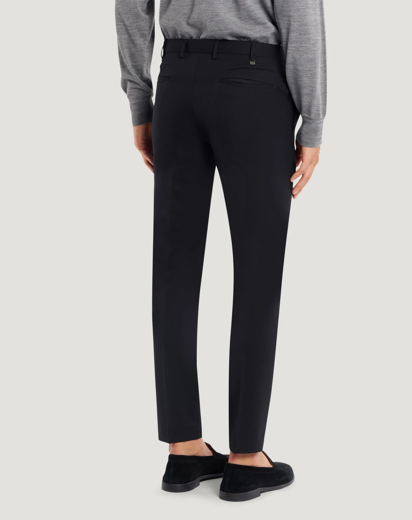 Trousers in bi-stretch batavia wool, a fabric distinguished by a stretch weave that adapts to the body’s movements, ensuring a look that is both elegant and comfortable yet light.With a smooth front and skinny fit, these ankle-length trousers feature a simple, tailored design. Choose the navy blue variant to complete a special occasion look with relaxed elegance.