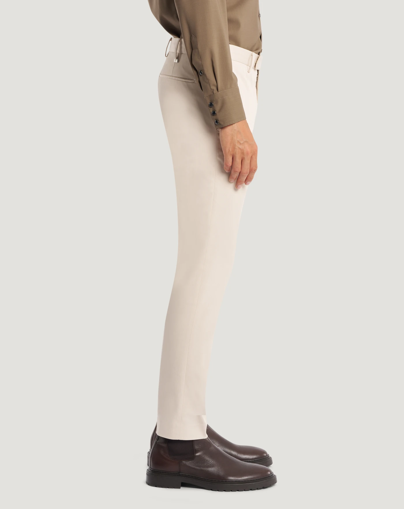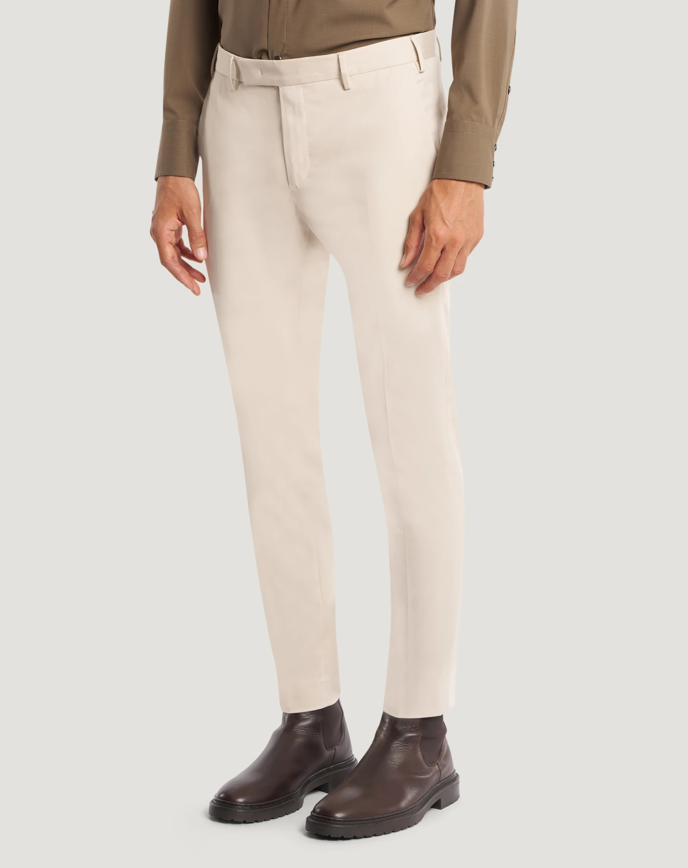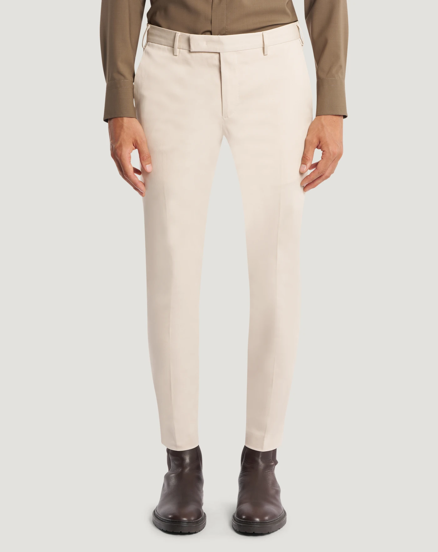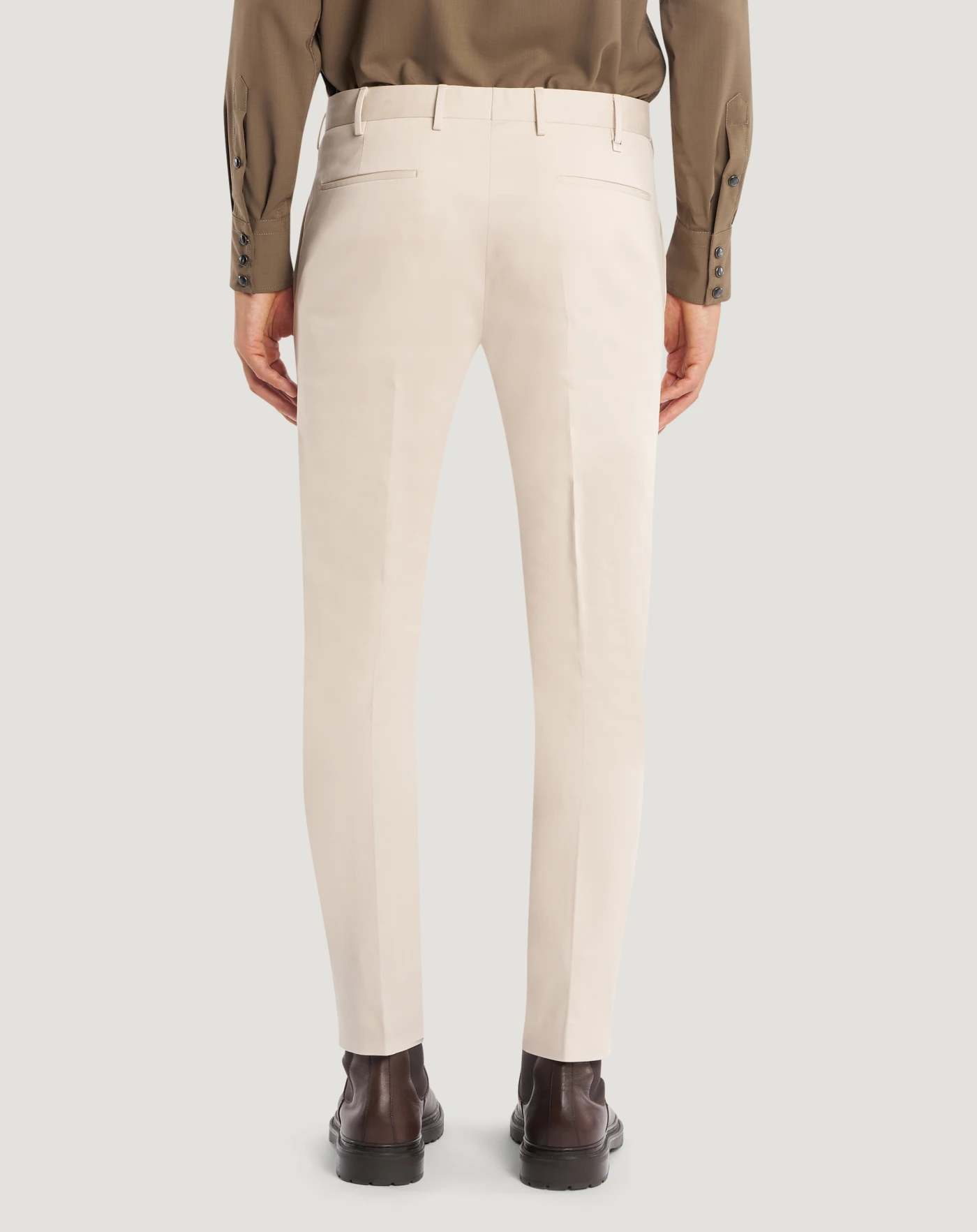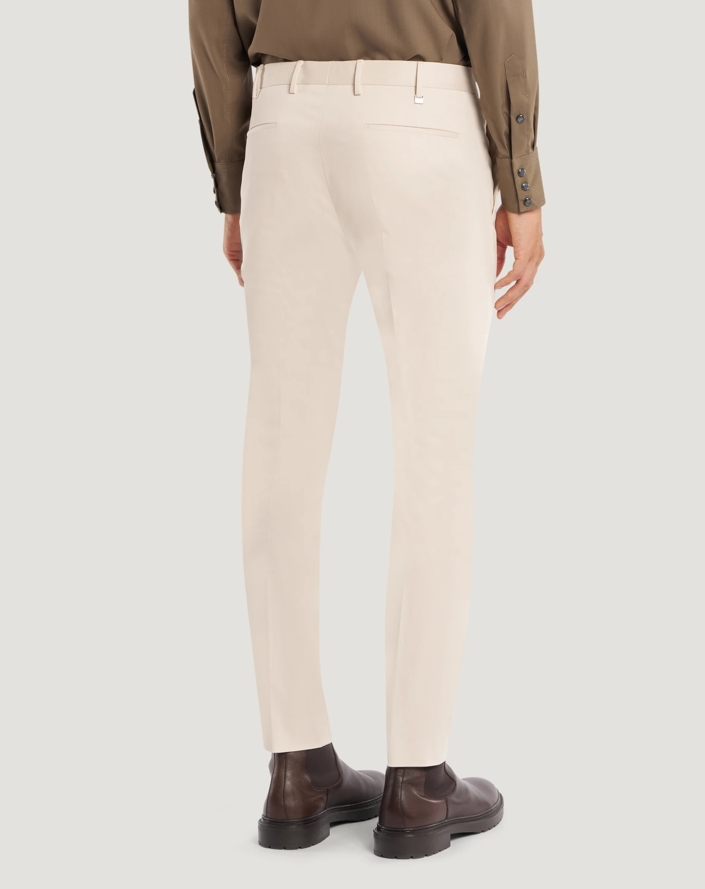 Trousers in stretch gabardine with a clean, minimal look featuring a tight diagonal weave. The elasticated component ensures comfort and freedom of movement, while the smooth, even surface adds a sophisticated and contemporary look.With a smooth front and skinny fit, these ankle-length trousers feature a simple, tailored design.