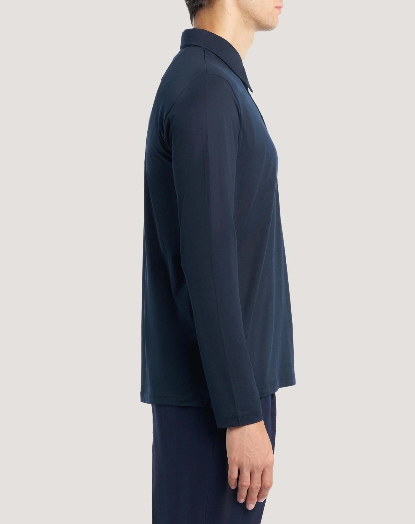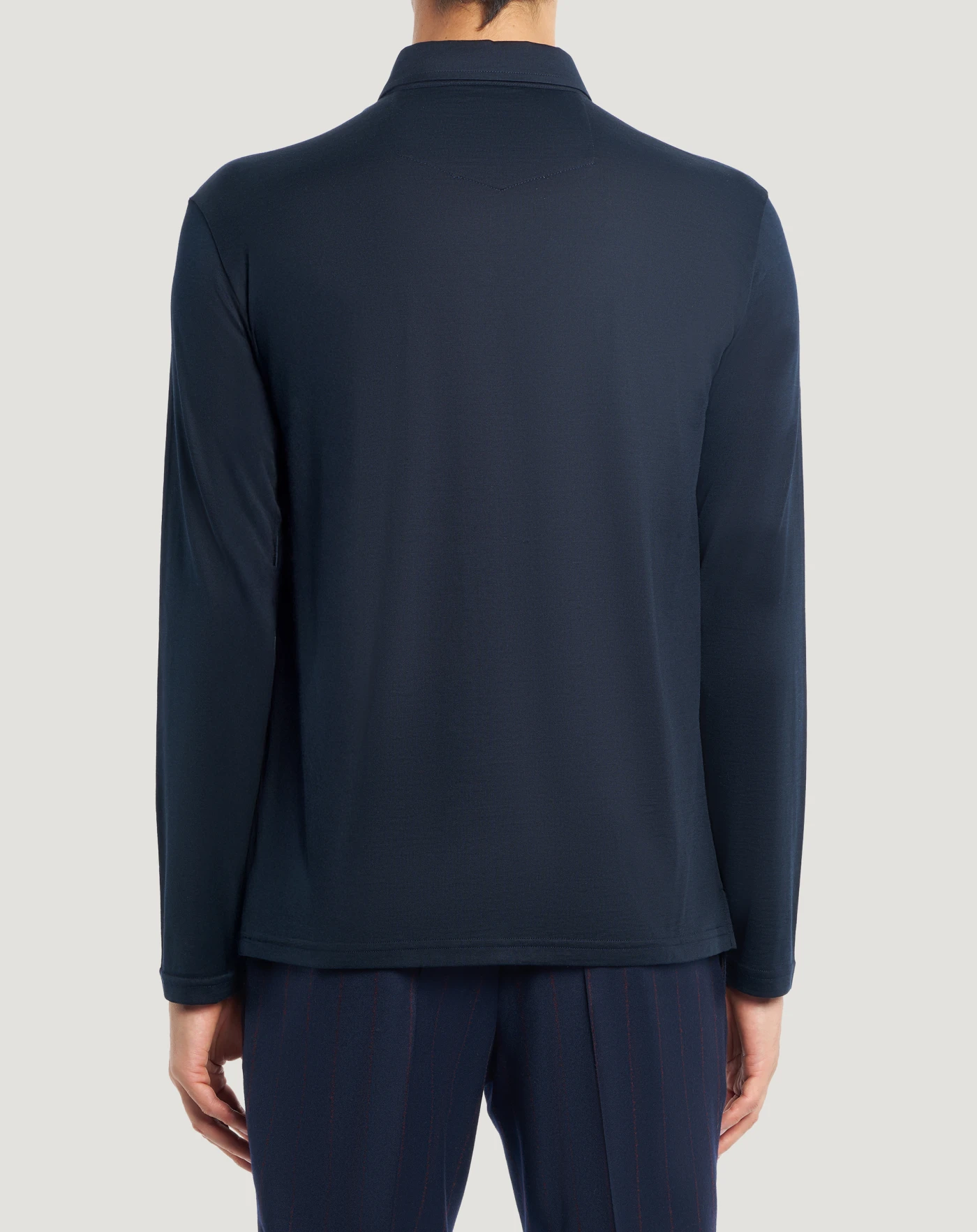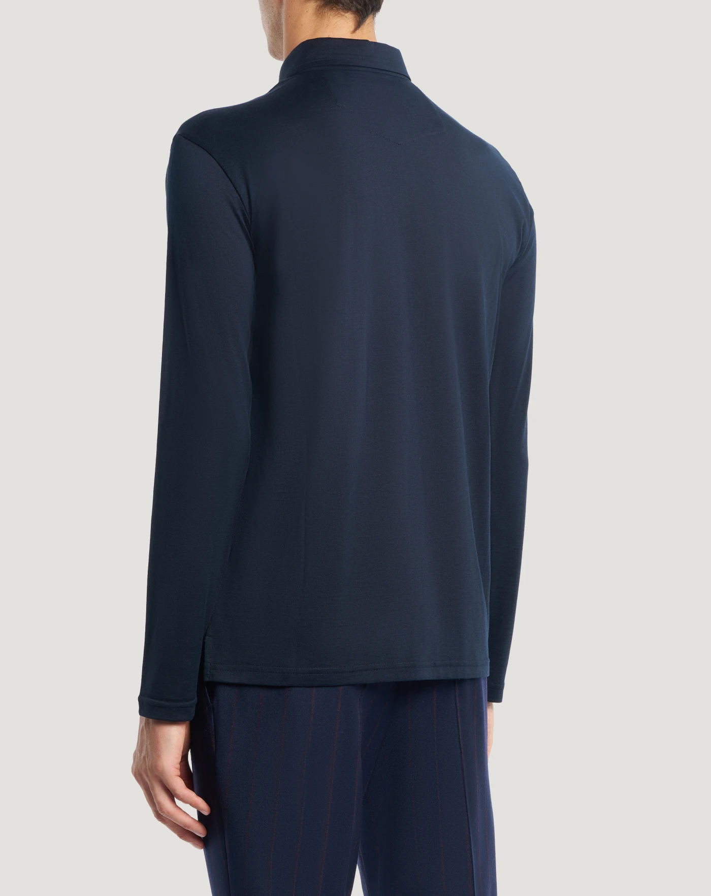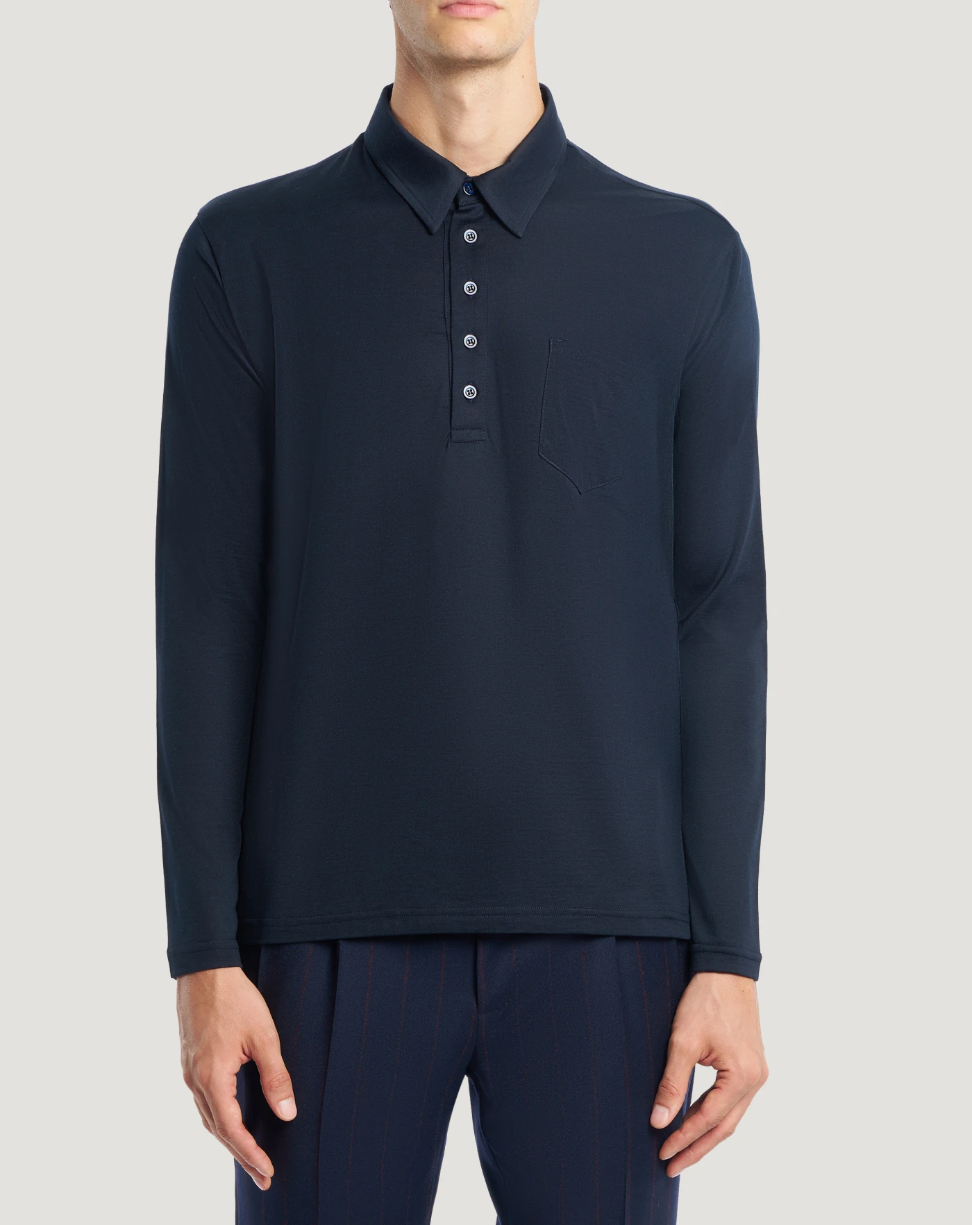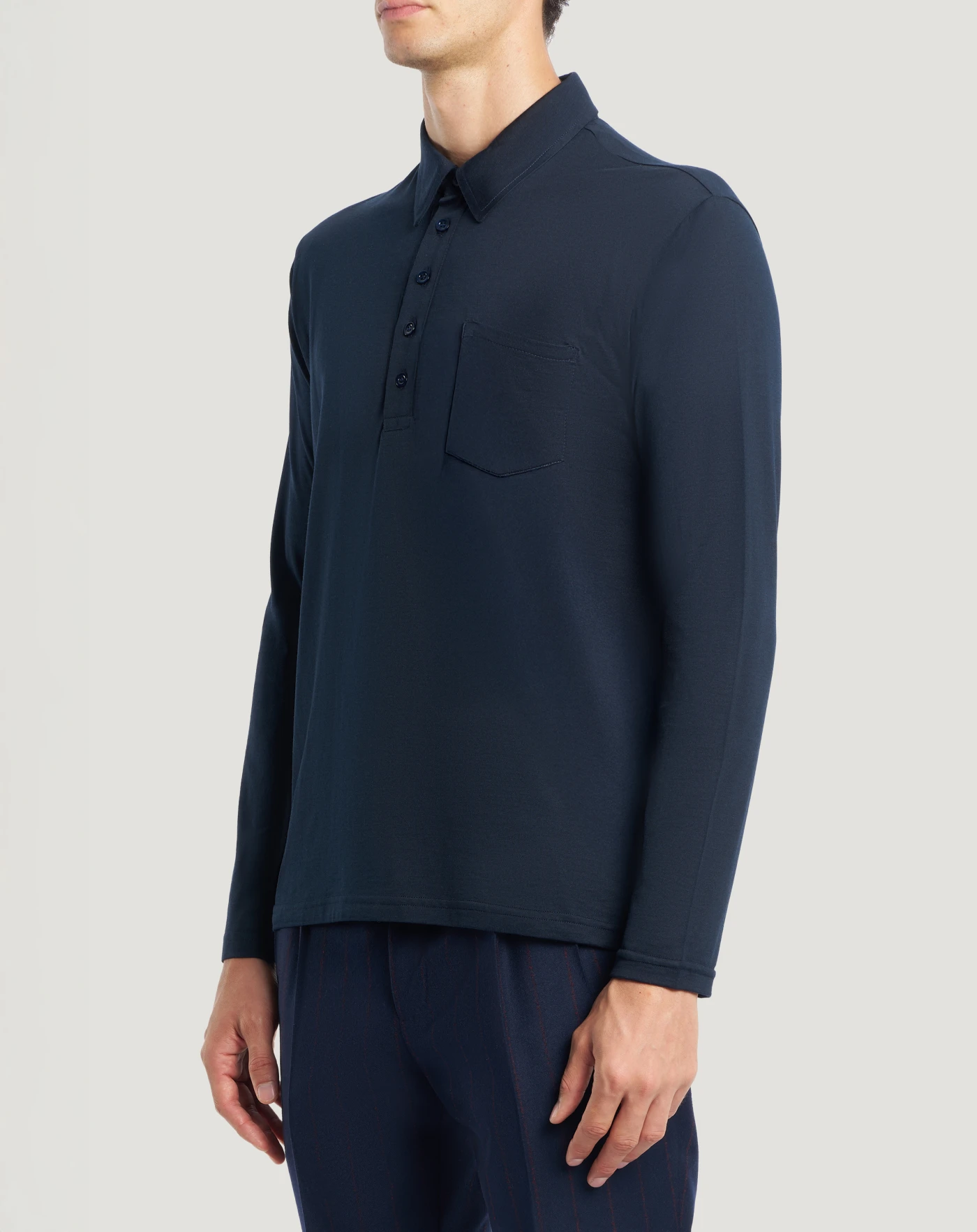 Polo neck jumper in cotton and silk jersey, a functional and high-quality fabric with an elegant and timeless look.With a patch pocket and regular fit, it will be the perfect wild card in your wardrobe – in navy blue for an edgy look.
