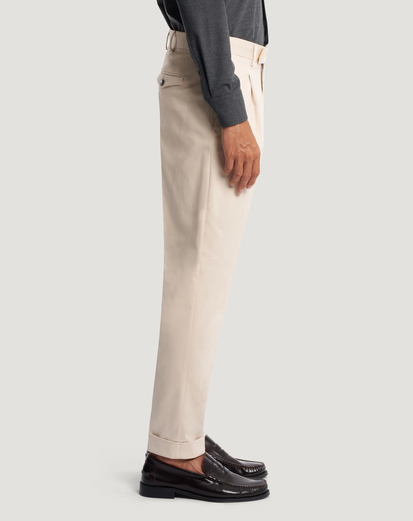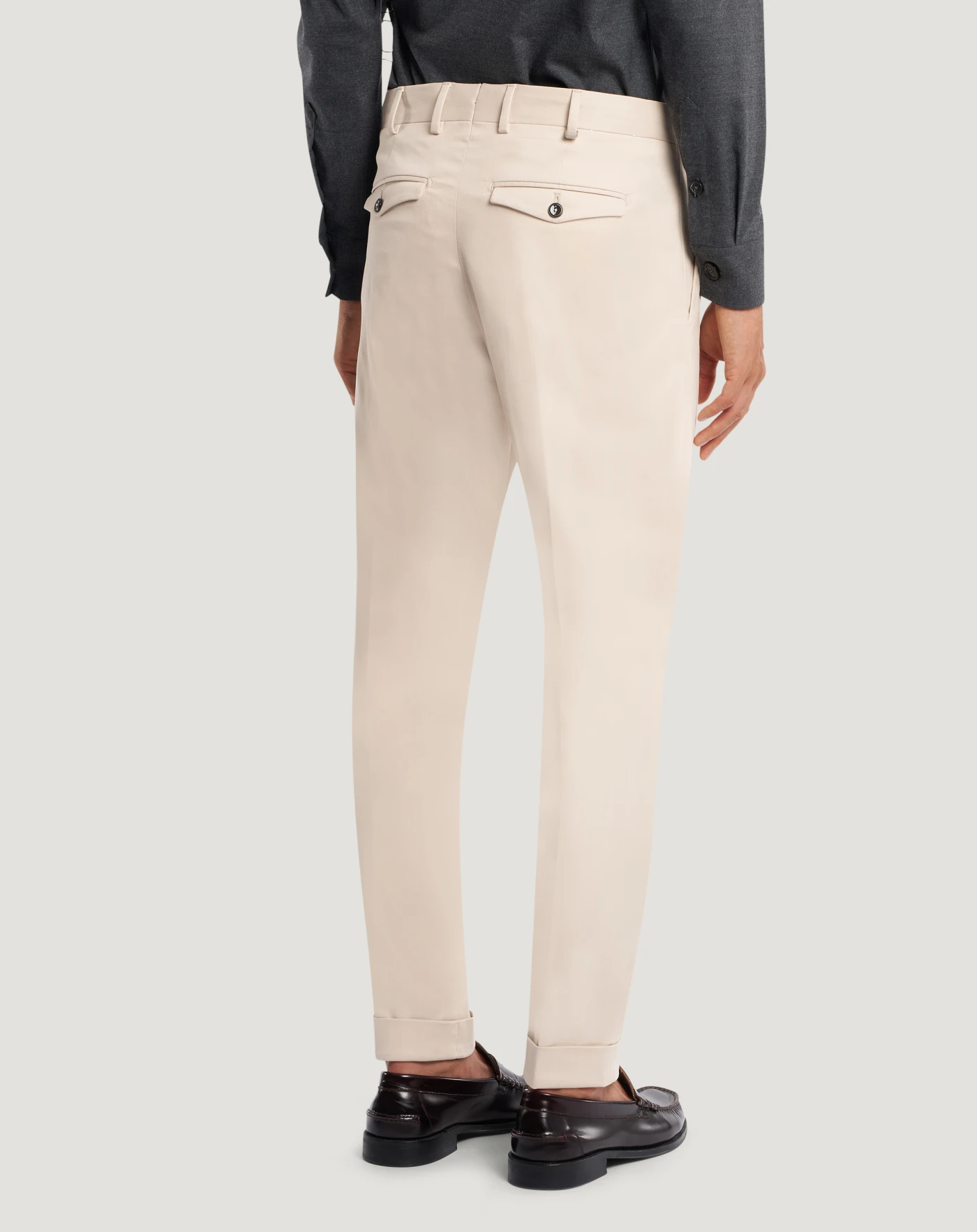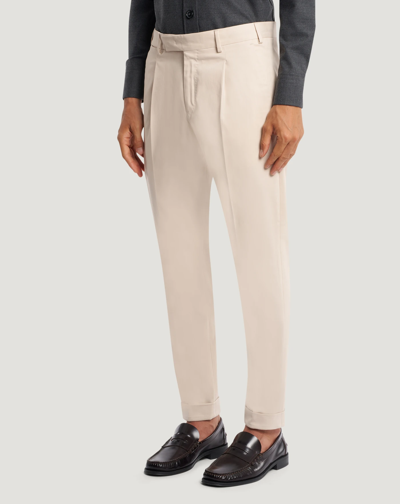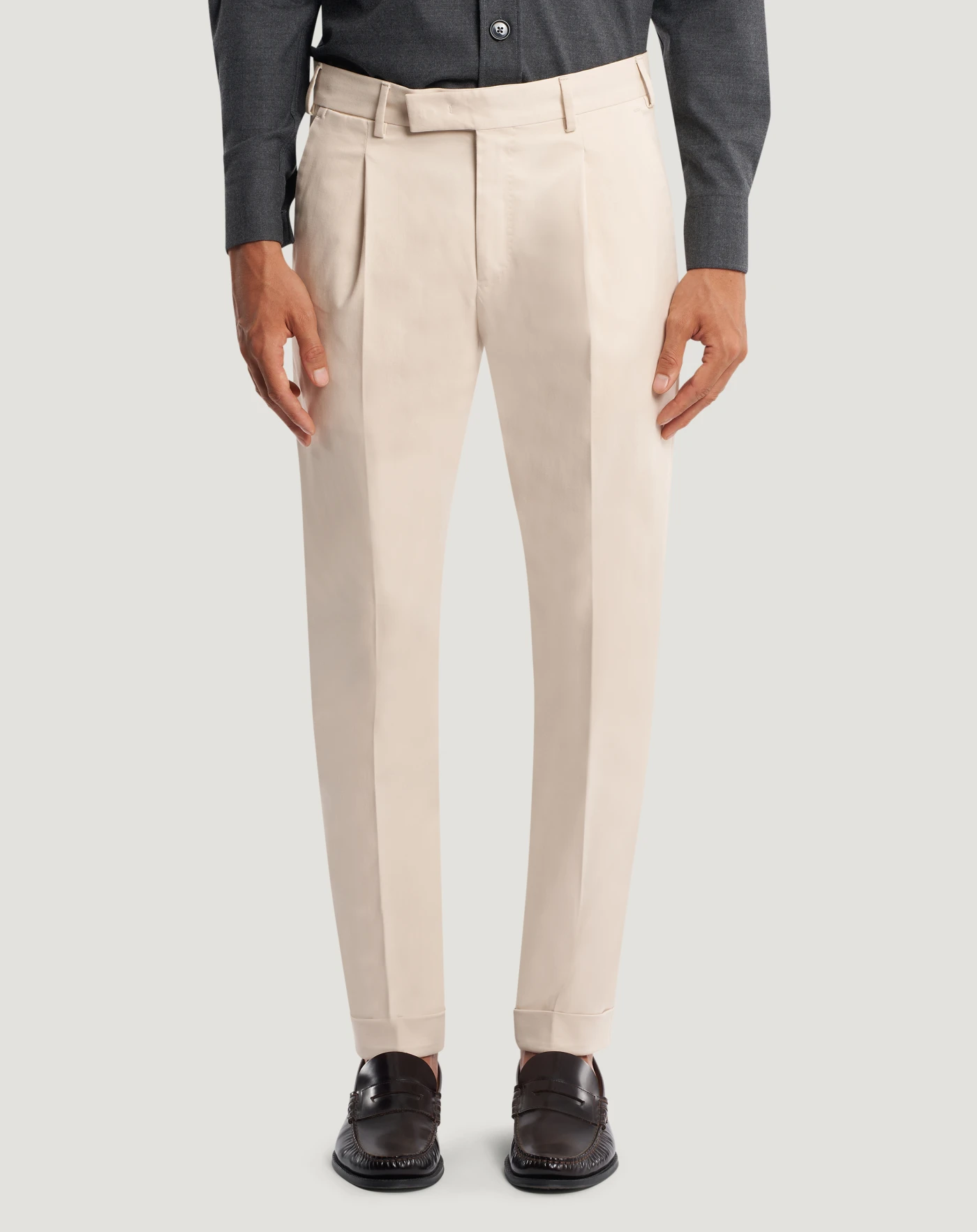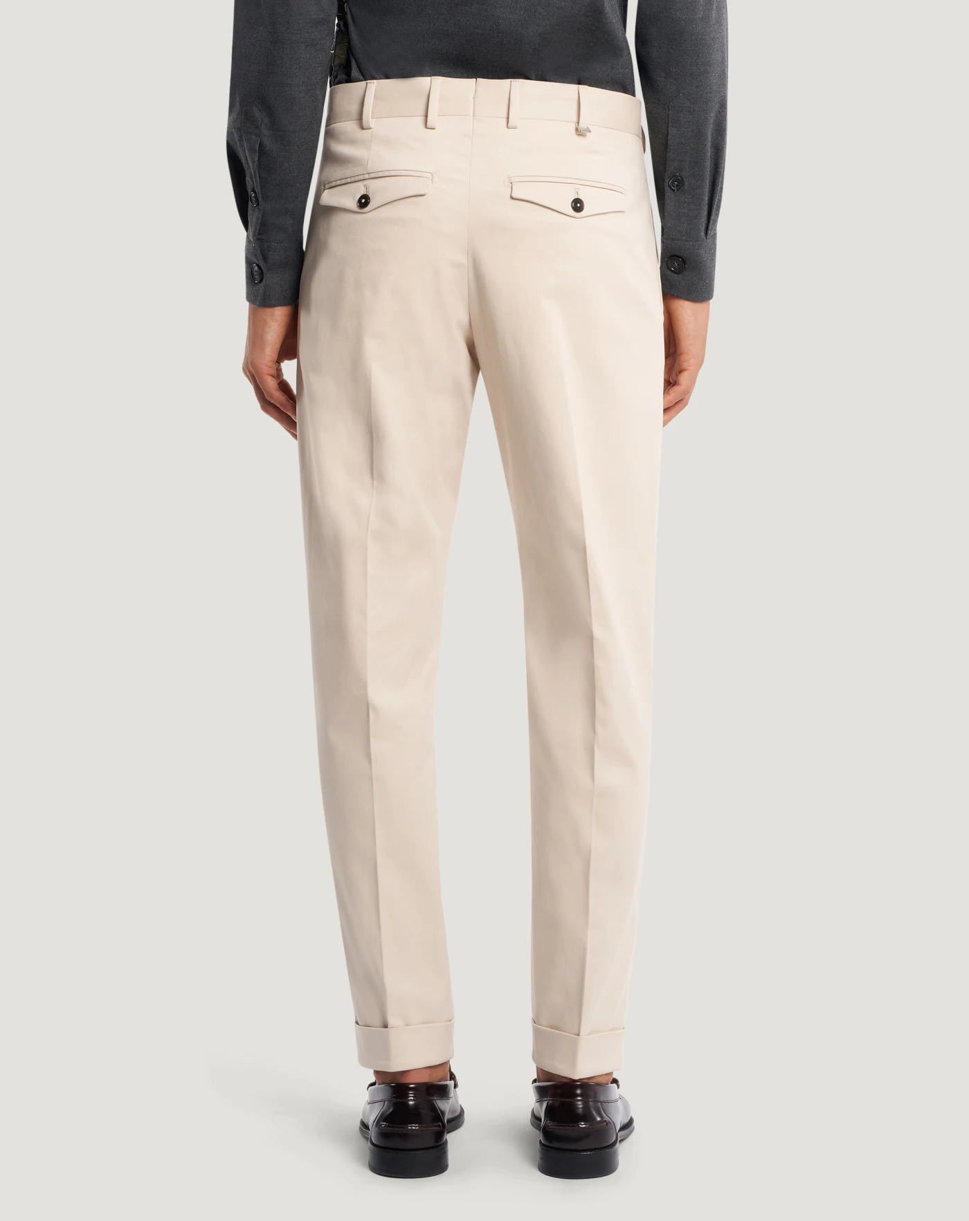 Trousers in stretch gabardine with a clean, minimal look featuring a tight diagonal weave. The elasticated component ensures comfort and freedom of movement, while the smooth, even surface adds a sophisticated and contemporary look.Featuring a relaxed tailored design, these ankle-length trousers with front pleat are perfect to add a casual touch to your looks.
