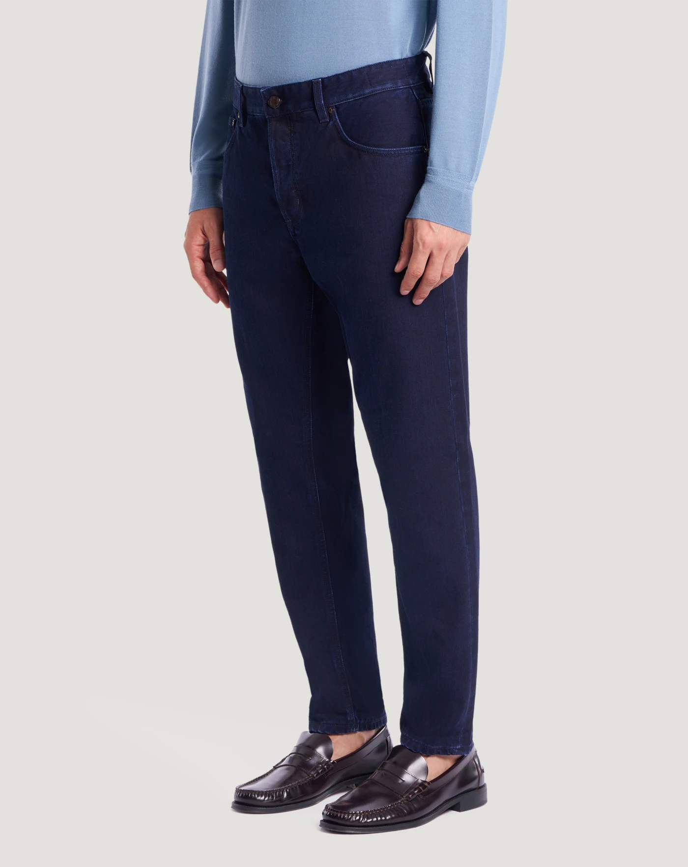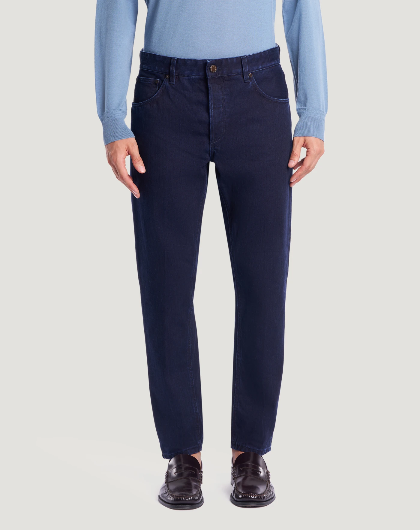 Jeans in pure cotton denim, a firm fabric with an even, dark blue wash.With a tapered fit, regular waist and turn-ups, they will give all your looks an edgy vibe.