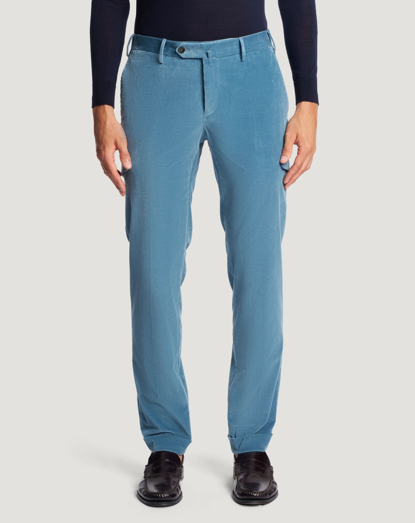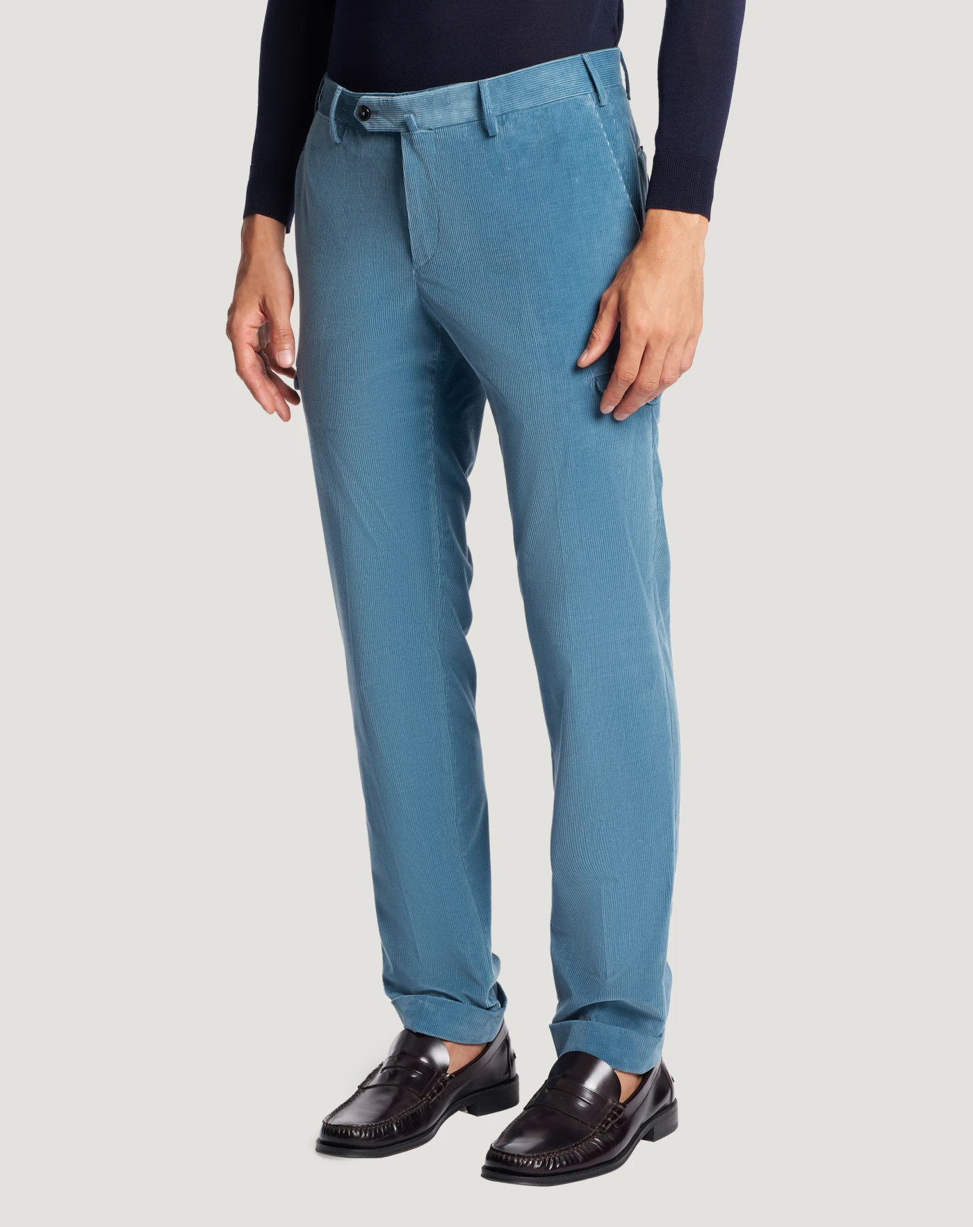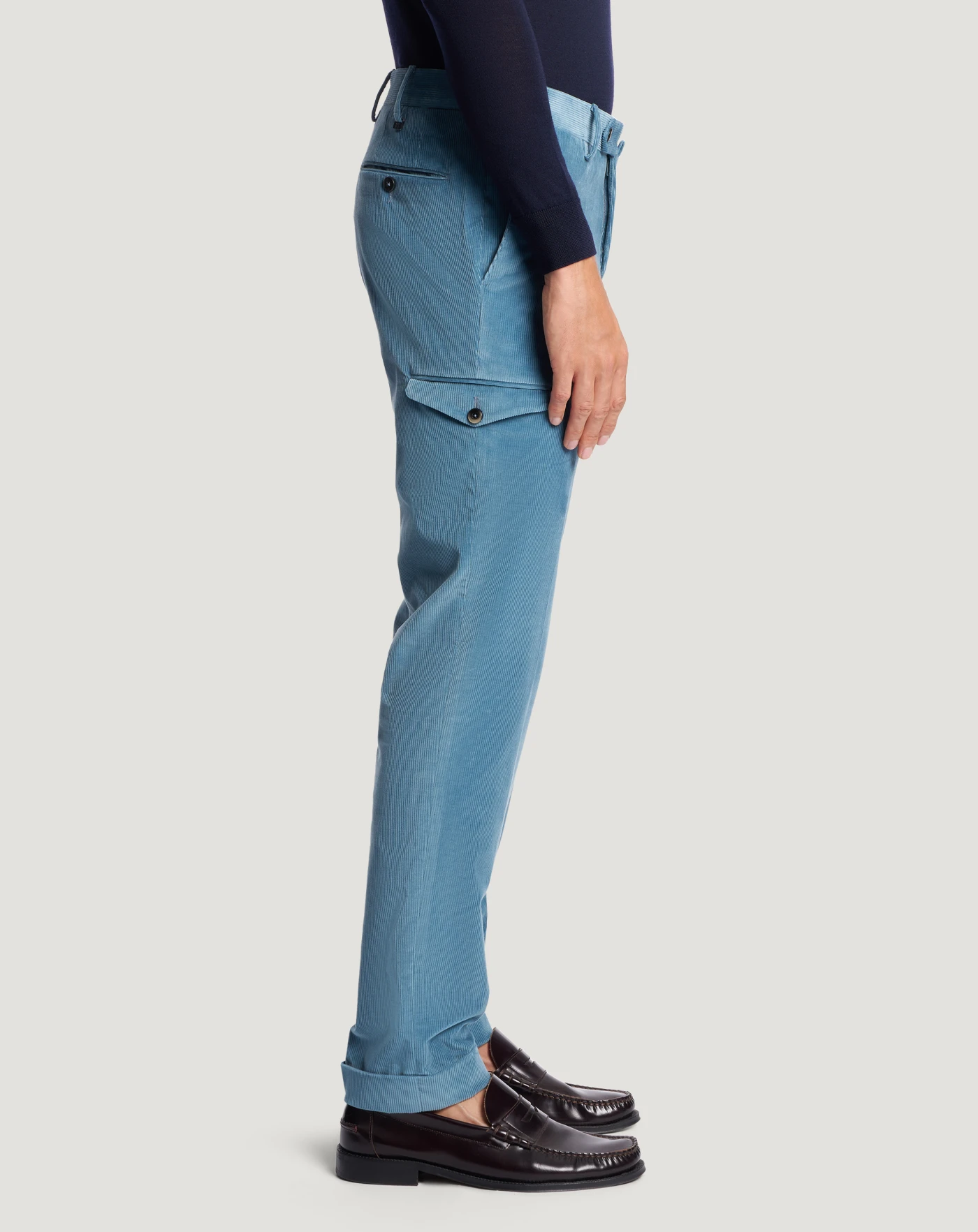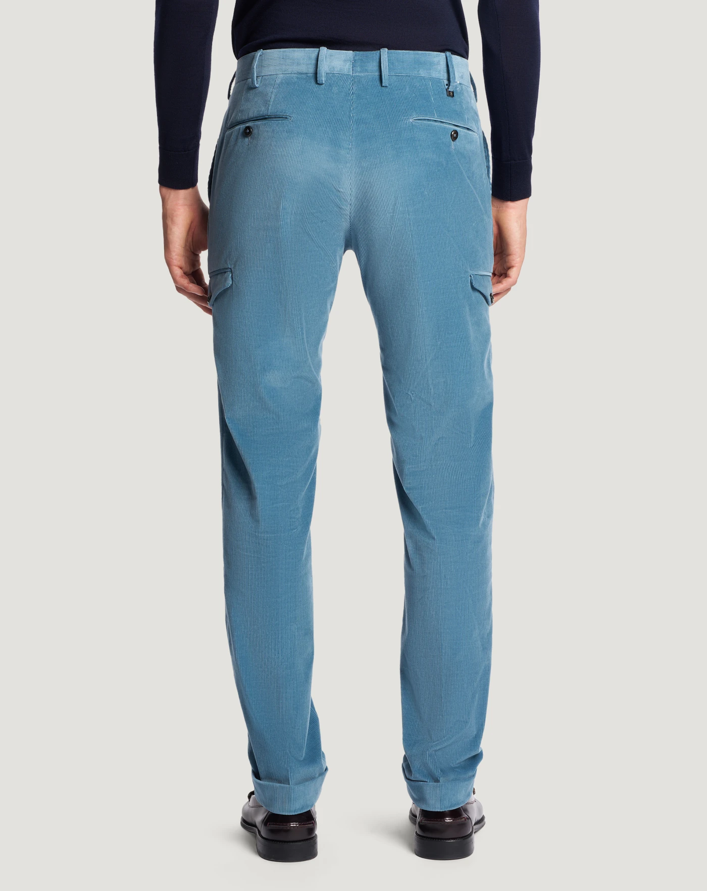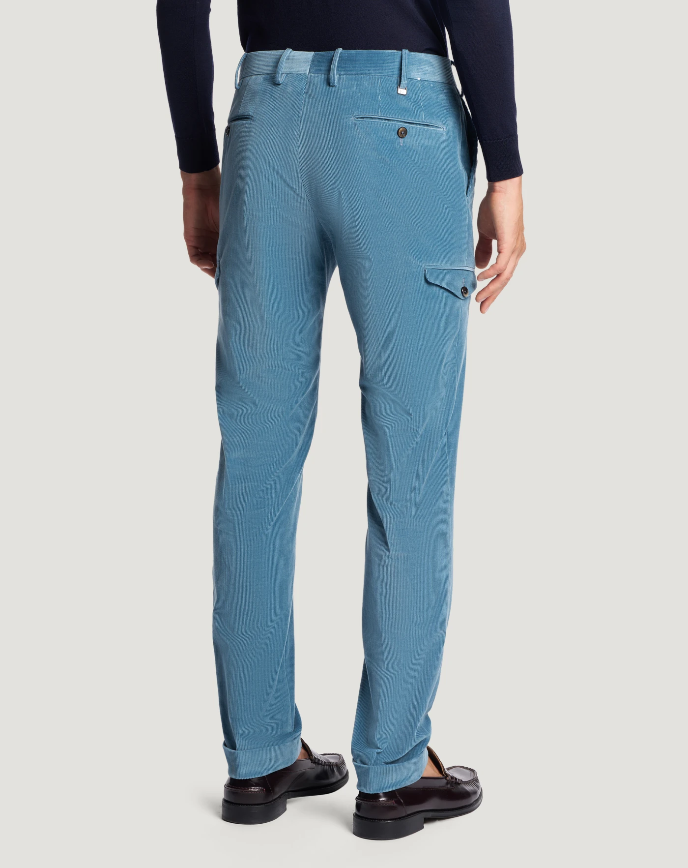 Trousers in stretch cotton-blend fine-rib velvet with a super-soft texture and bright colour.The garment is delivered unstitched, so that it can be finished to suit your length and style through simple tailoring.The design combines refined tailoring and utility details that instantly enhance your look.
