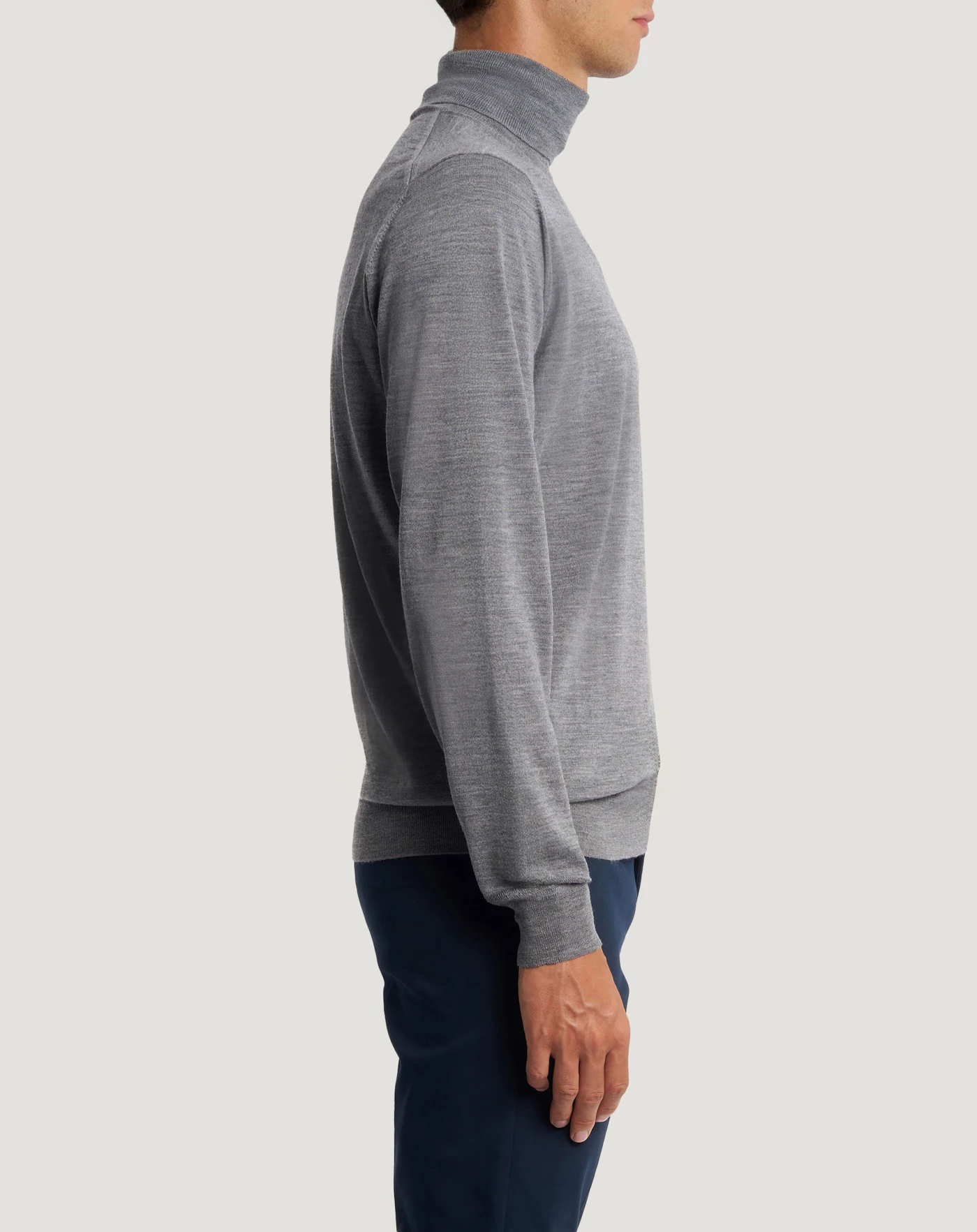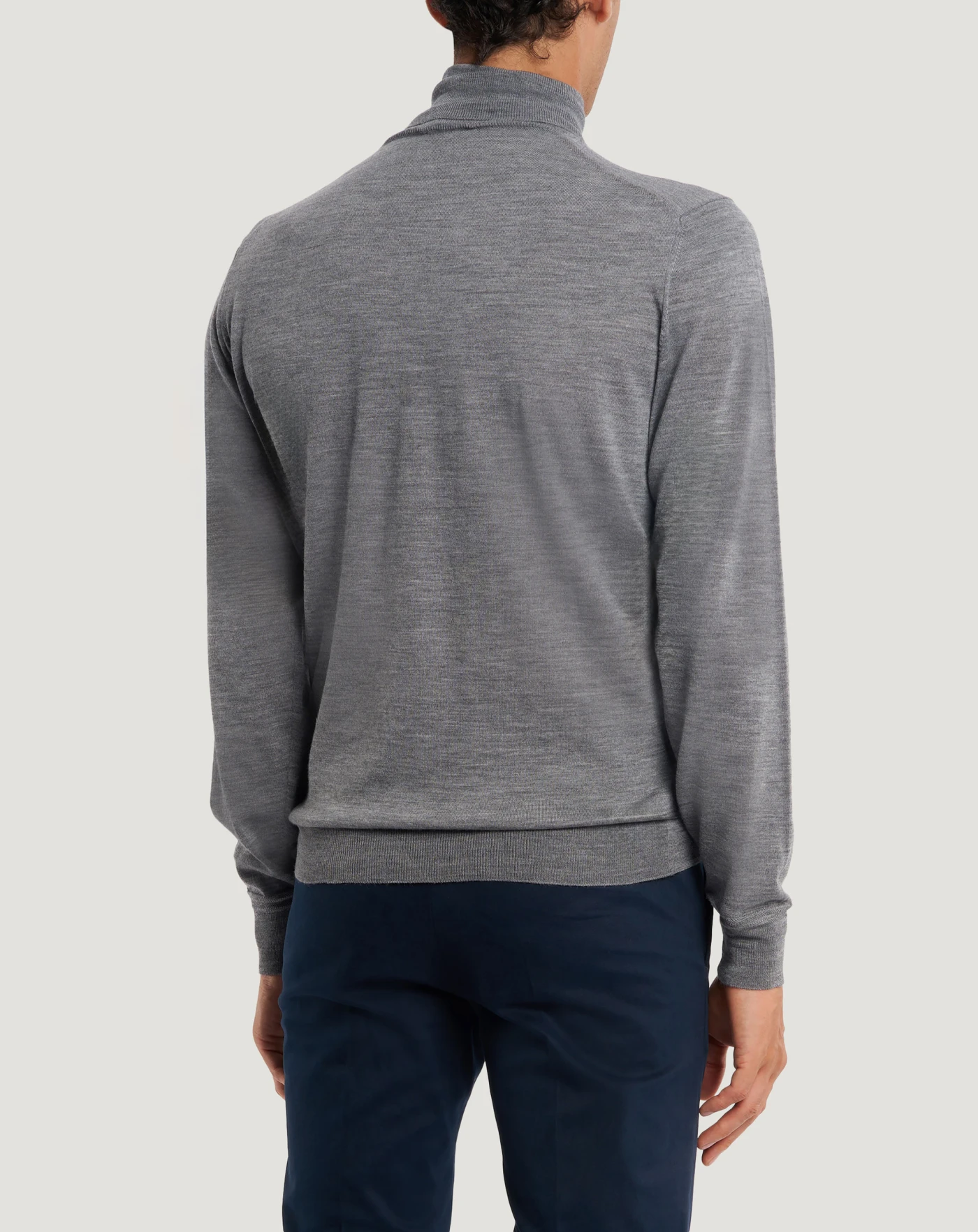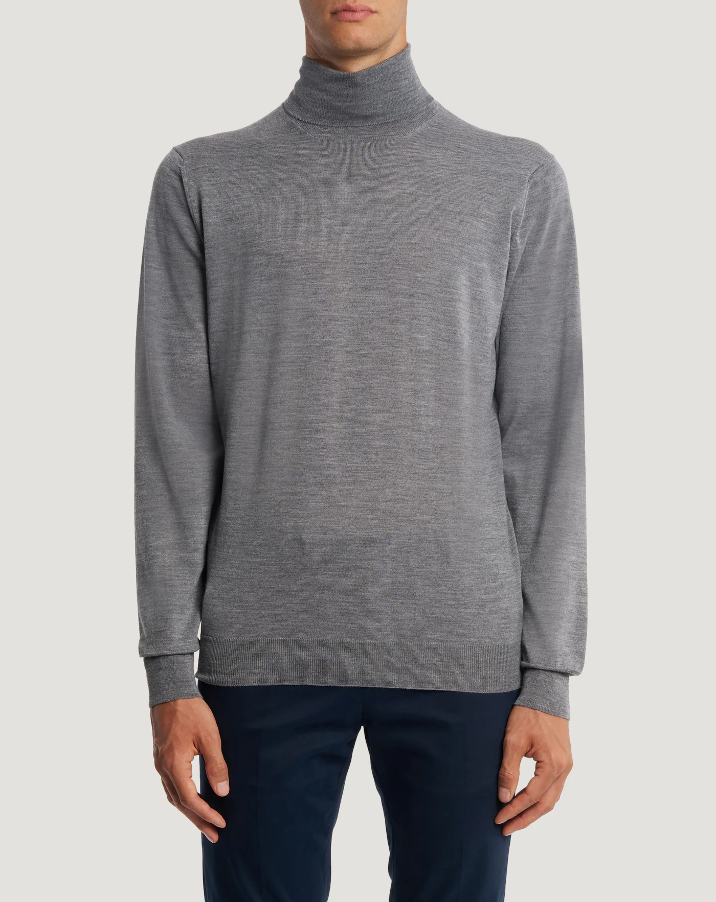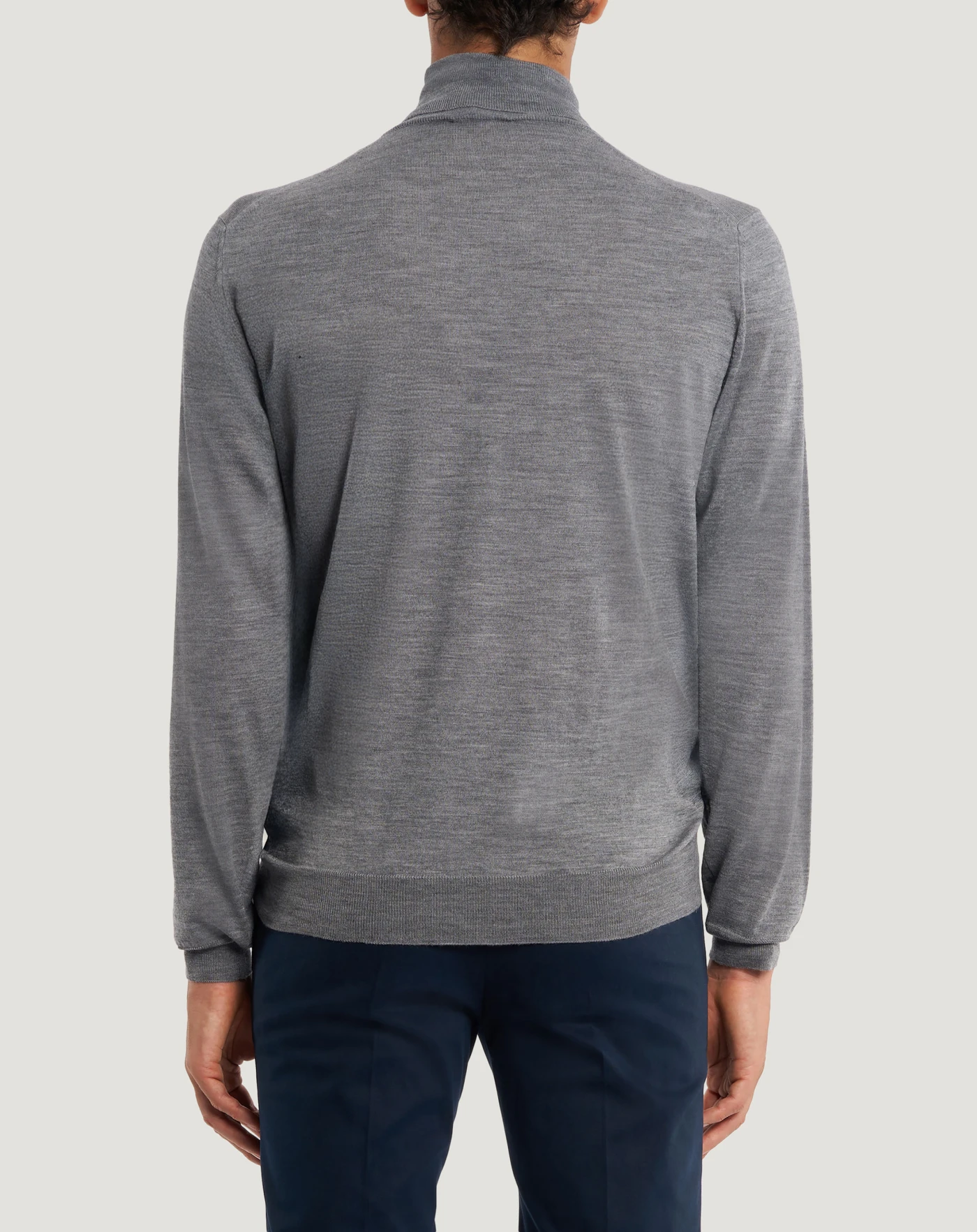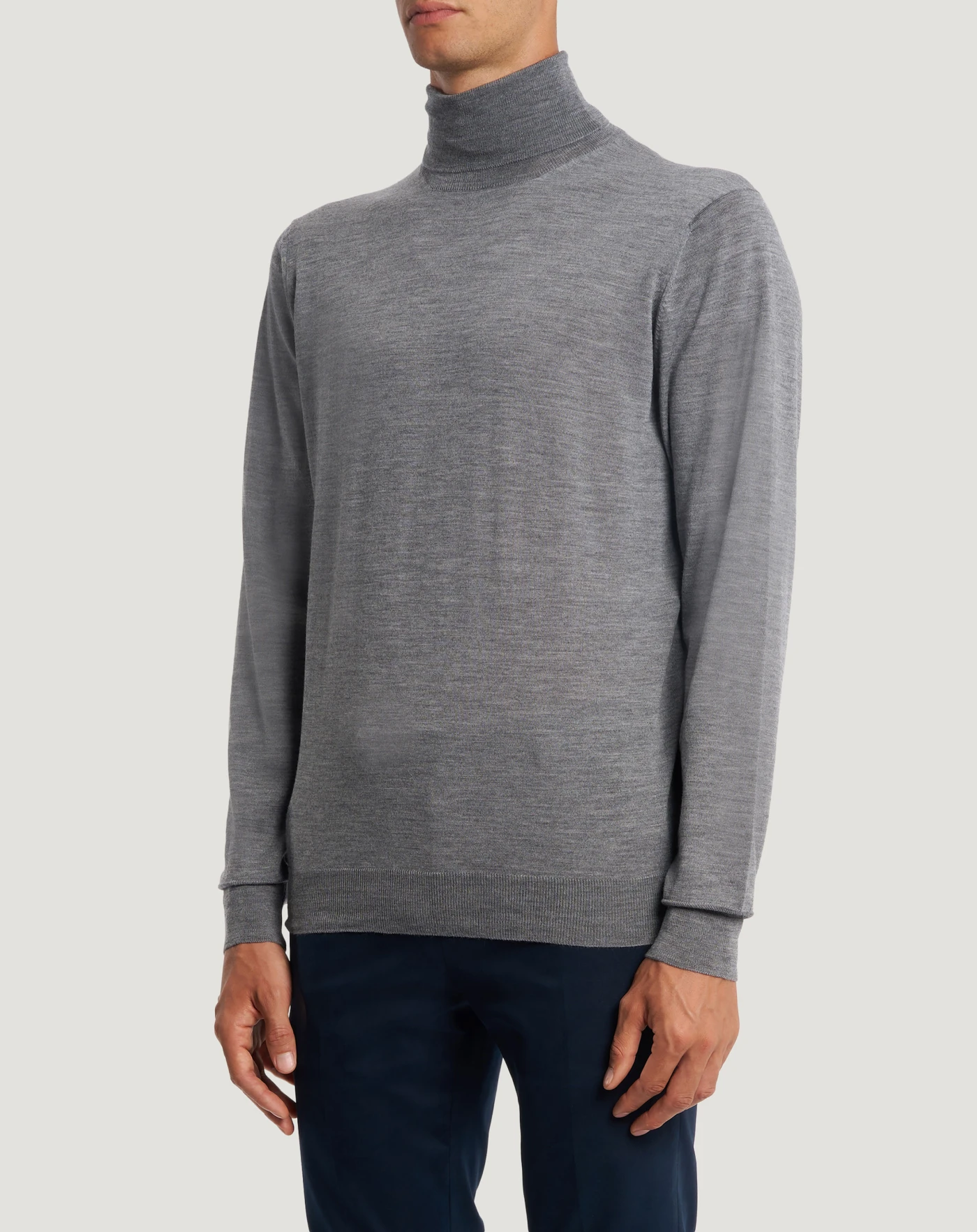 Stocking-stitch jumper in pure cotton fineness 16, which makes the garment lightweight and very comfortable.With a high neck and slim fit, the jumper features an essential and versatile design that completes formal and casual looks and is also perfect under a jacket. Choose the dark grey variant to add elegance to your style.
