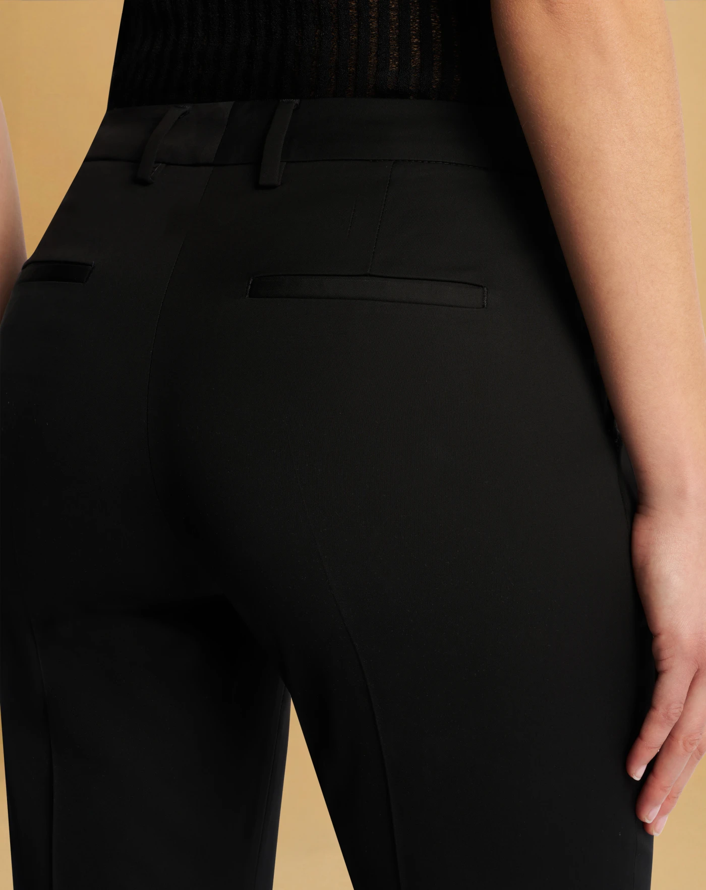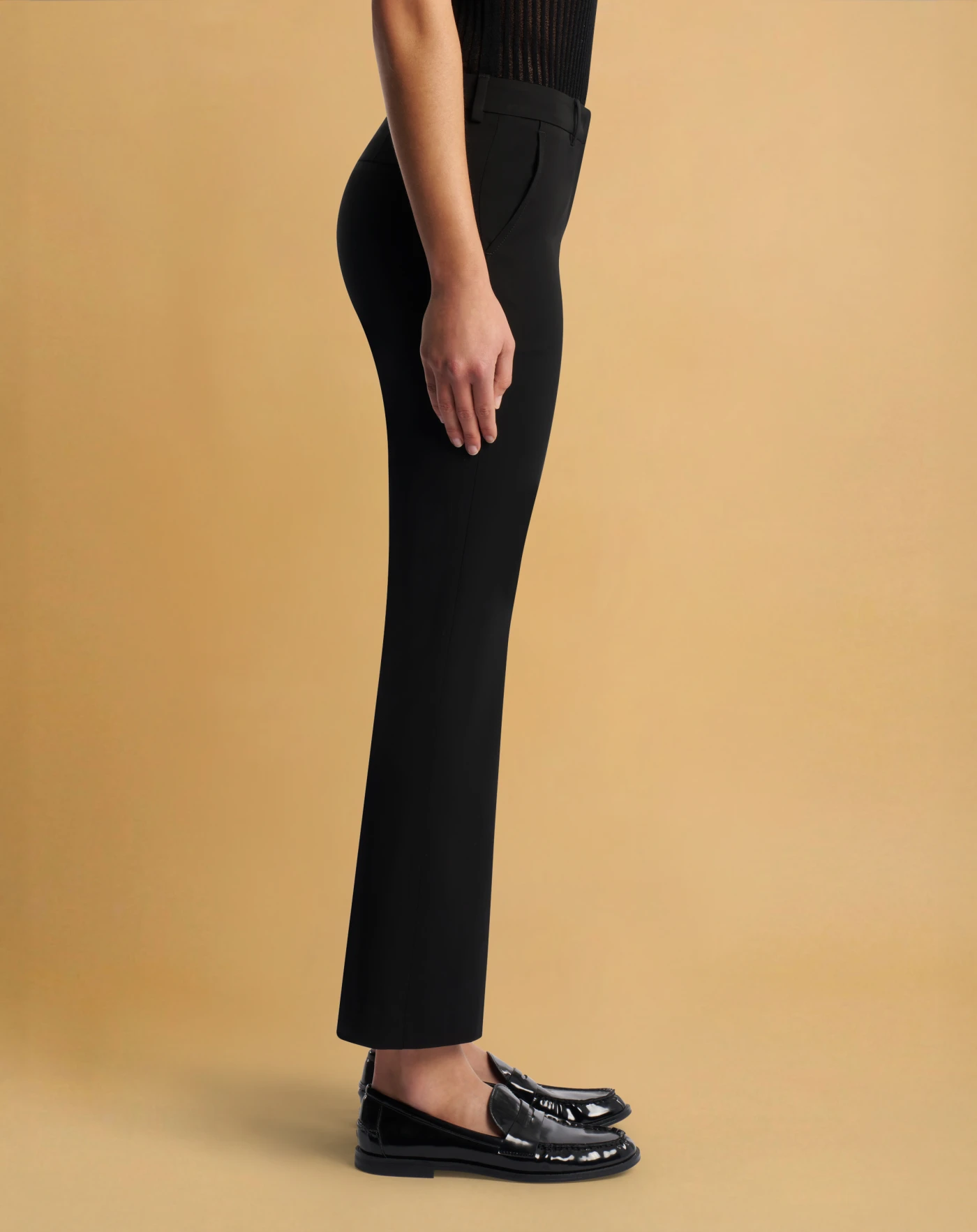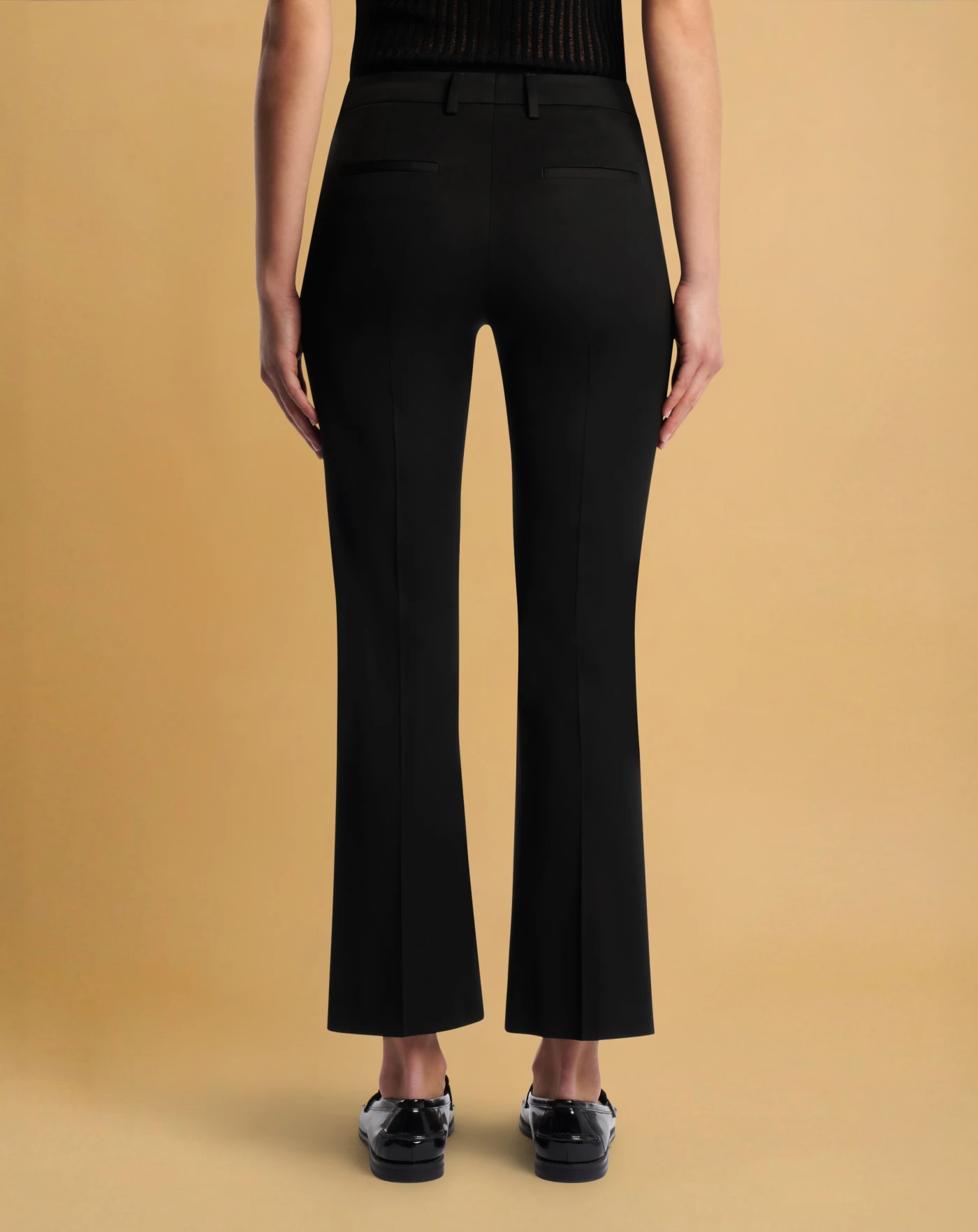 Trousers in stretch viscose satin, a soft, bright fabric designed to provide everyday comfort thanks to its elasticity. With a cropped flared fit and pressed crease, they are the perfect match for formal looks with relaxed elegance.