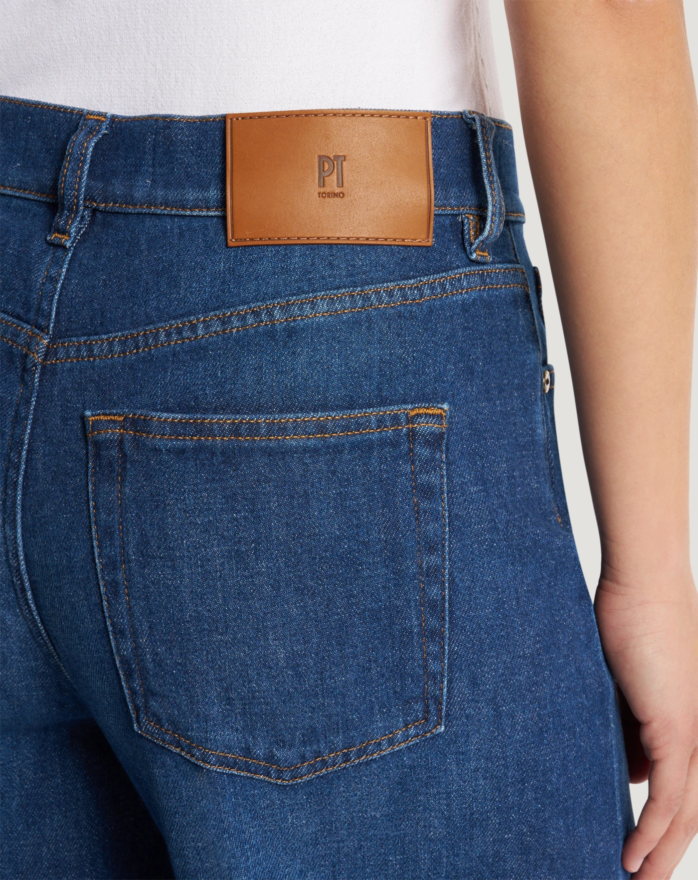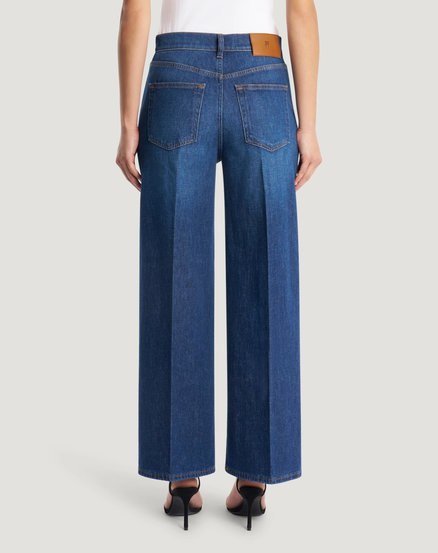Jeans in responsible cotton denim, a medium weight stretch fabric (11.5 oz) with elasticity that offers comfort without sacrificing the typical structure of denim. With a wide fit and pressed crease, this ankle-length model is the go-anywhere item in your casual wardrobe.