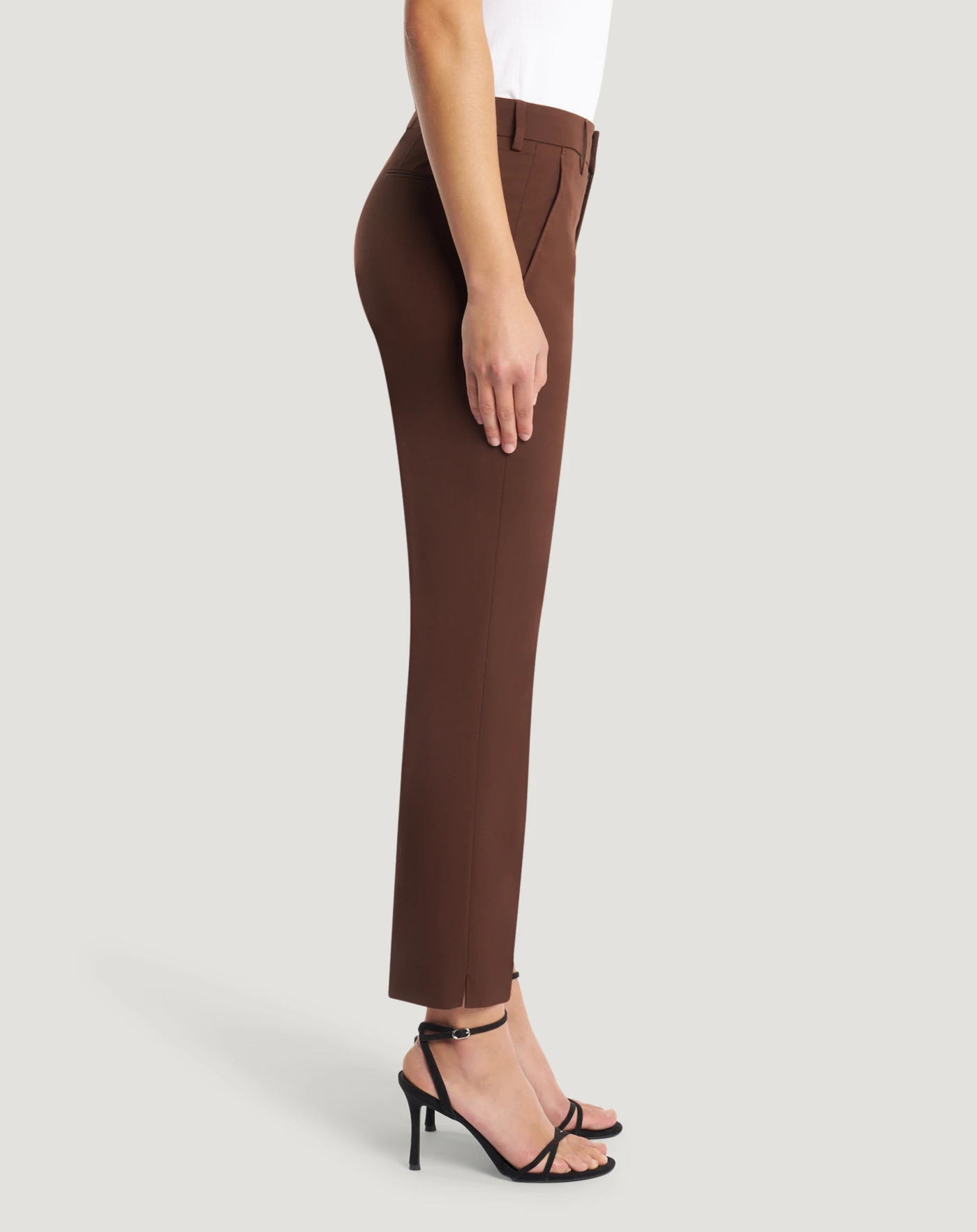 Trousers in stretch cotton gabardine, an elegant yet durable fabric that is perfect for versatile looks with a clean, contemporary style. Slim fit with slits at the hem, this essential model in brown will add edginess to your style.