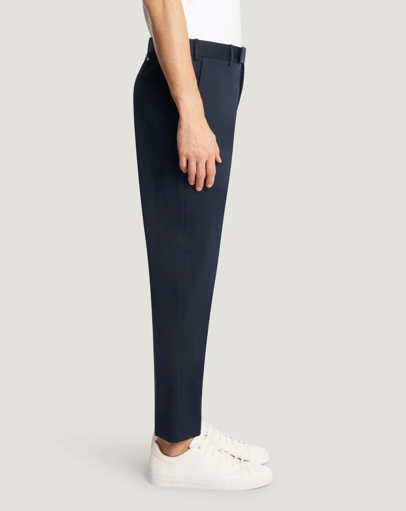 Trousers in stretch twill, a fabric with a fine and regular diagonal weave and a clean, elegant look.With a smooth front and slightly carrot fit, these ankle-length trousers have an essential and tailored design that is perfect for every day. Choose blue for elegant and versatile looks.