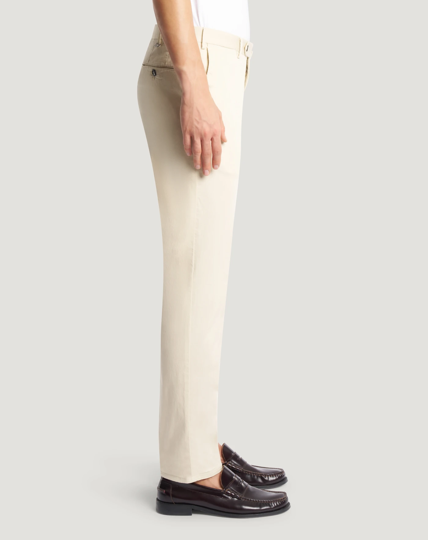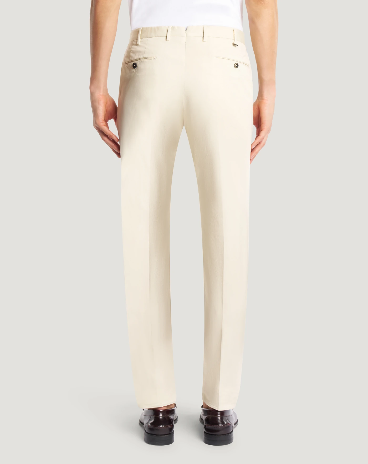 Trousers in stretch cotton gabardine, a soft, durable and easy-to-pair everyday fabric. The garment is delivered unstitched, so that it can be finished to suit your length and style through simple tailoring. The butter white variant will add a contemporary touch to your style.