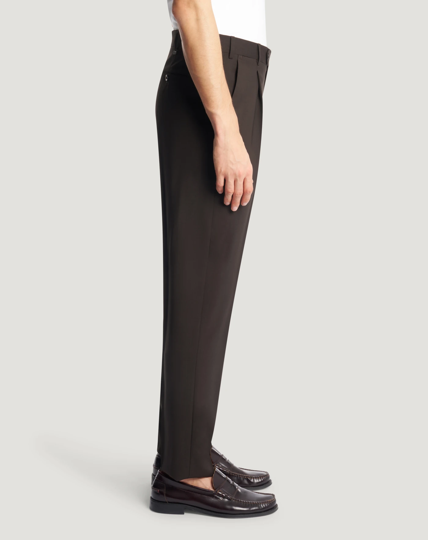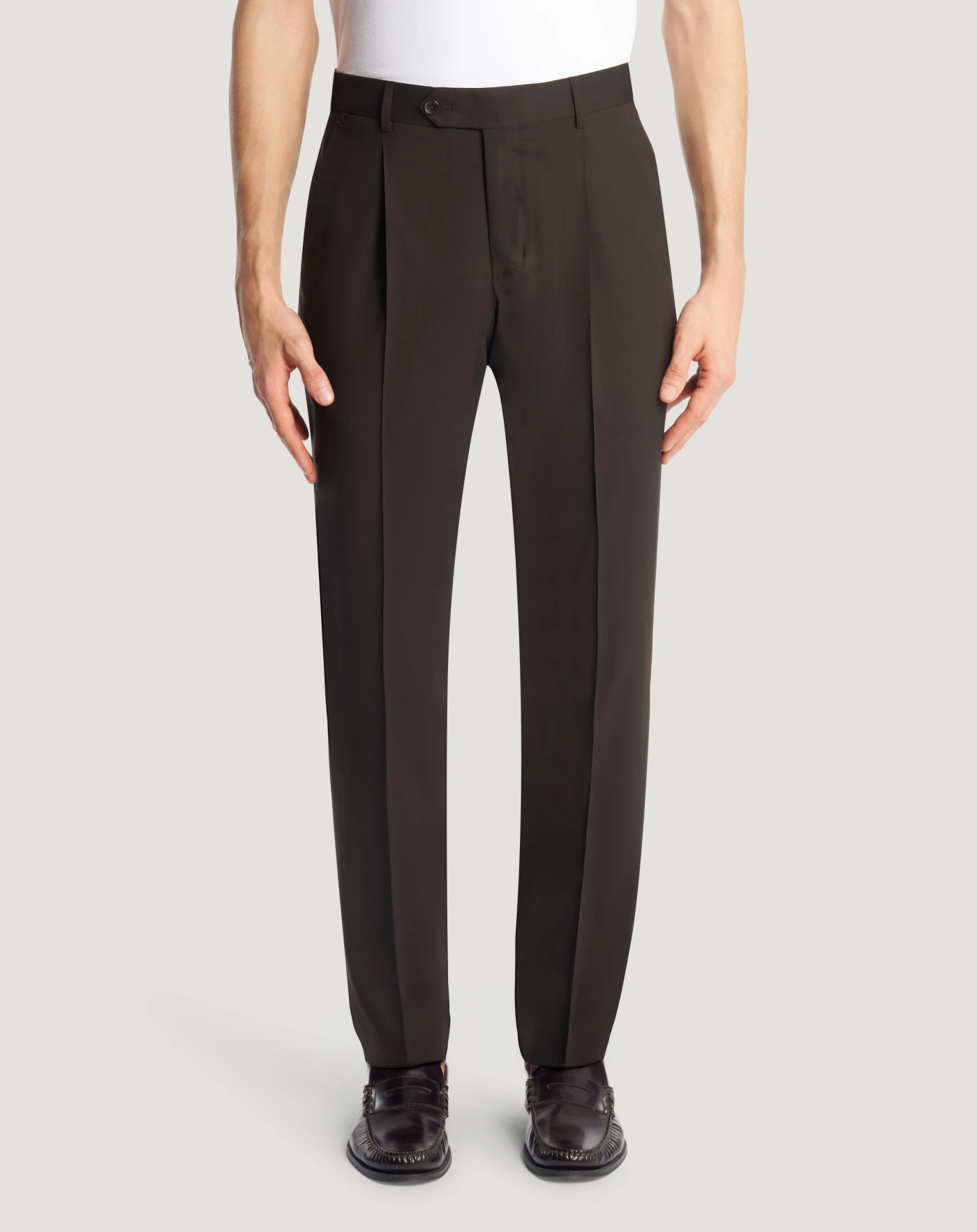 Trousers in superlight fine wool featuring a refined finish and natural comfort that makes them elegant and created for the warm season.The garment is delivered unstitched, so that it can be finished to suit your length and style through simple tailoring.With a pleat at the front and comfortable fit, choose brown to complete your casual looks.