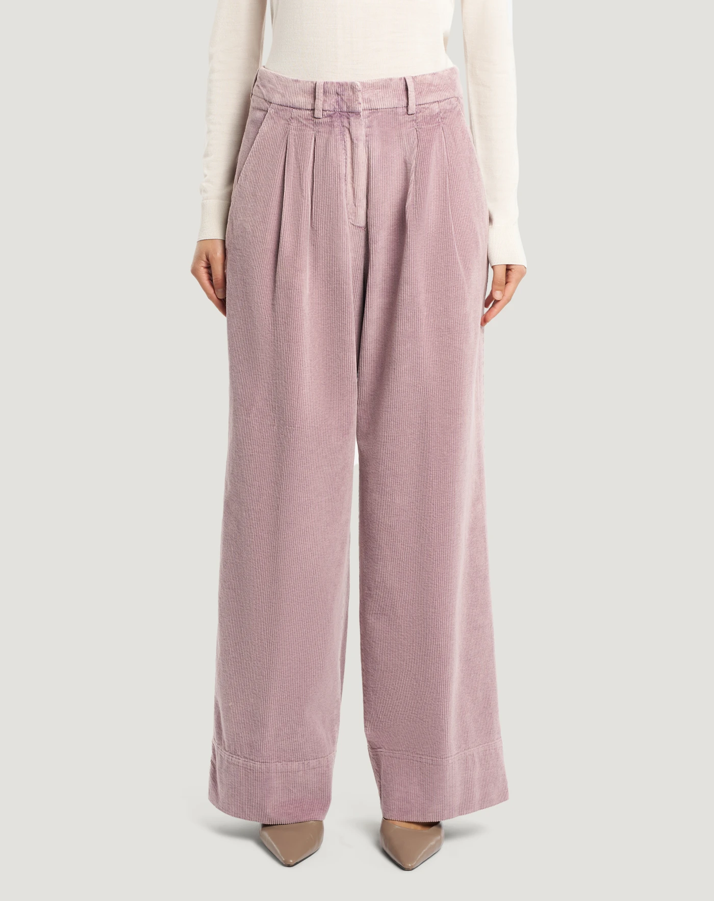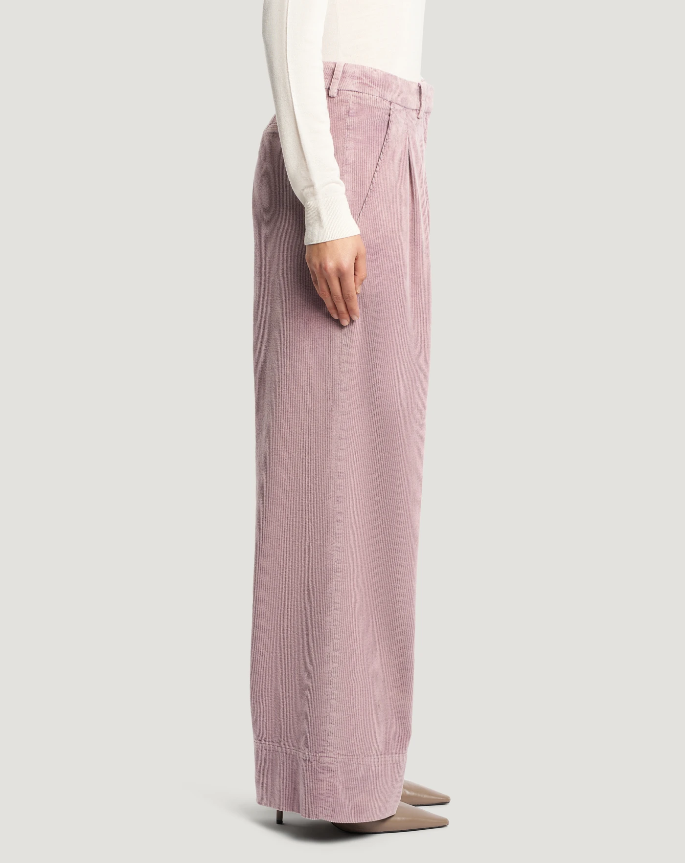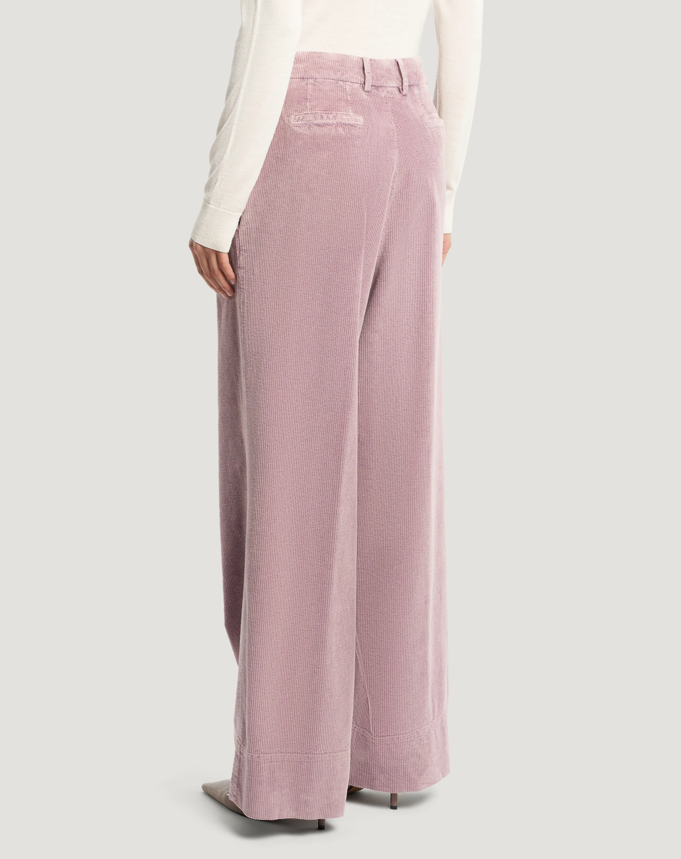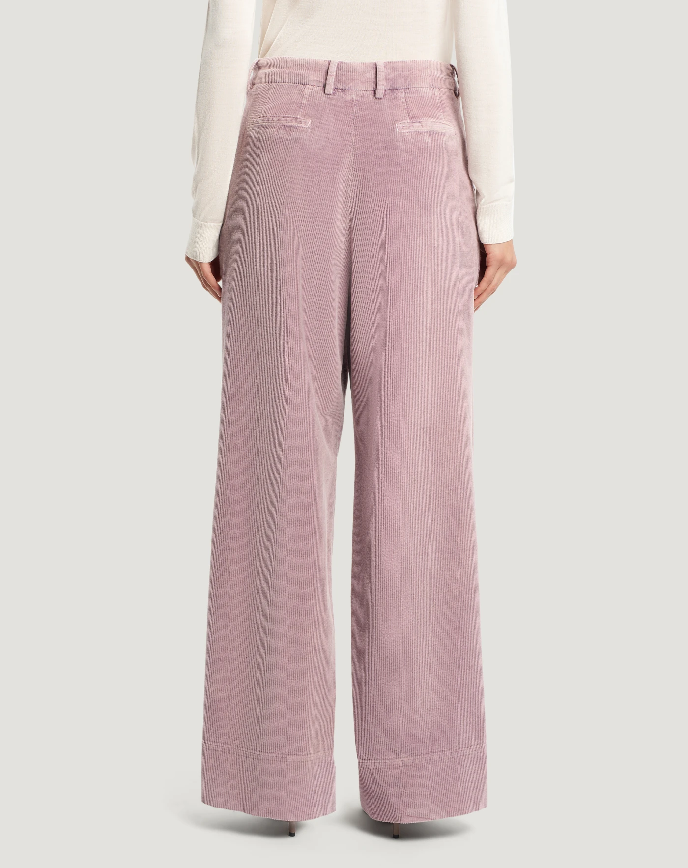 Hose aus geripptem Stretch-Samt, einem weichen Stoff mit verwaschenem Look, der Ihrem Stil Charakter verleiht.Das Modell mit weiter Passform und Bügelfalten vorne sorgt für Bewegung und verleiht Ihren Alltagslooks eine individuelle Note.