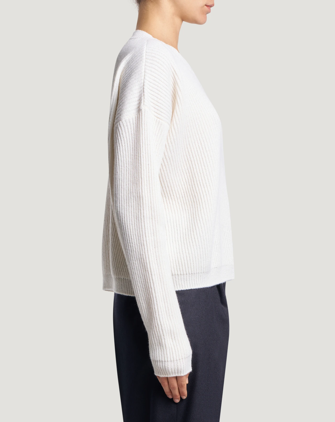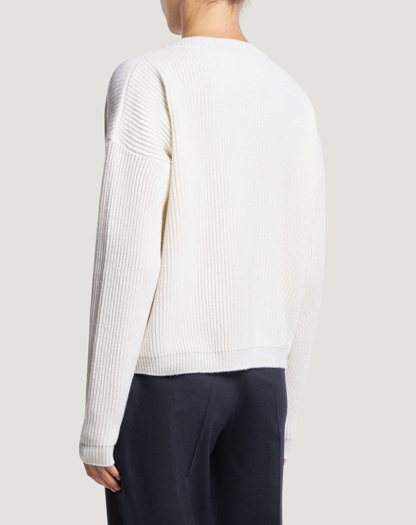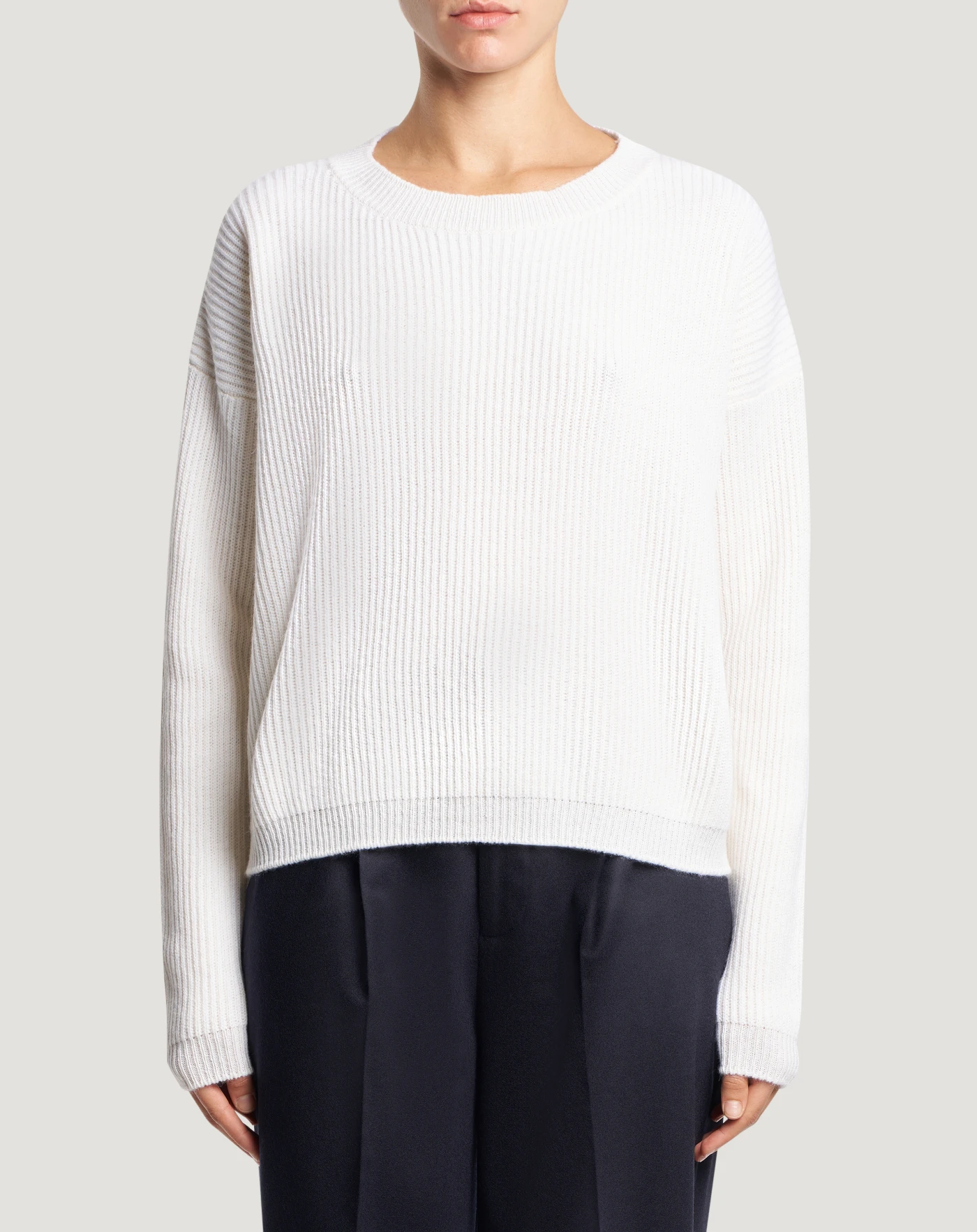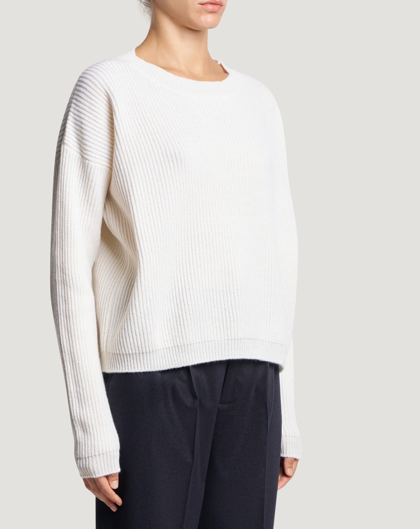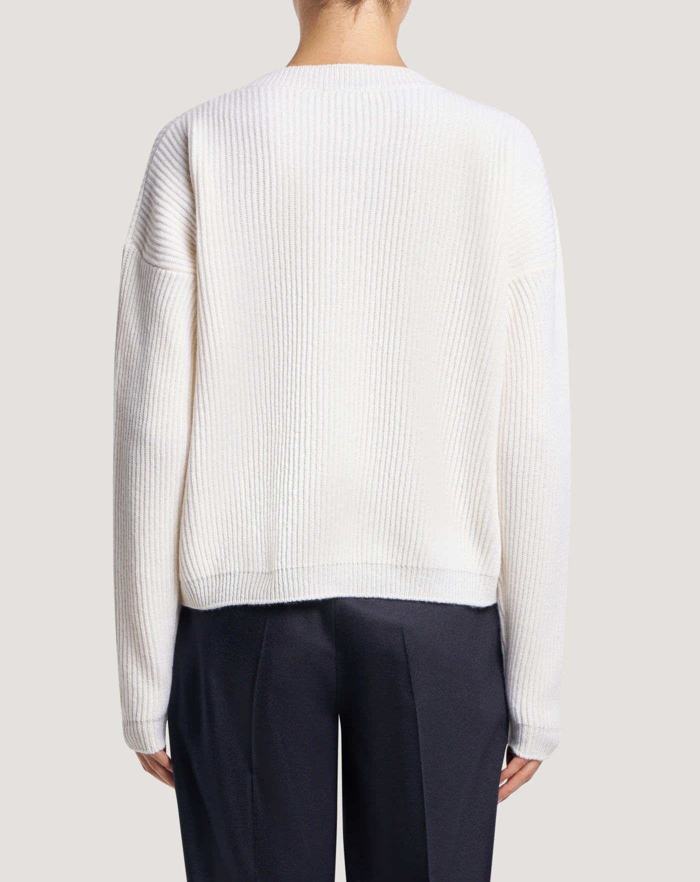 Pullover aus Woll- und Kaschmirtrikot, ein weiches und hochwertiges Gewebe mit Patentmuster.Dieses vielseitige Modell im Boxy-Schnitt verfügt über einen Rundhalsausschnitt und überschnittene Schultern und passt zu jeder Gelegenheit. Die Variante in Weiß bringt Ihre Looks zum Strahlen.
