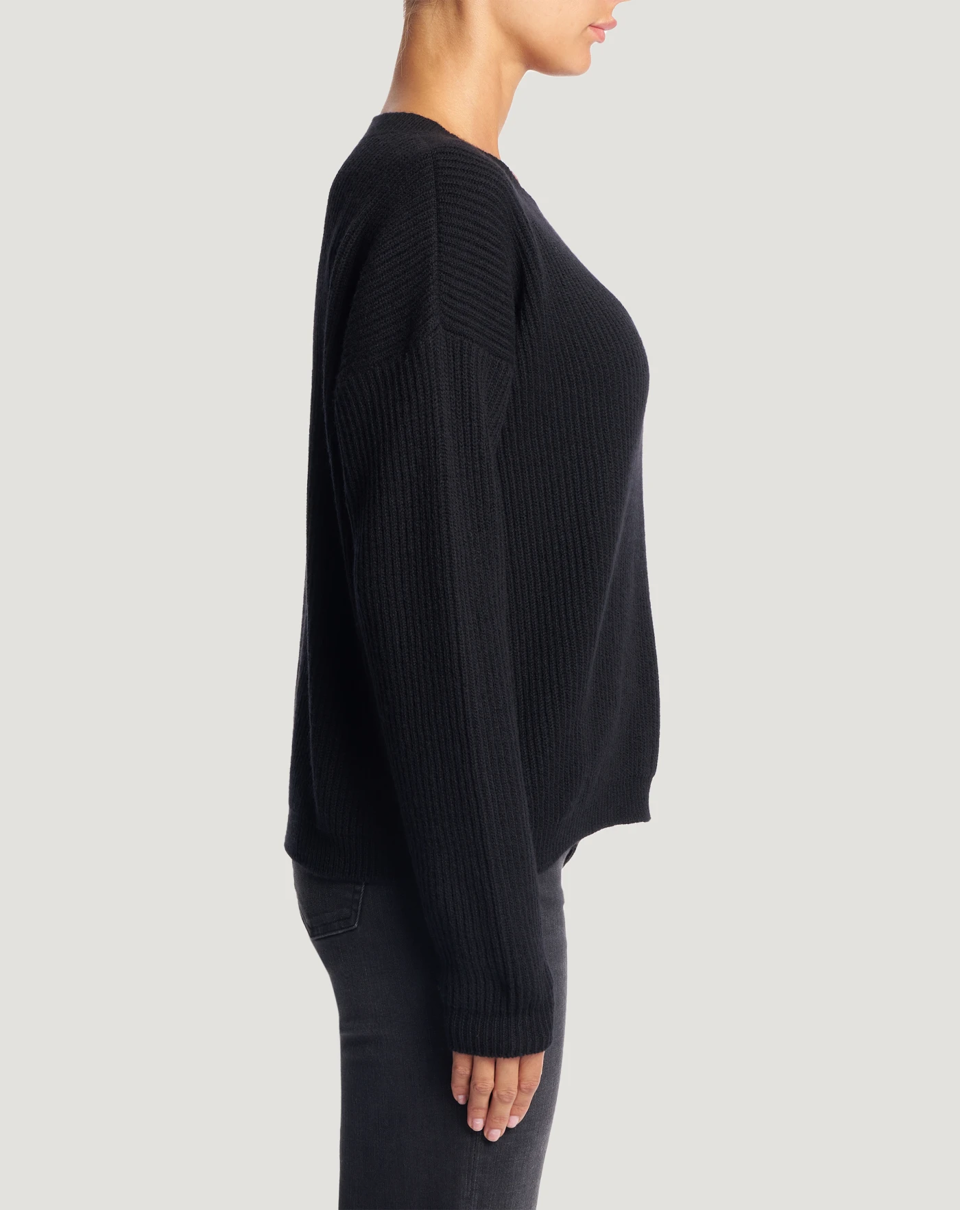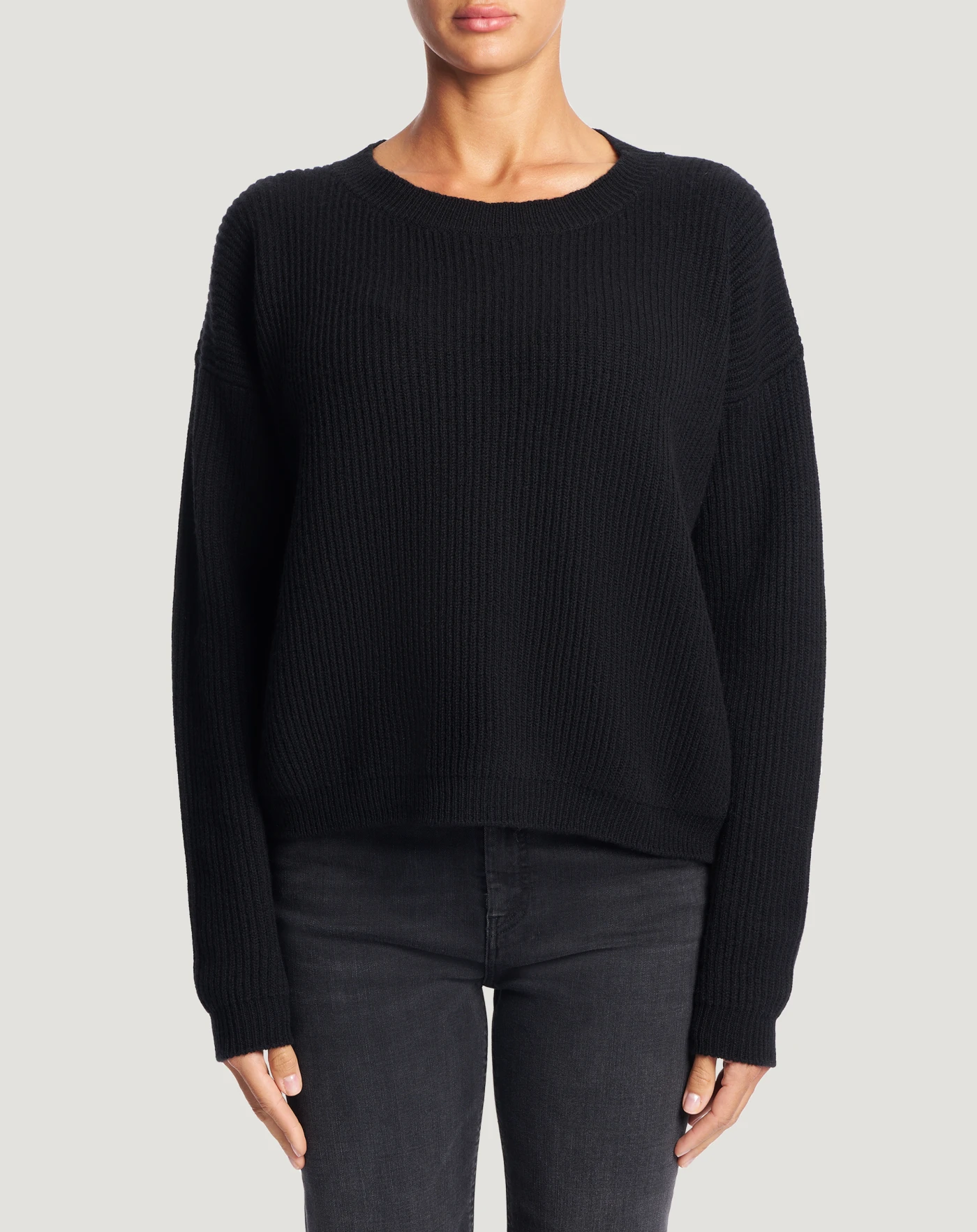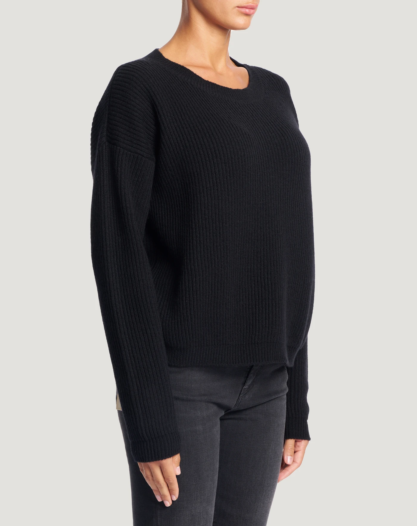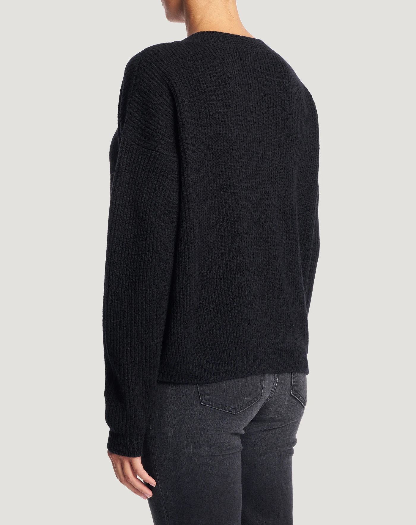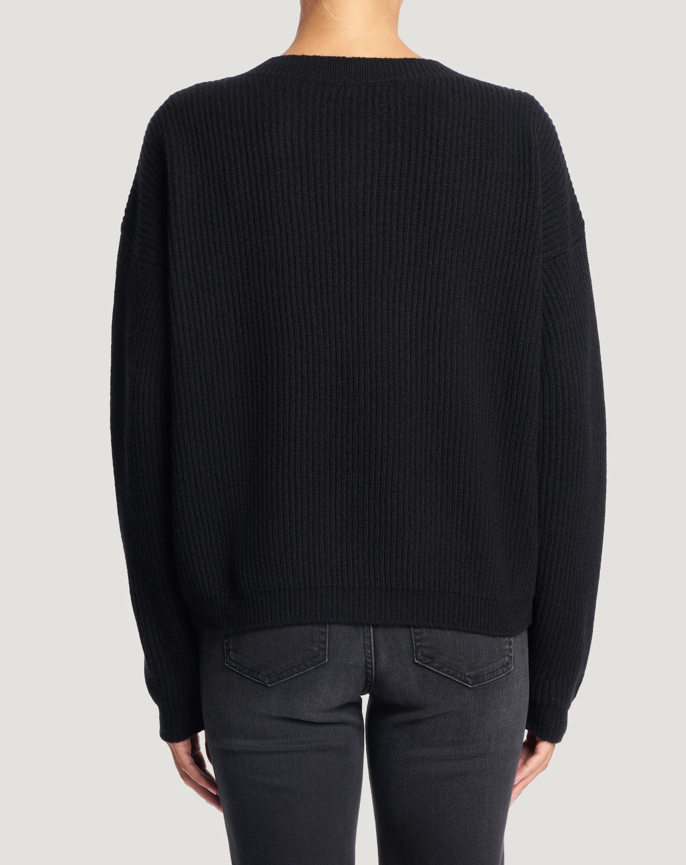 Pullover aus Woll- und Kaschmirtrikot, ein weiches und hochwertiges Gewebe mit Patentmuster.Dieses vielseitige Modell im Boxy-Schnitt verfügt über einen Rundhalsausschnitt und überschnittene Schultern und passt zu jeder Gelegenheit. Die Variante in Schwarz verleiht Ihren Alltagslooks eine besondere Intensität.