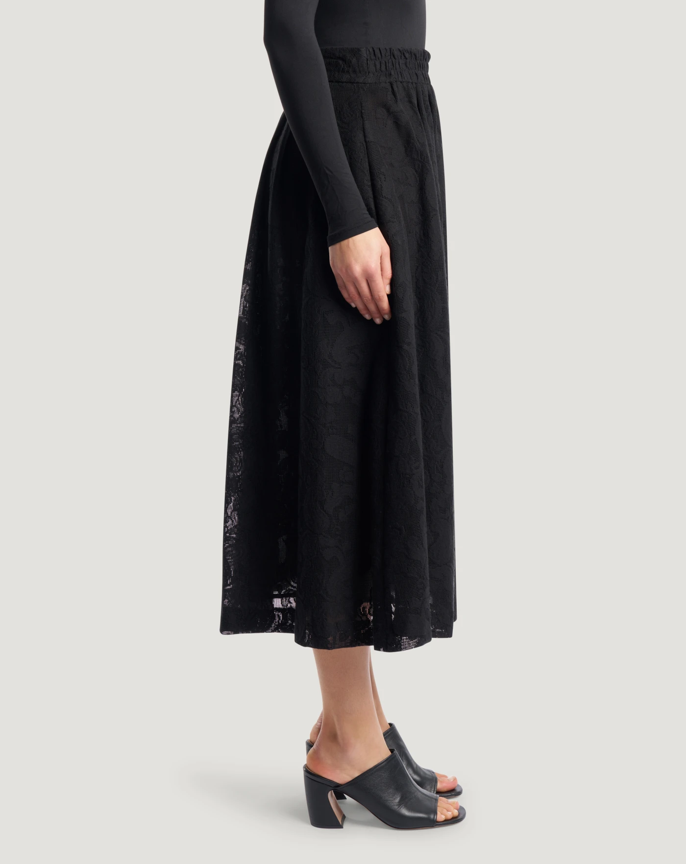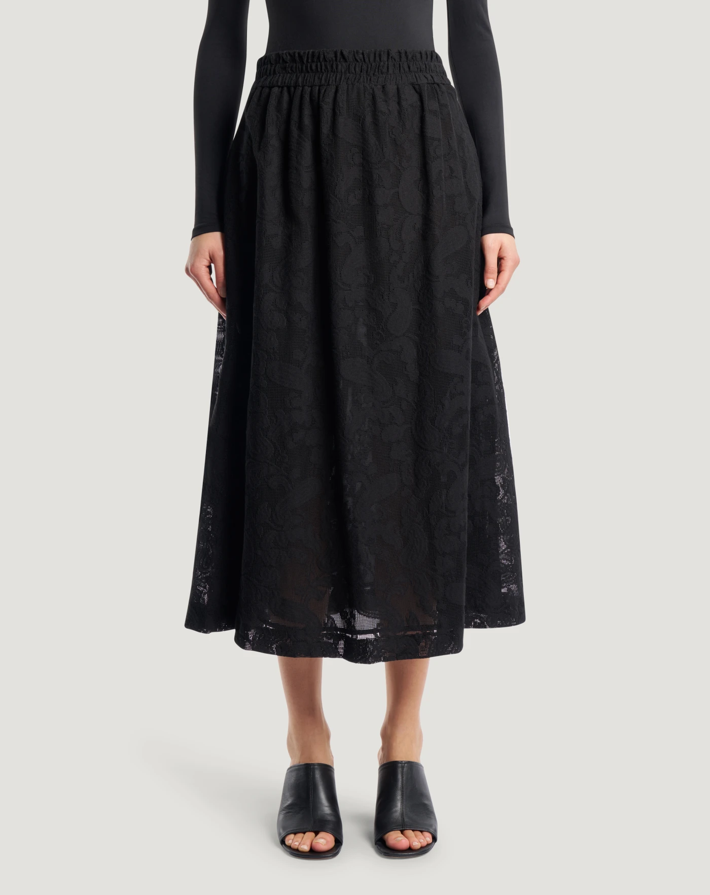 Rock aus Baumwollspitze mit dekorativem Muster und weichen Linien. Er eignet sich perfekt, um Ihrem Look eine romantische Note zu verleihen.