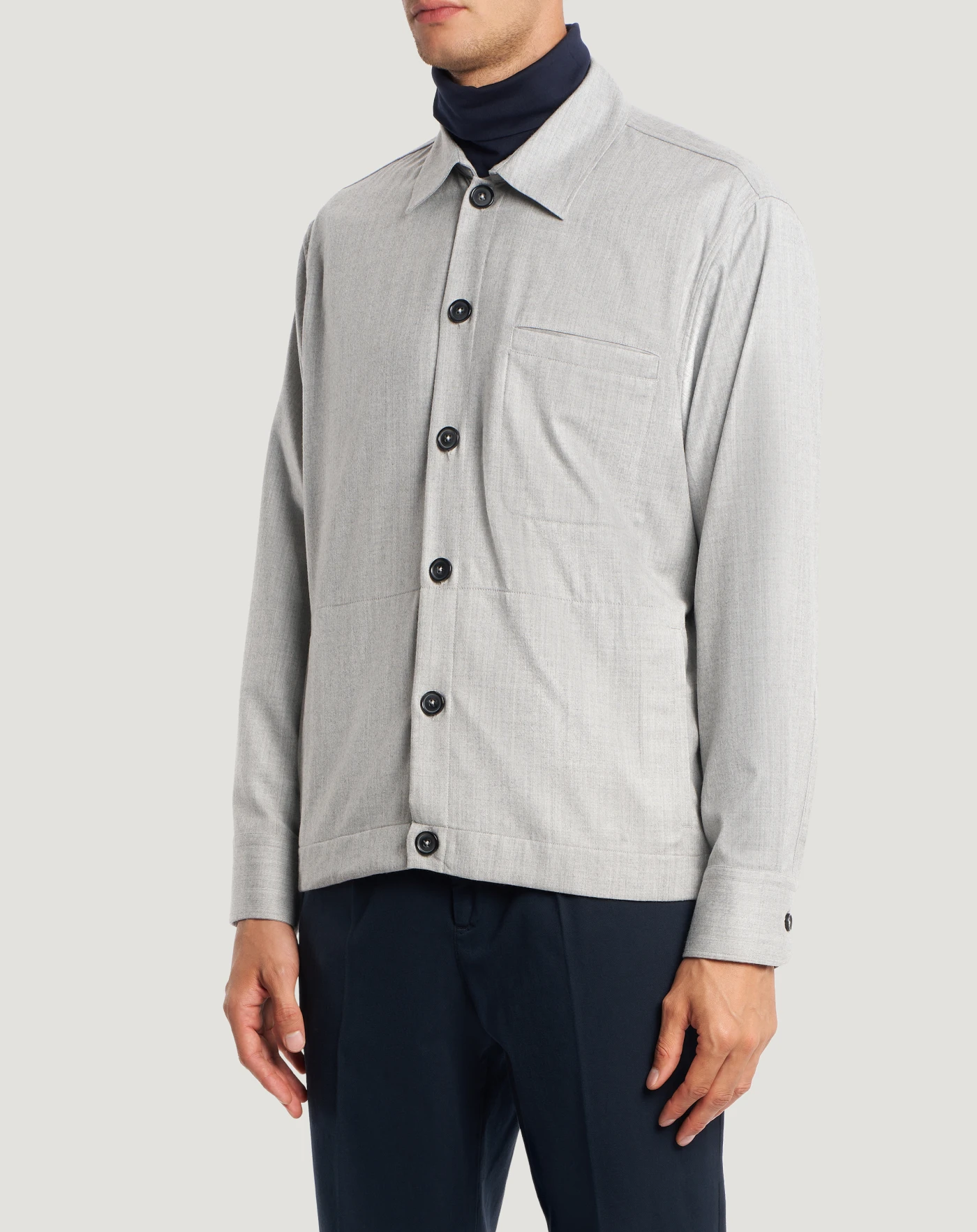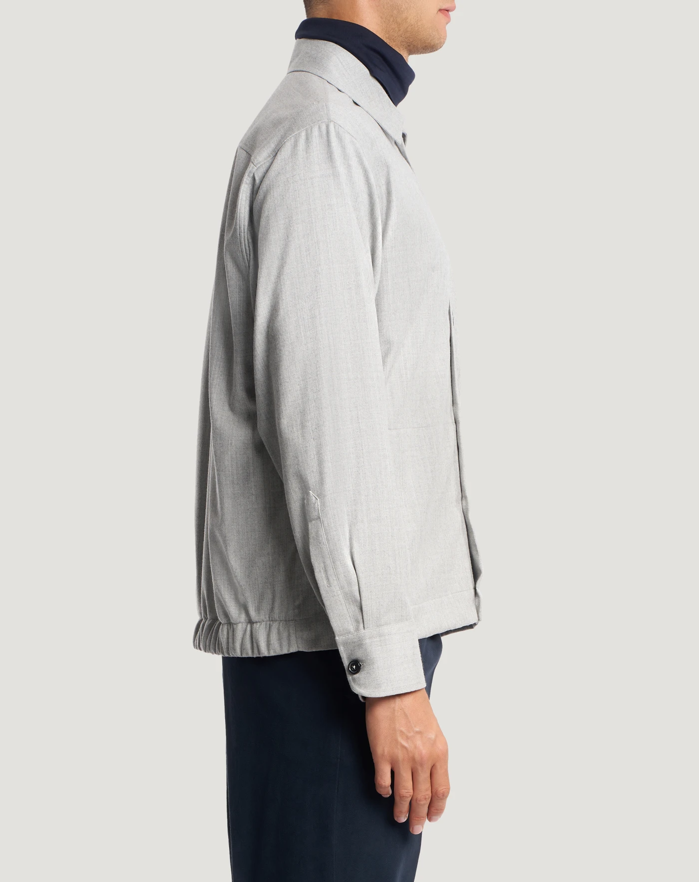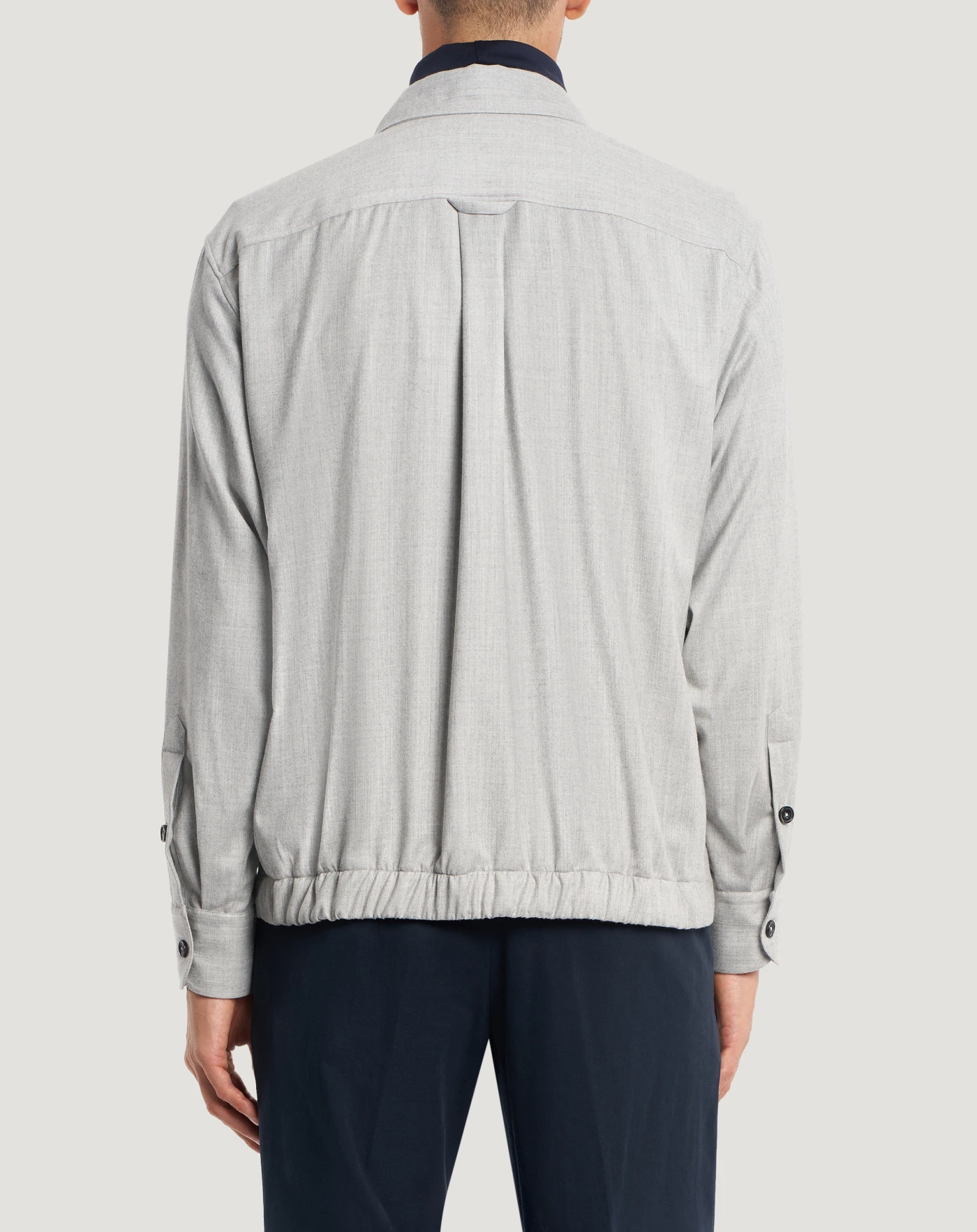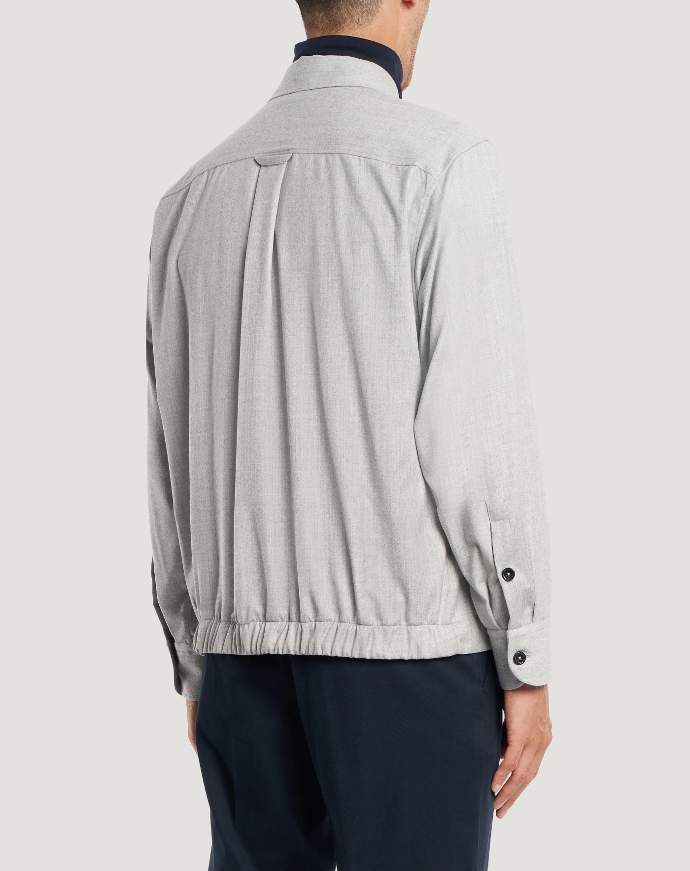 Jacket in wool and silk flannel, a refined blend with a feel that guarantees comfort and an impeccable fit.Relaxed fit with elasticated hem at the back, for a contemporary utility design that instantly elevates your outfit.