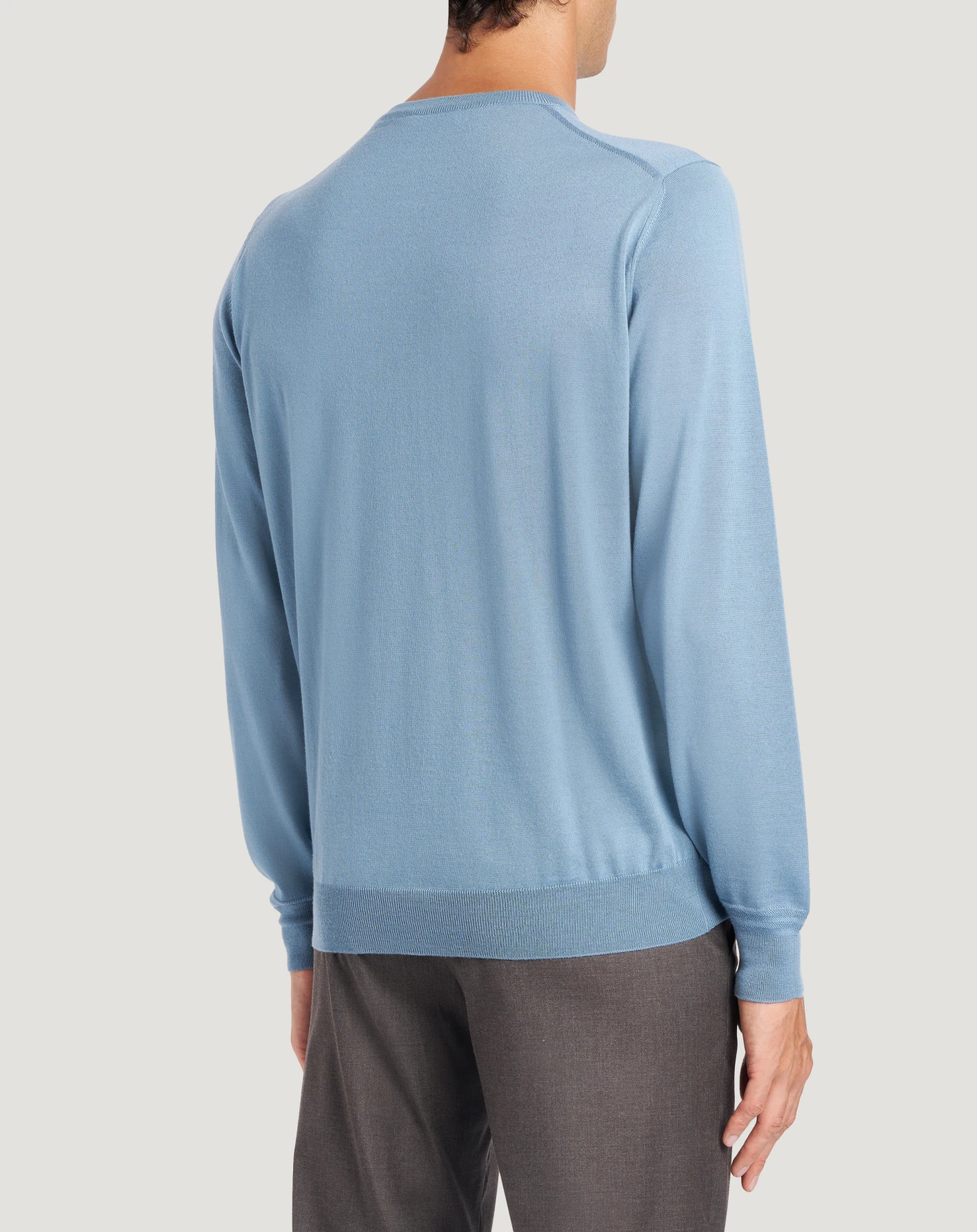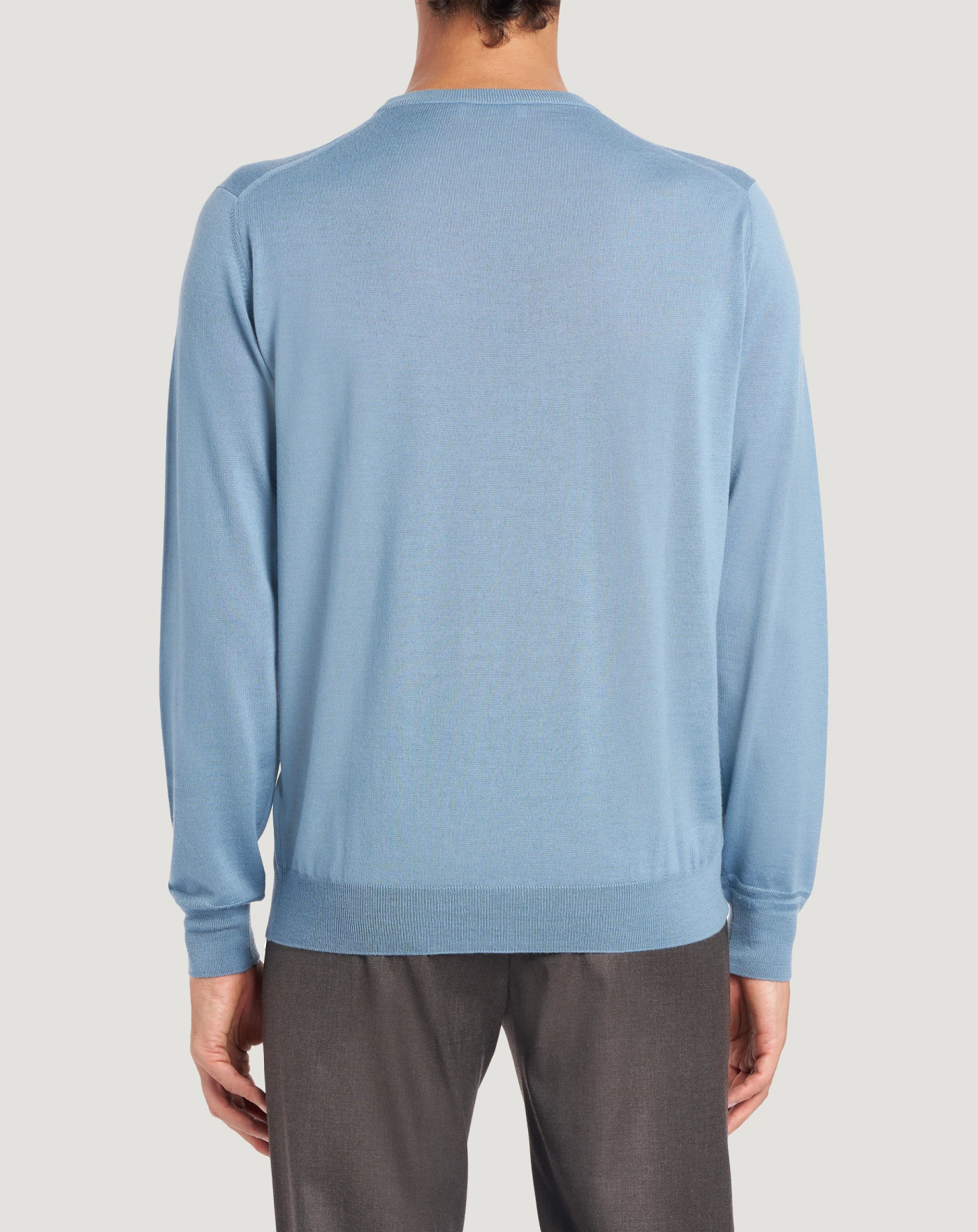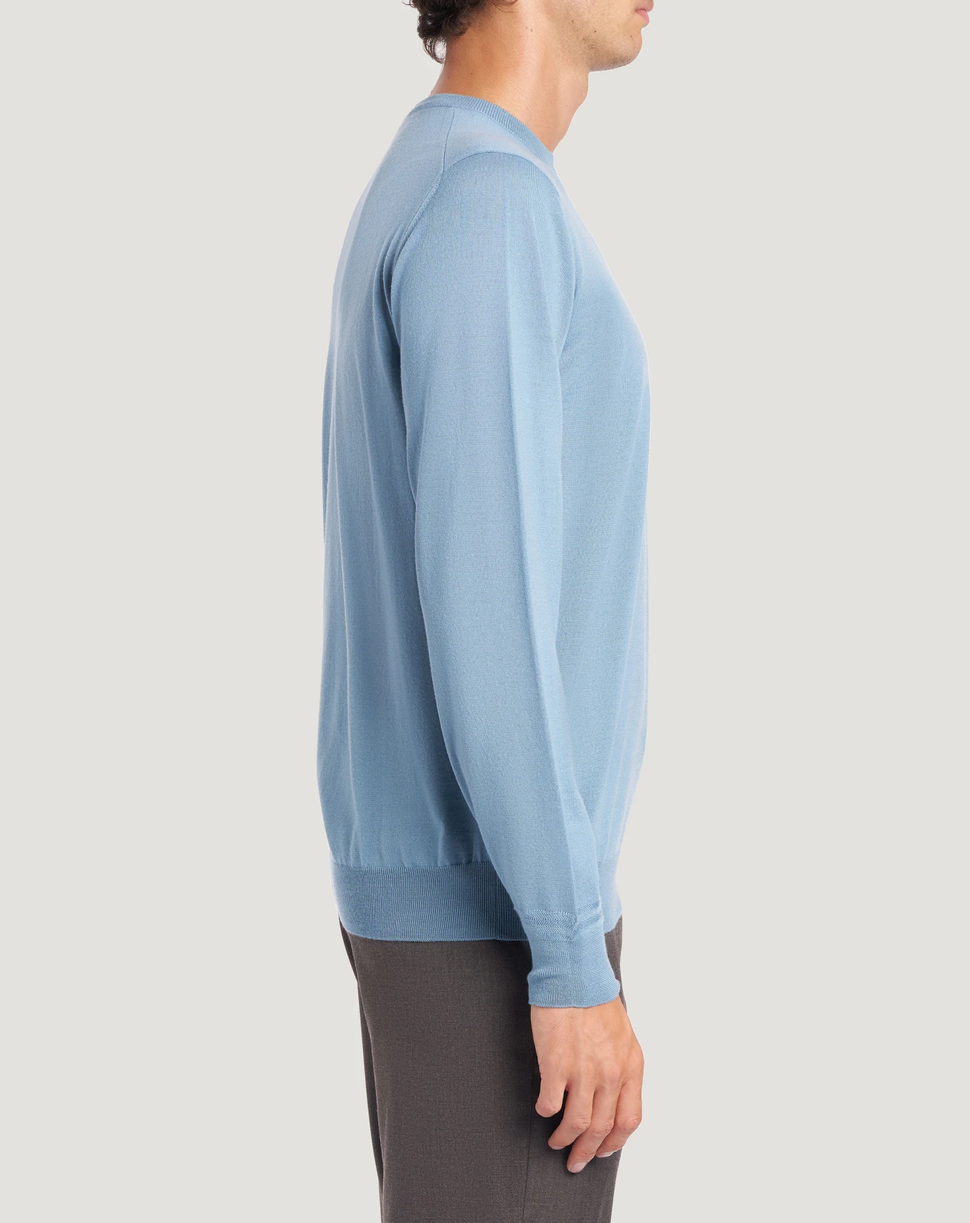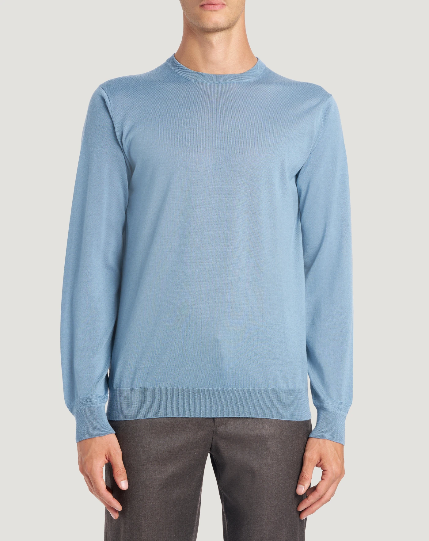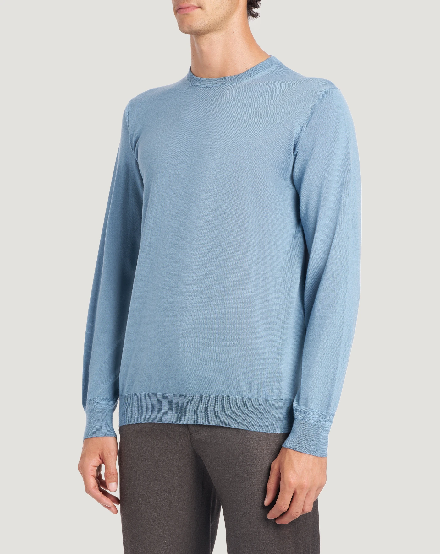 Stocking-stitch jumper in pure cotton fineness 16, which makes the garment lightweight and very comfortable.With a crew neck and slim fit, it features a versatile design that can be worn to complete formal and casual looks or under a jacket. Choose the light blue variant to give your look a touch of character.