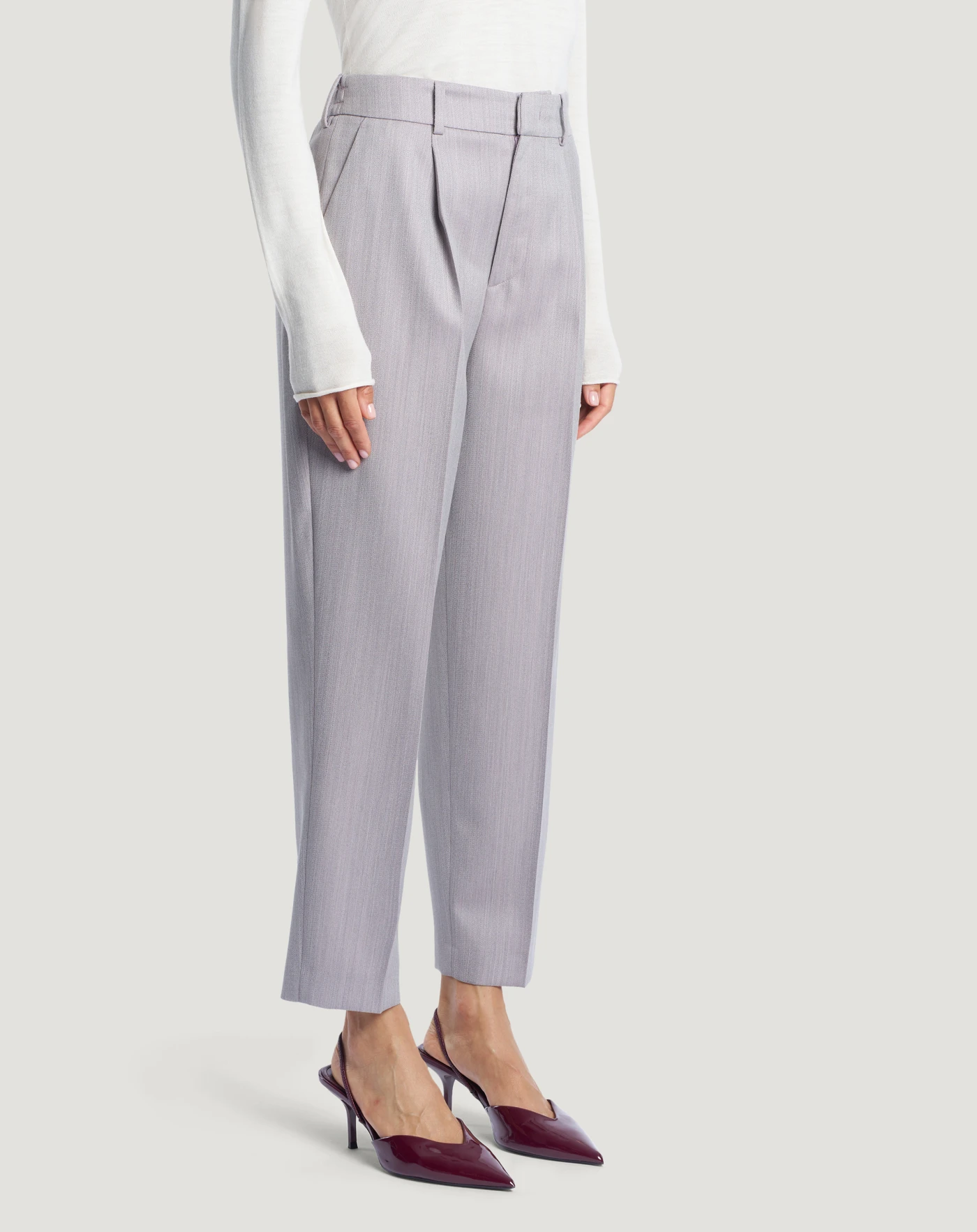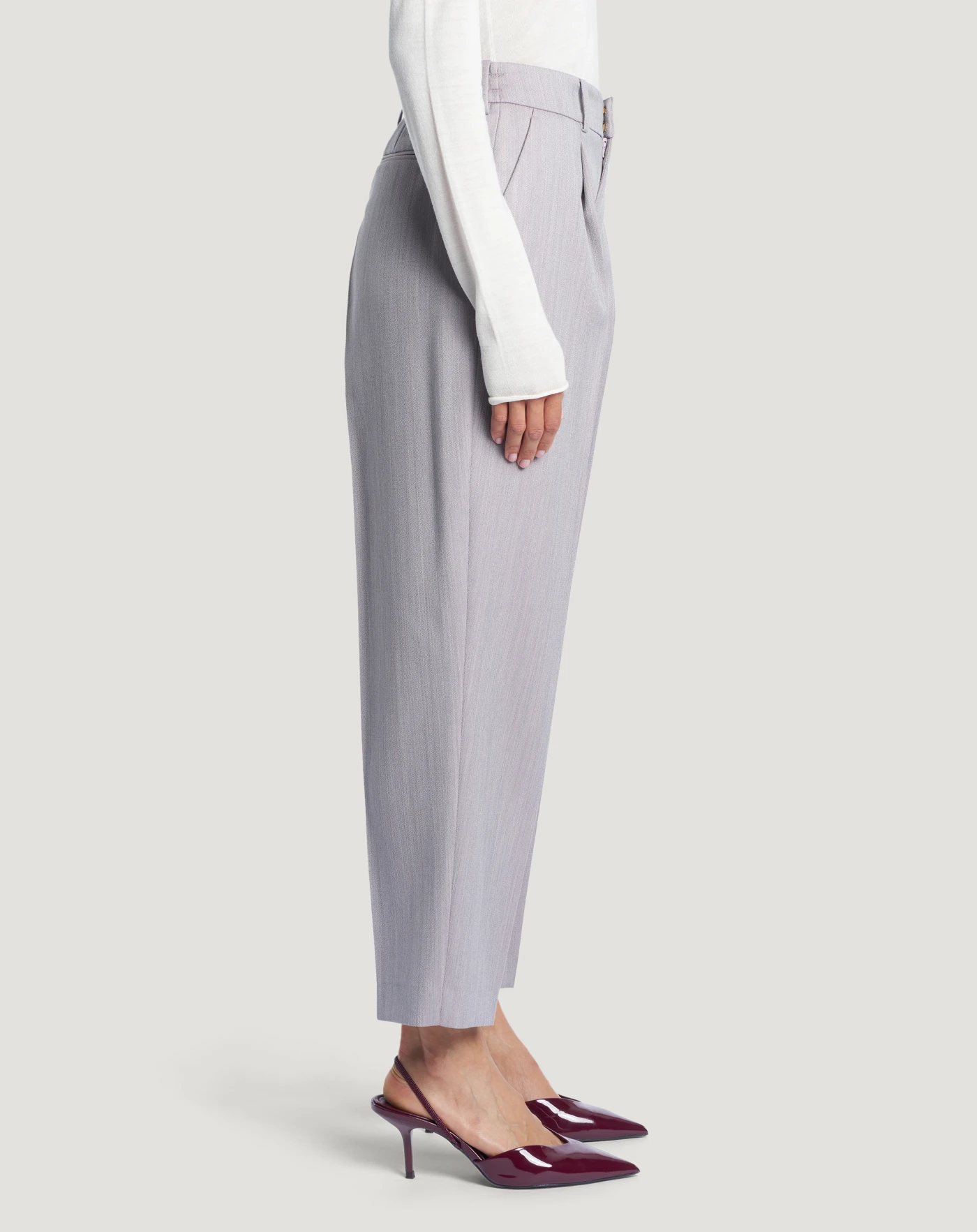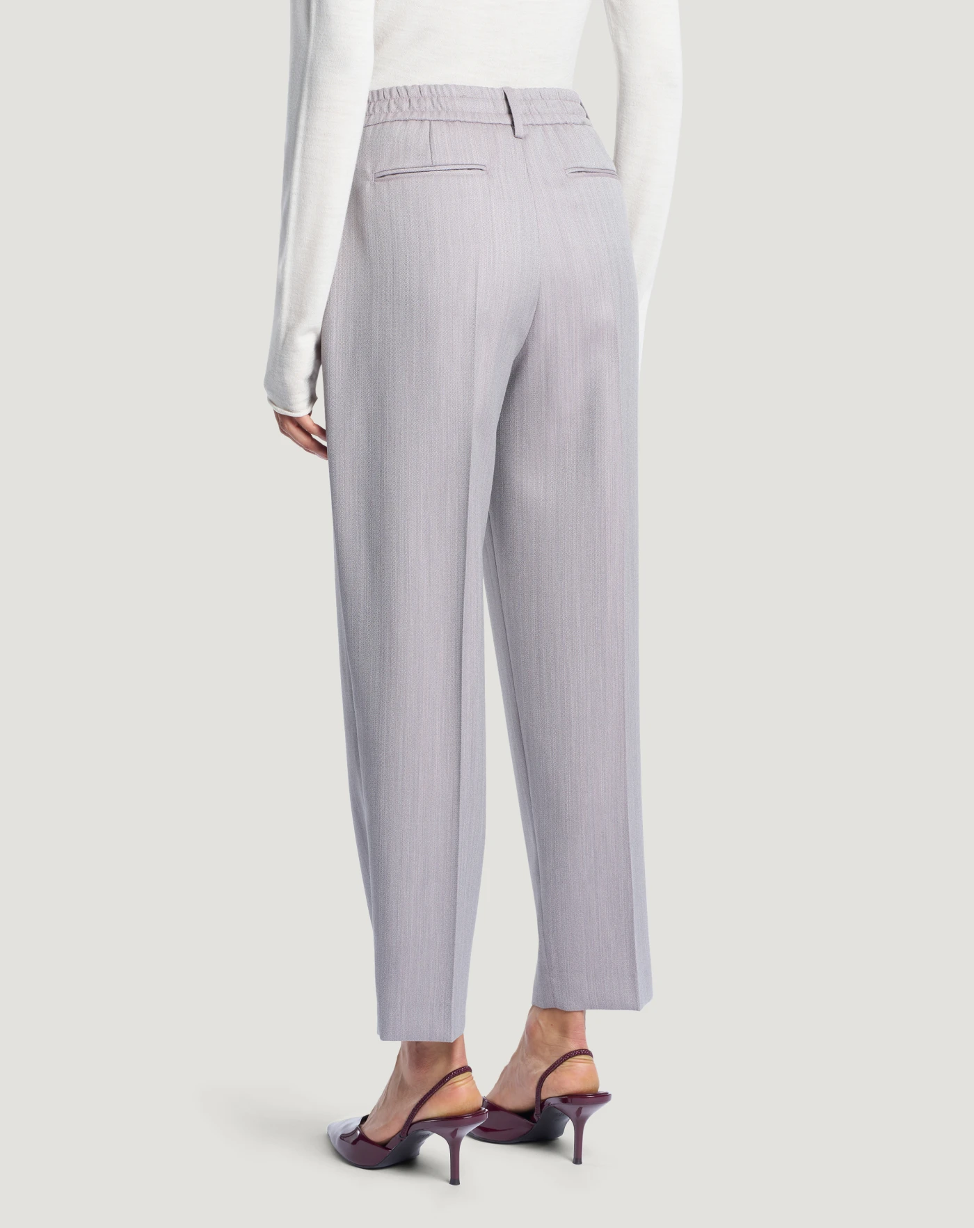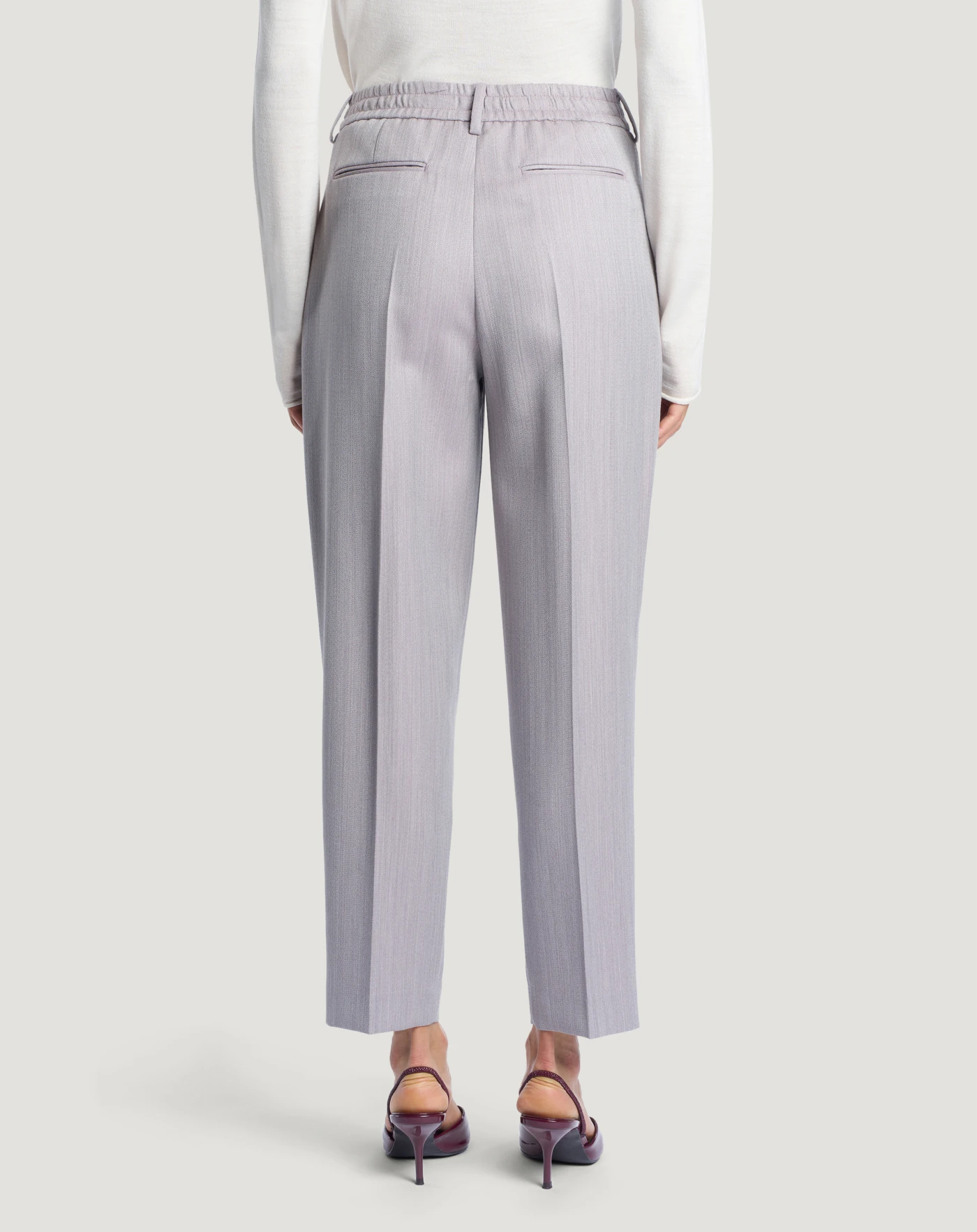 Trousers in pure wool with a malfilé effect, a soft, comfortable fabric with a knit finish.With pleats at the front and elasticated back, they are easy to wear and perfect for office or casual looks, also when paired with the matching jacket.