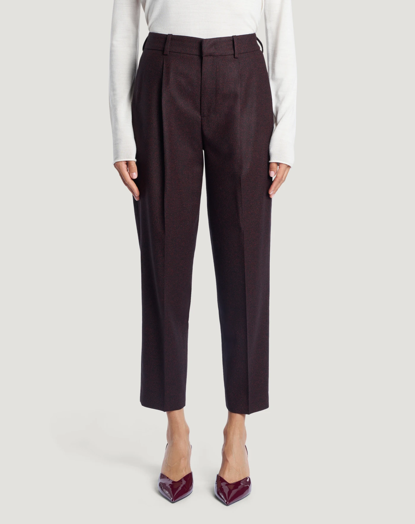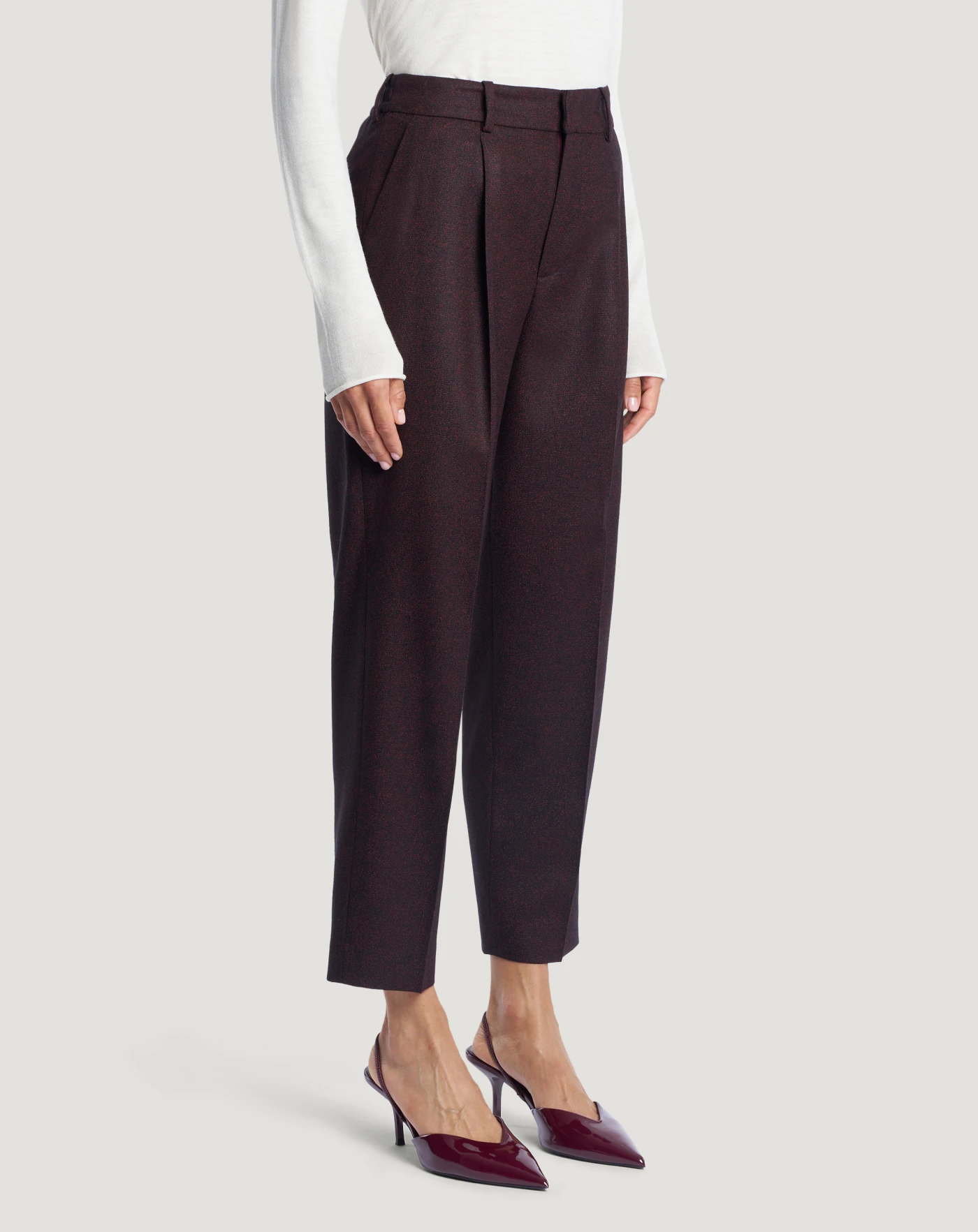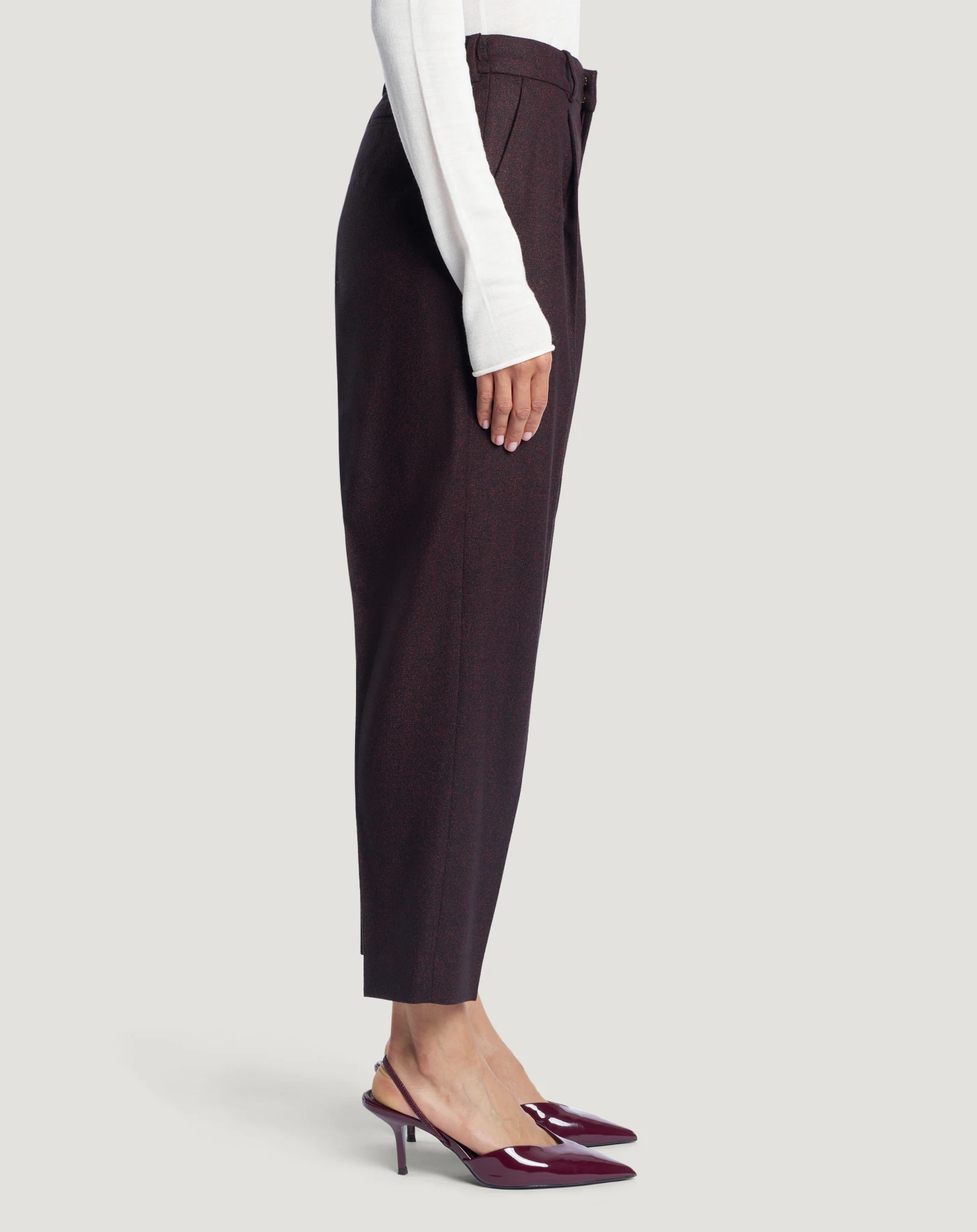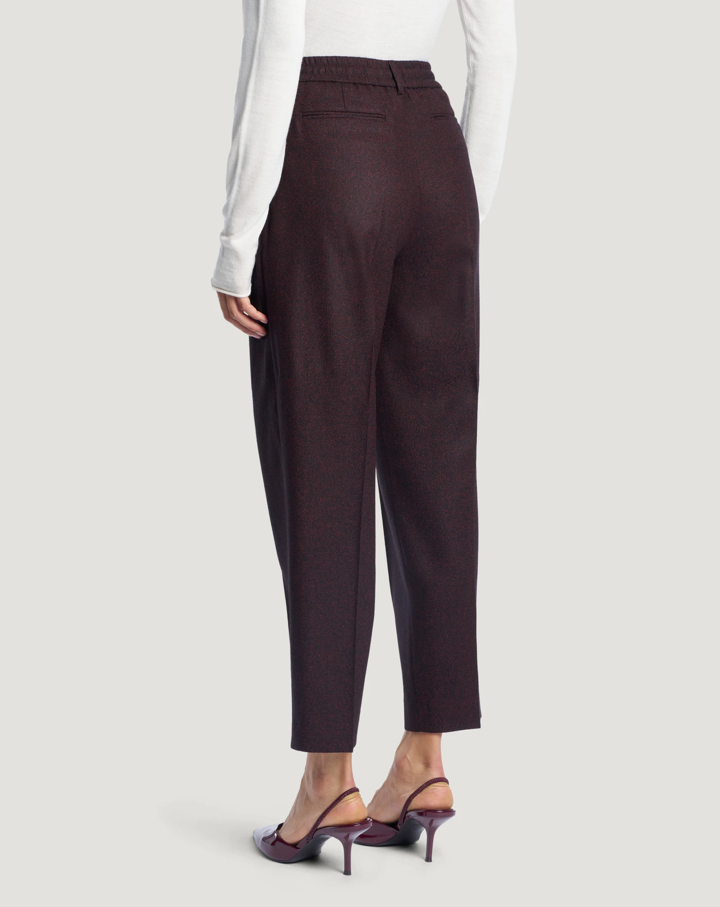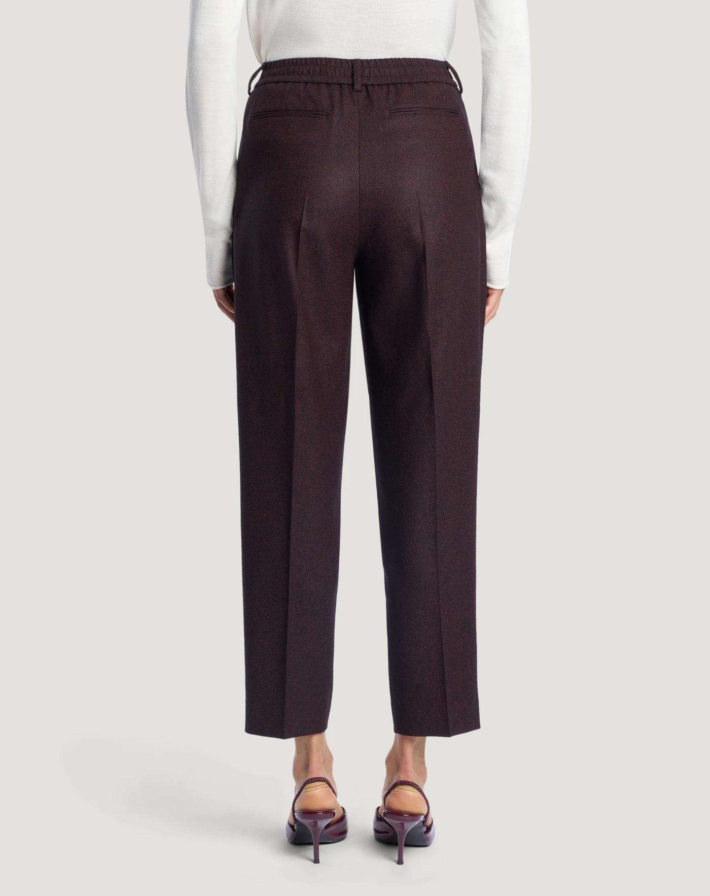 Trousers in soft and stretch winter wool with a pattern that adds a touch of personality to your look. With pleats at the front and elasticated back, they are perfect for the cold season and combine comfort and style in a versatile and sophisticated garment.