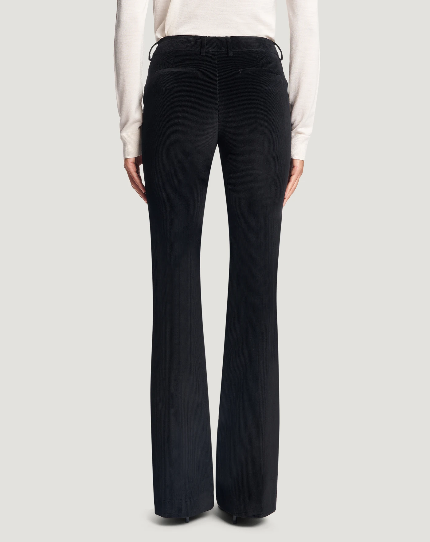 Trousers in stretch cotton blend fine rib velvet with a super-soft texture and bright colour.With a slim fit, smooth front and pressed crease, they are perfect to complete everyday outfits.