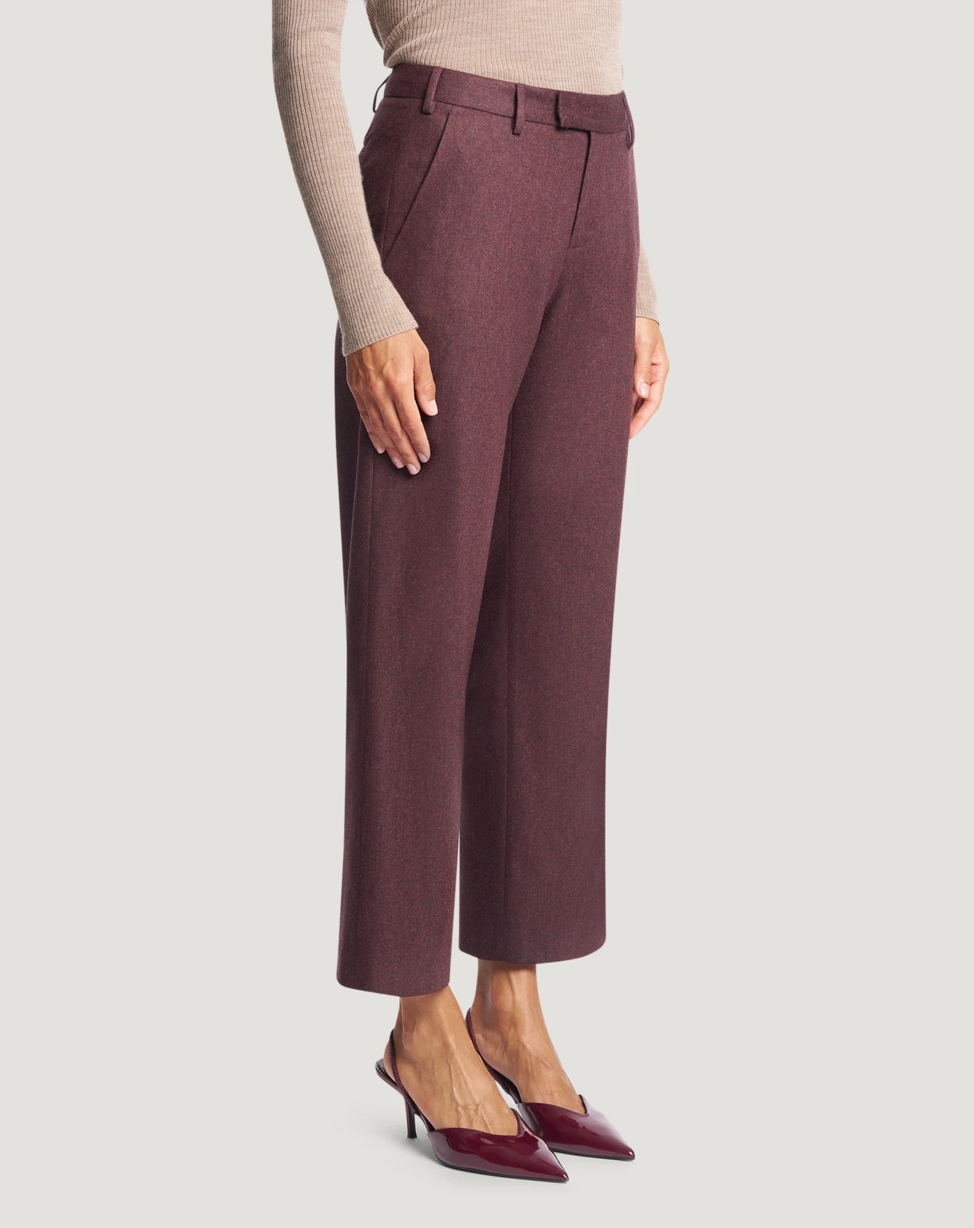 Trousers in wool and cashmere flannel, a soft, warm fabric that will complete seasonal looks to perfection.With their straight, slim line, in red they will complete your style with chromatic energy.