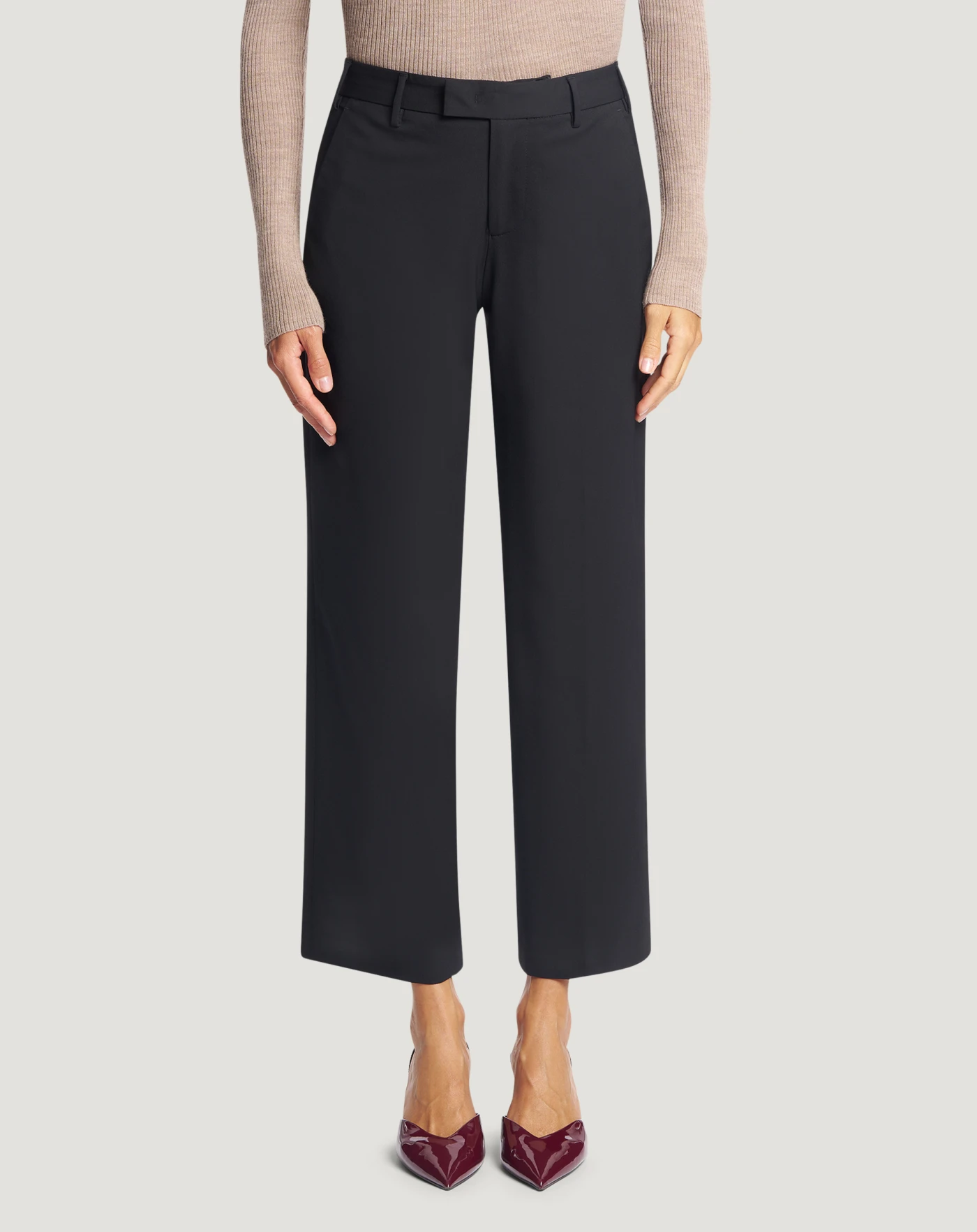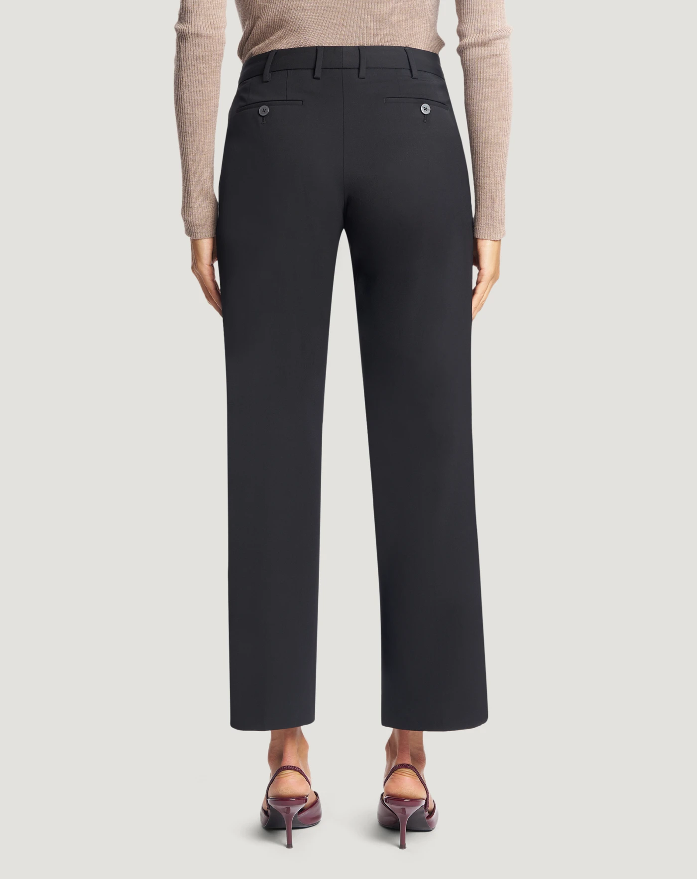 Trousers in bi-stretch Batavia wool, a fabric distinguished by a stretch weave that adapts to the body’s movements, ensuring a look that is both elegant and comfortable yet lightweight.With their straight, slim fit, choose the black variant for a versatile all-rounder in your wardrobe. Wear them with a matching jacket.