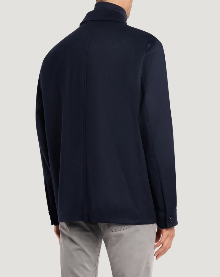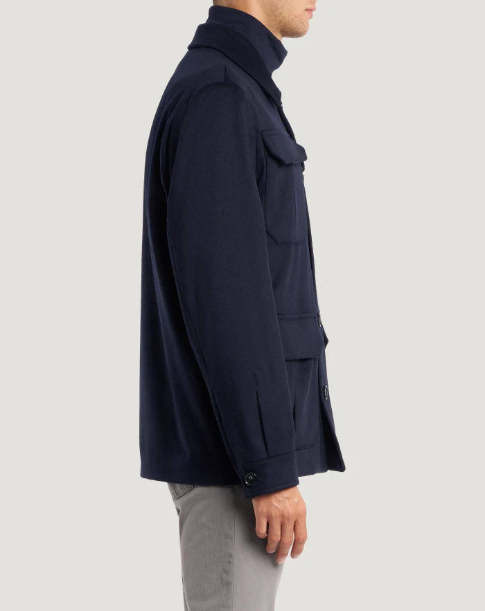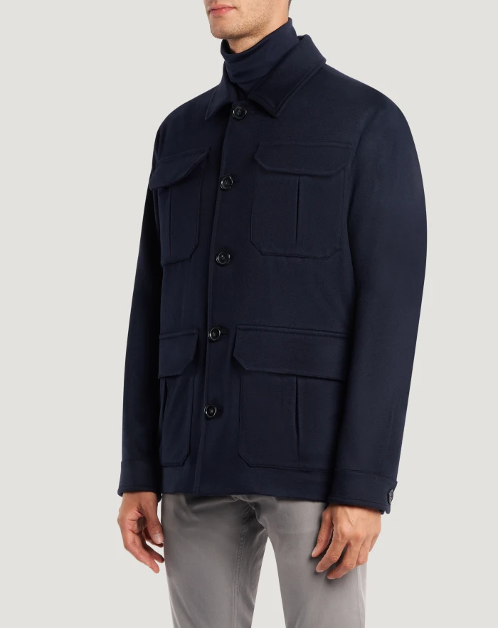 Explorer jacket in wool and cashmere drap, a fine, warm and comfortable fabric.The design features a comfortable fit and maxi pockets – choose the navy blue variant to add an elegant yet sporty touch to your style.