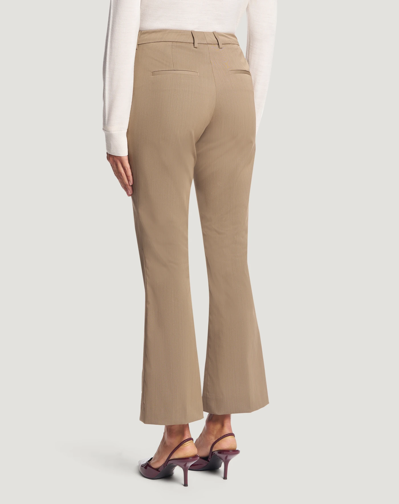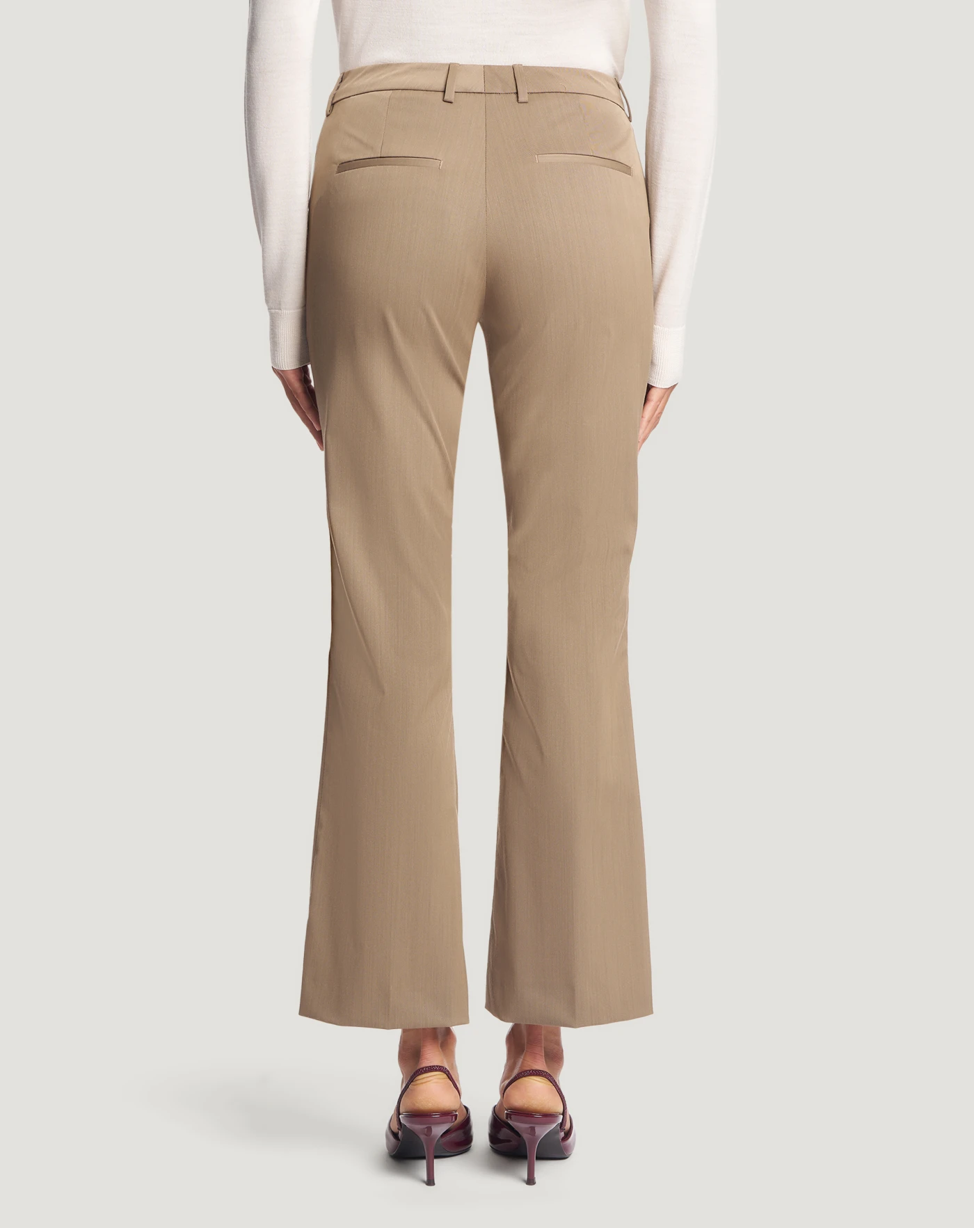 Trousers in super-light active wool twill, a fabric with a technical, refined look that is perfect for everyday wear.With a flared fit and ankle length, choose the camel brown variant for unique formal looks.