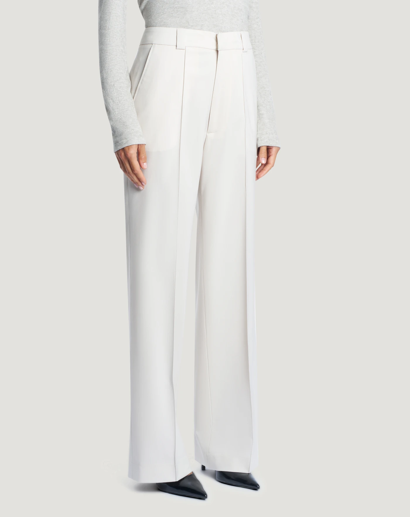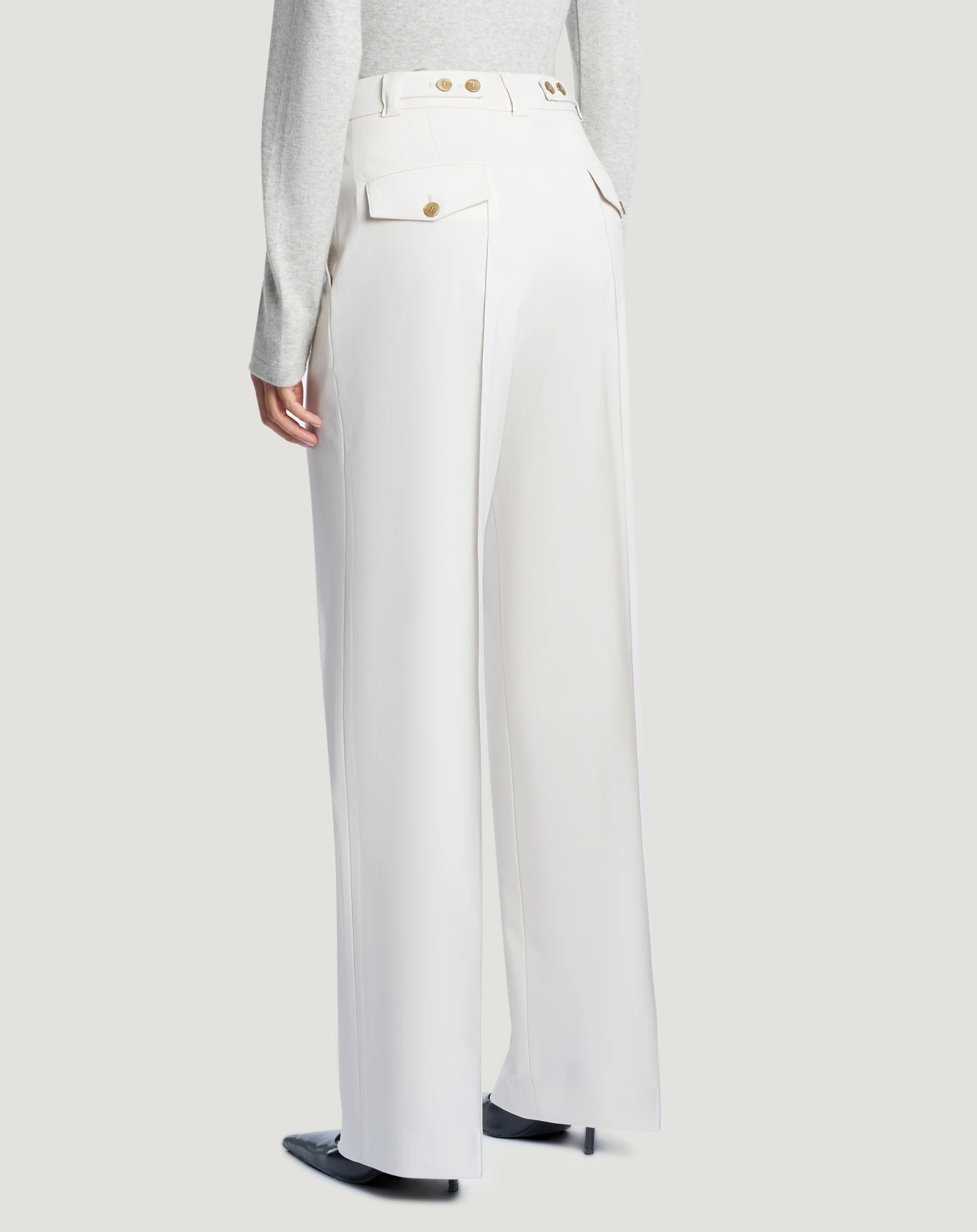 Trousers in bi-stretch Batavia wool, a fabric distinguished by a stretch weave that adapts to the body’s movements, ensuring a look that is both elegant and comfortable yet lightweight.With a straight fit, front pleats and flap pockets at the back, their tailored look instantly elevates your style.