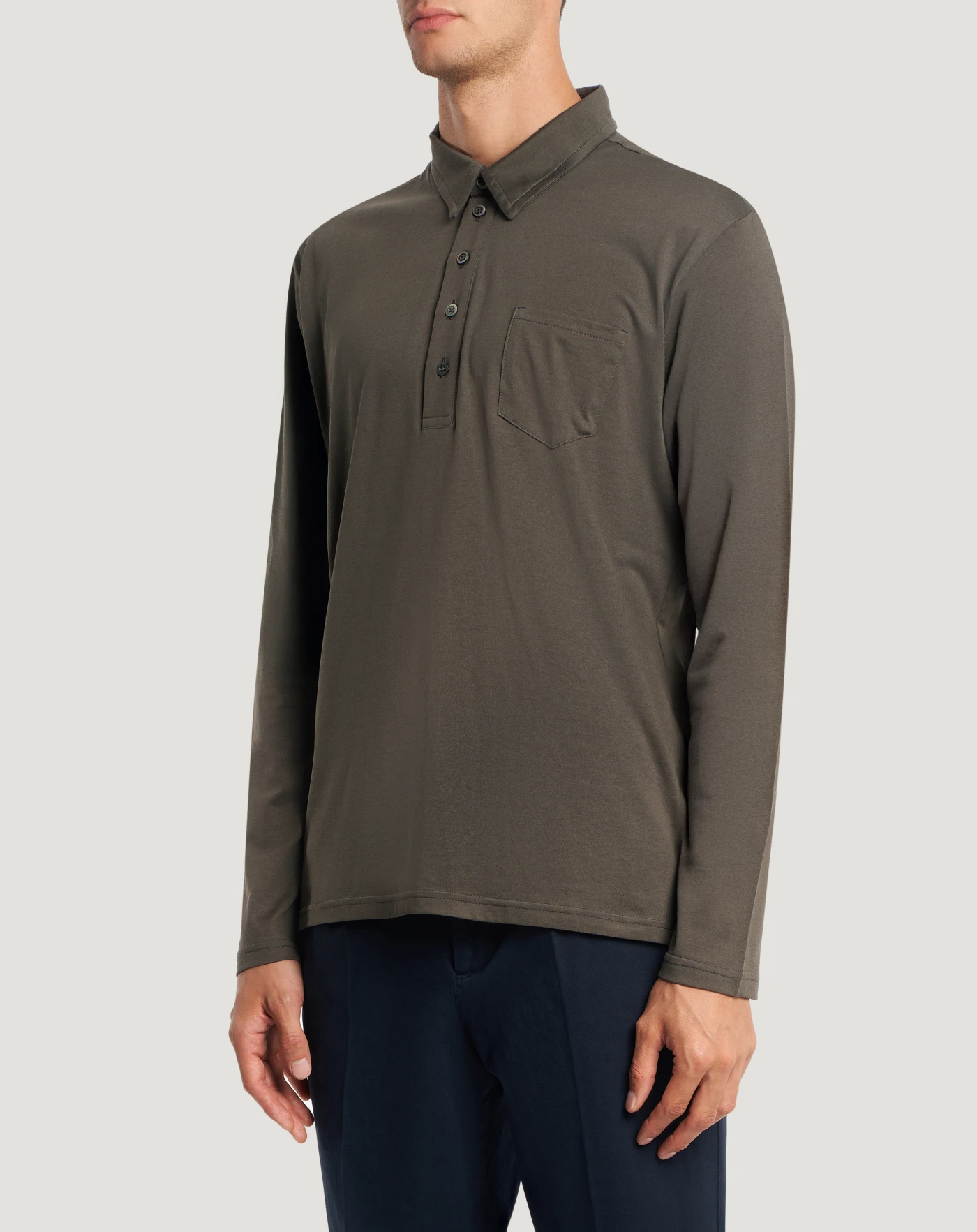 Polo neck jumper in cotton and silk jersey, a functional and high-quality fabric with an elegant and timeless look.With a patch pocket and regular fit, it will be the perfect wild card item in your wardrobe – in the black for an edgy look.