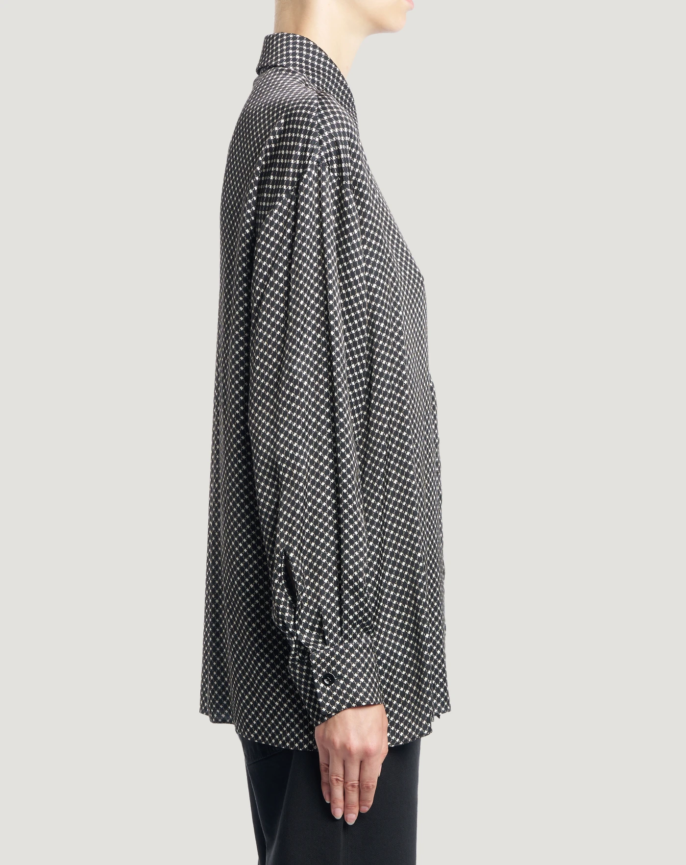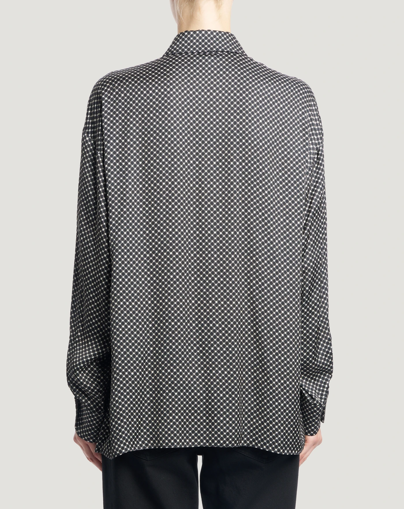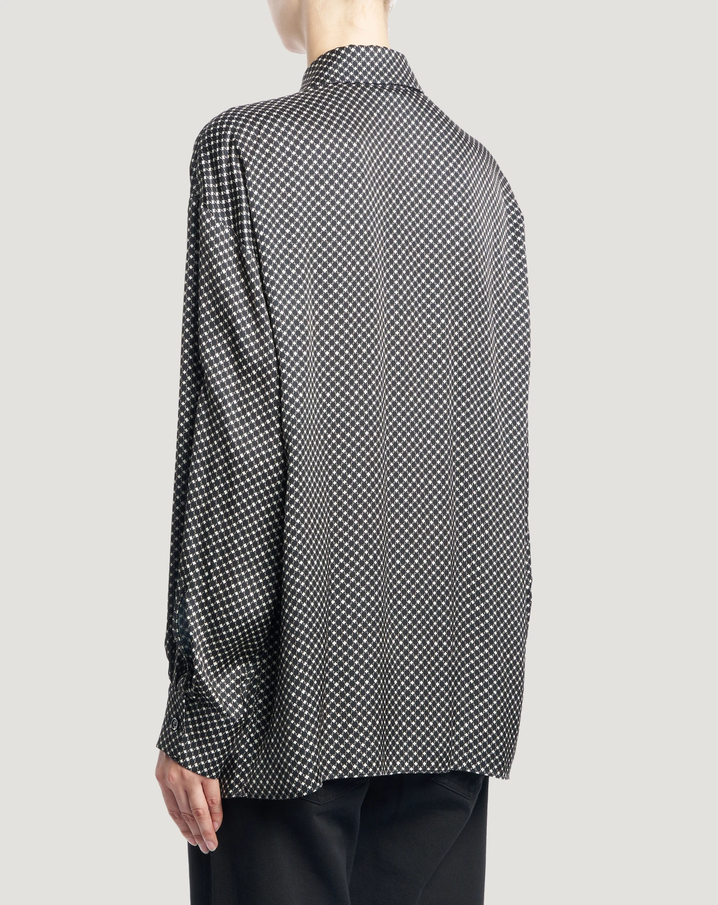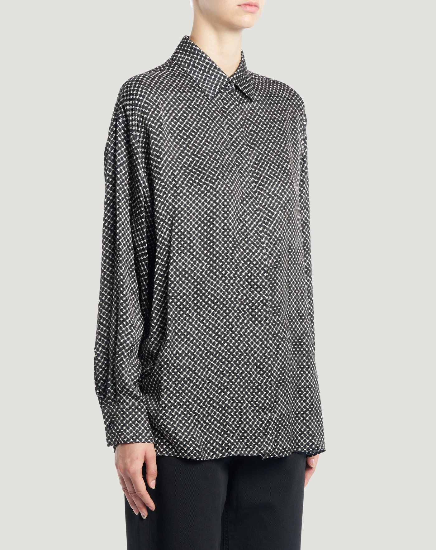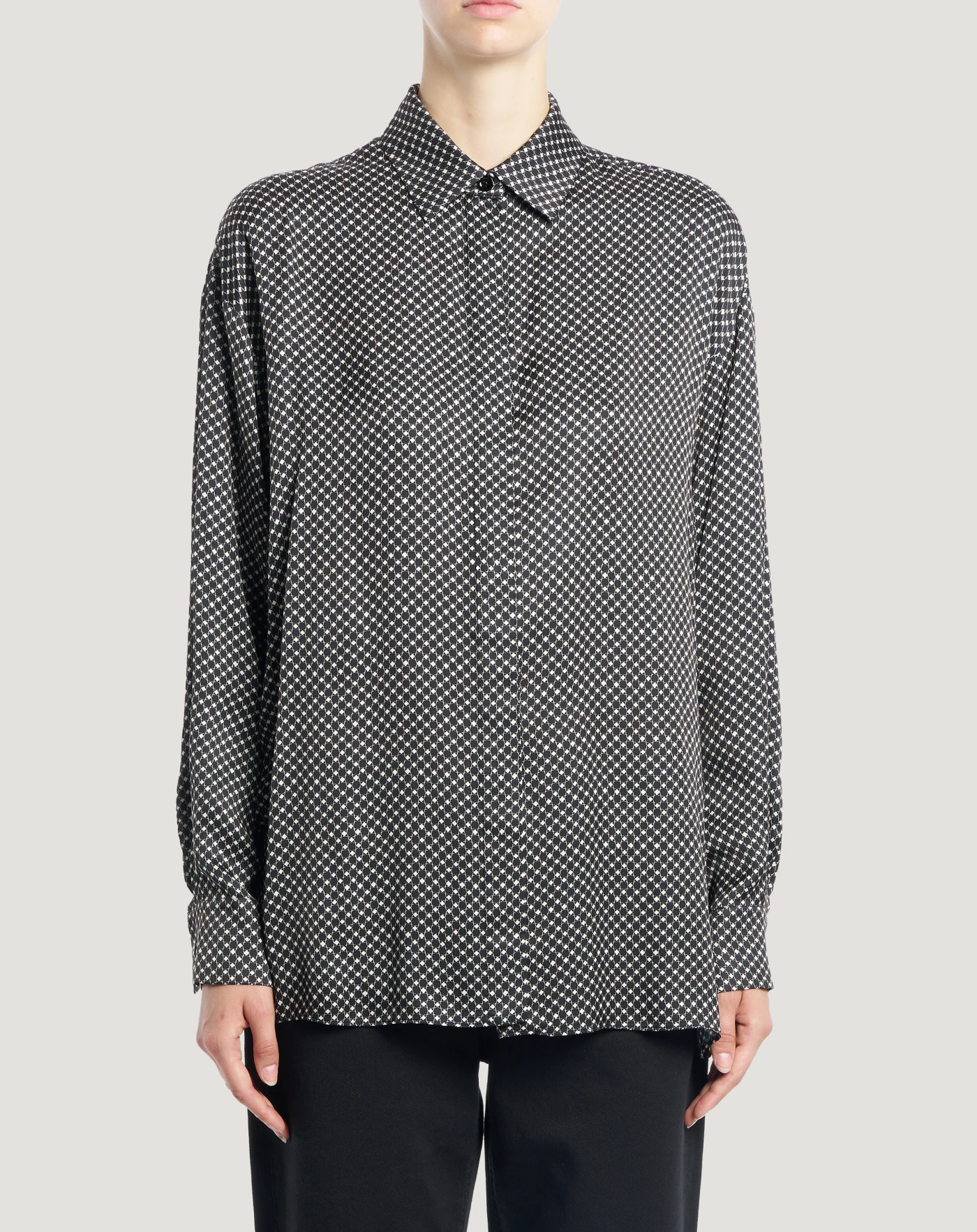 Shirt in super-light viscose satin, a bright and refined fabric that is comfortable to wear.The men’s style inspired design with a straight fit is perfect for immediately completing formal and elegant looks.