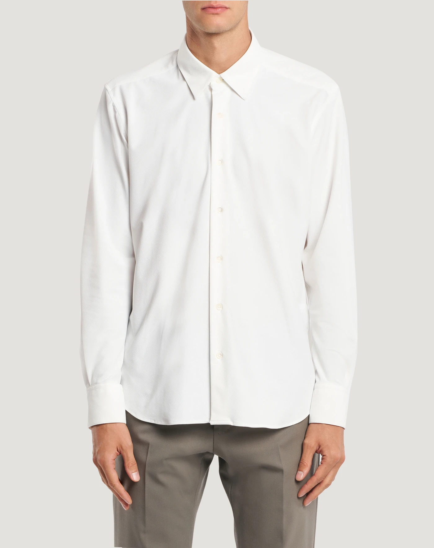 Shirt in active piquet, a fabric that reinterprets the classic honeycomb structure with a technical, light and breathable approach.Its regular fit is perfect when paired with tailored suits or casual trousers.