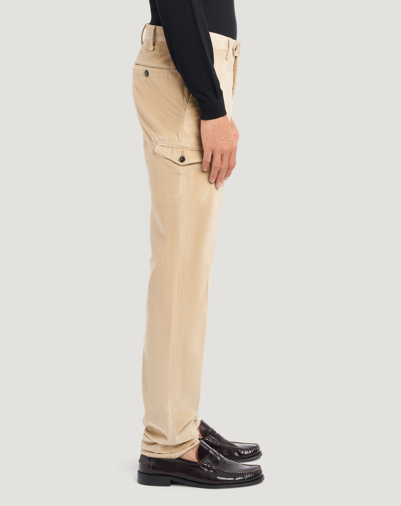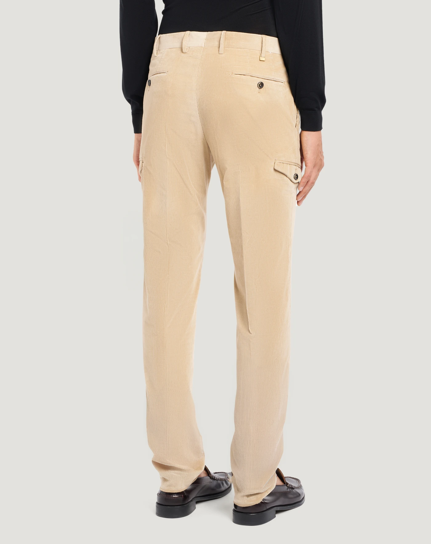 Trousers in stretch cotton-blend fine-rib velvet with a super-soft texture and bright colour.The garment is delivered unstitched, so that it can be finished to suit your length and style through simple tailoring.The design combines refined tailoring and utility details that instantly enhance your look.