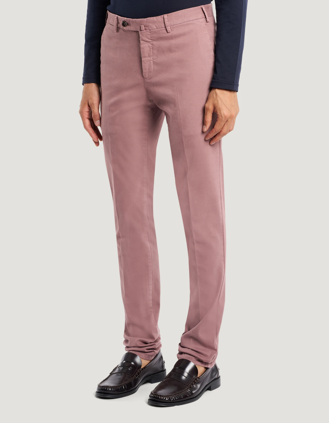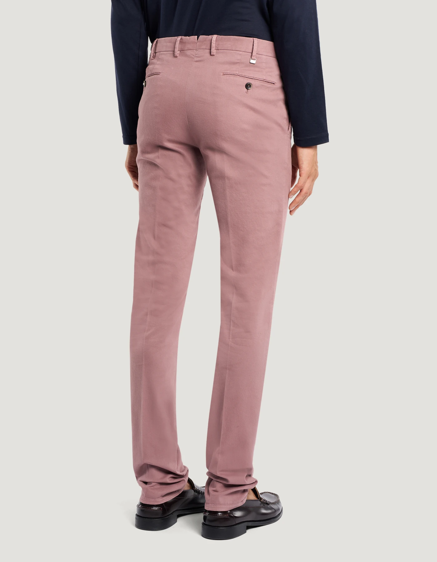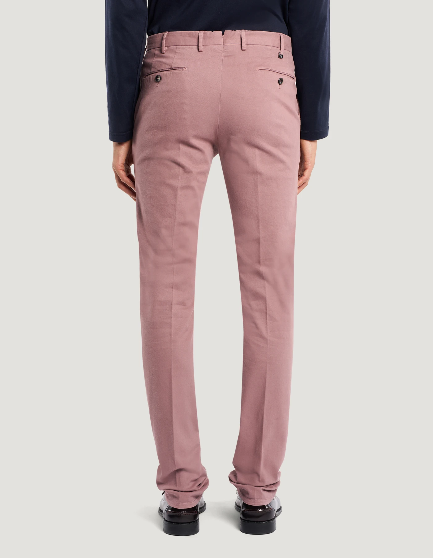 Trousers in stretch cotton winter gabardine with a compact and warm structure. Designed for the cold season, it combines comfort and durability with a soft, enveloping feel.The garment is delivered unstitched, so that it can be finished to suit your length and style through simple tailoring.Choose the pink variant for an edgy touch of colour.