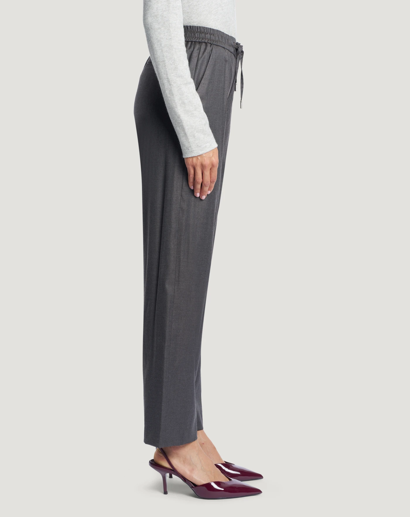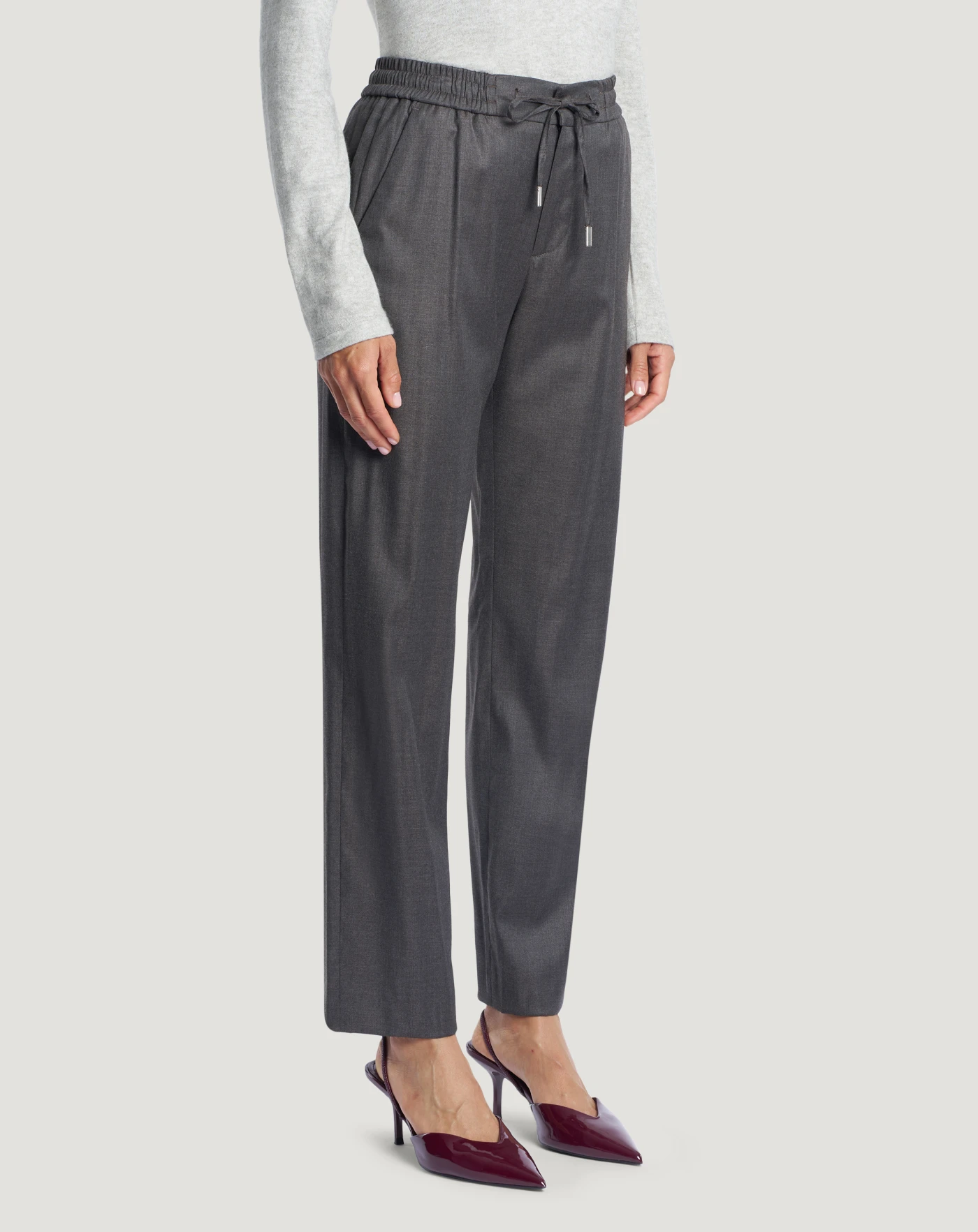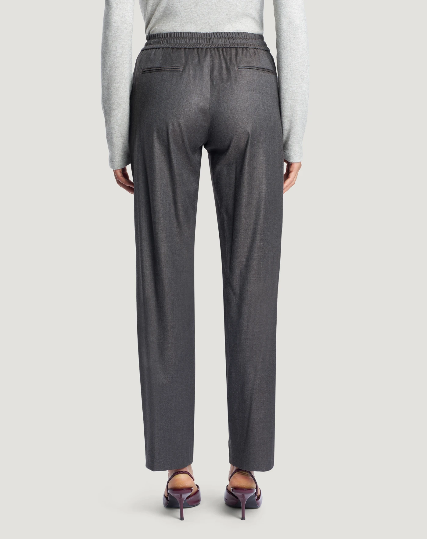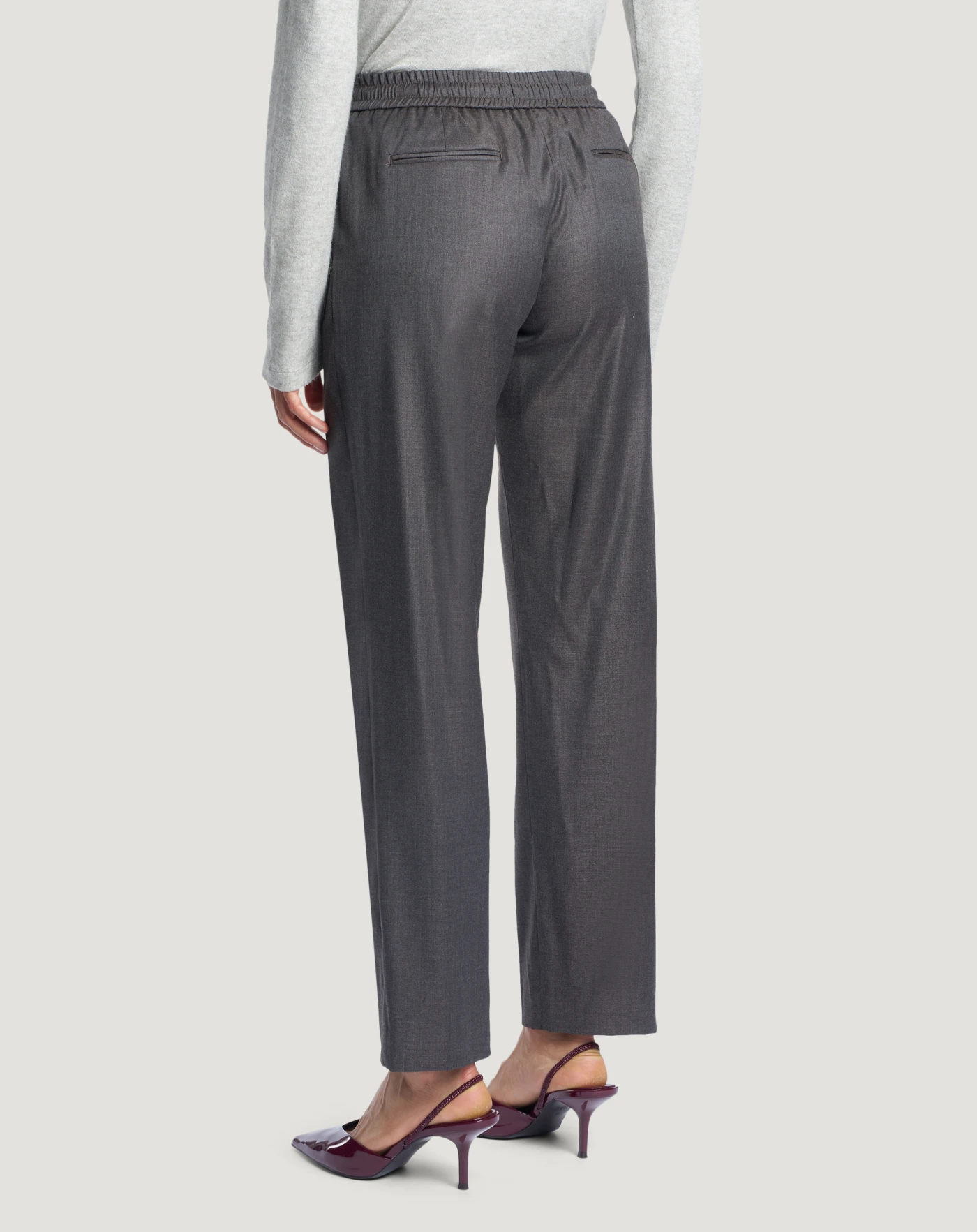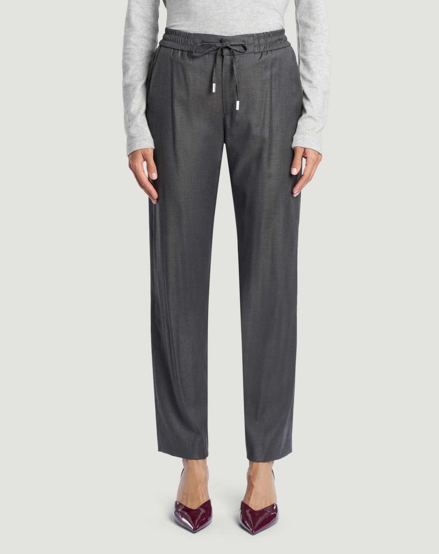 Trousers in stretch wool twill, a fine diagonal weave fabric with a fluid hand and slightly stretch texture that guarantees comfort and freedom of movement.Relaxed fit with adjustable elasticated drawstring waist. In brown for refined everyday looks.