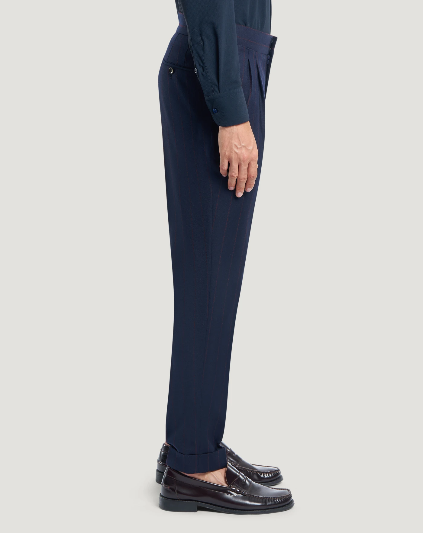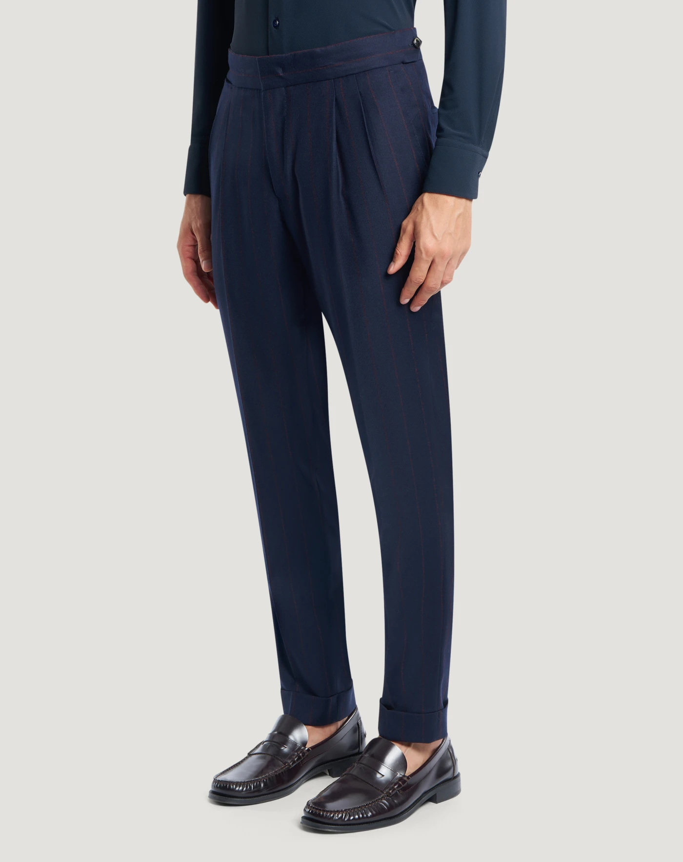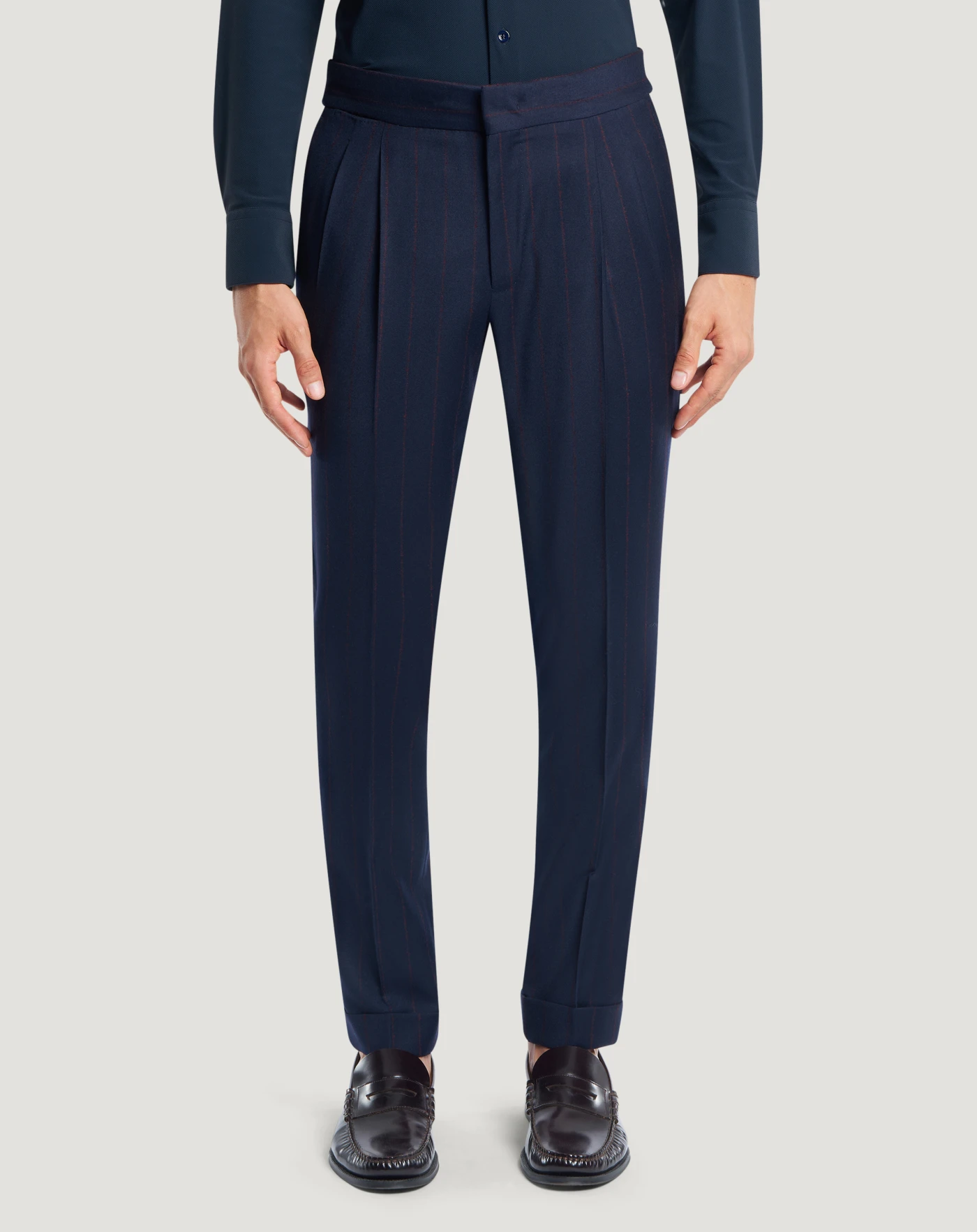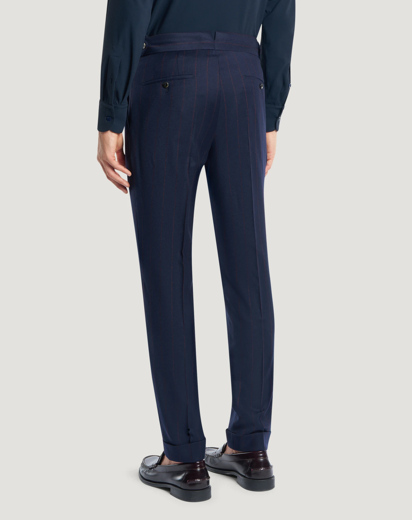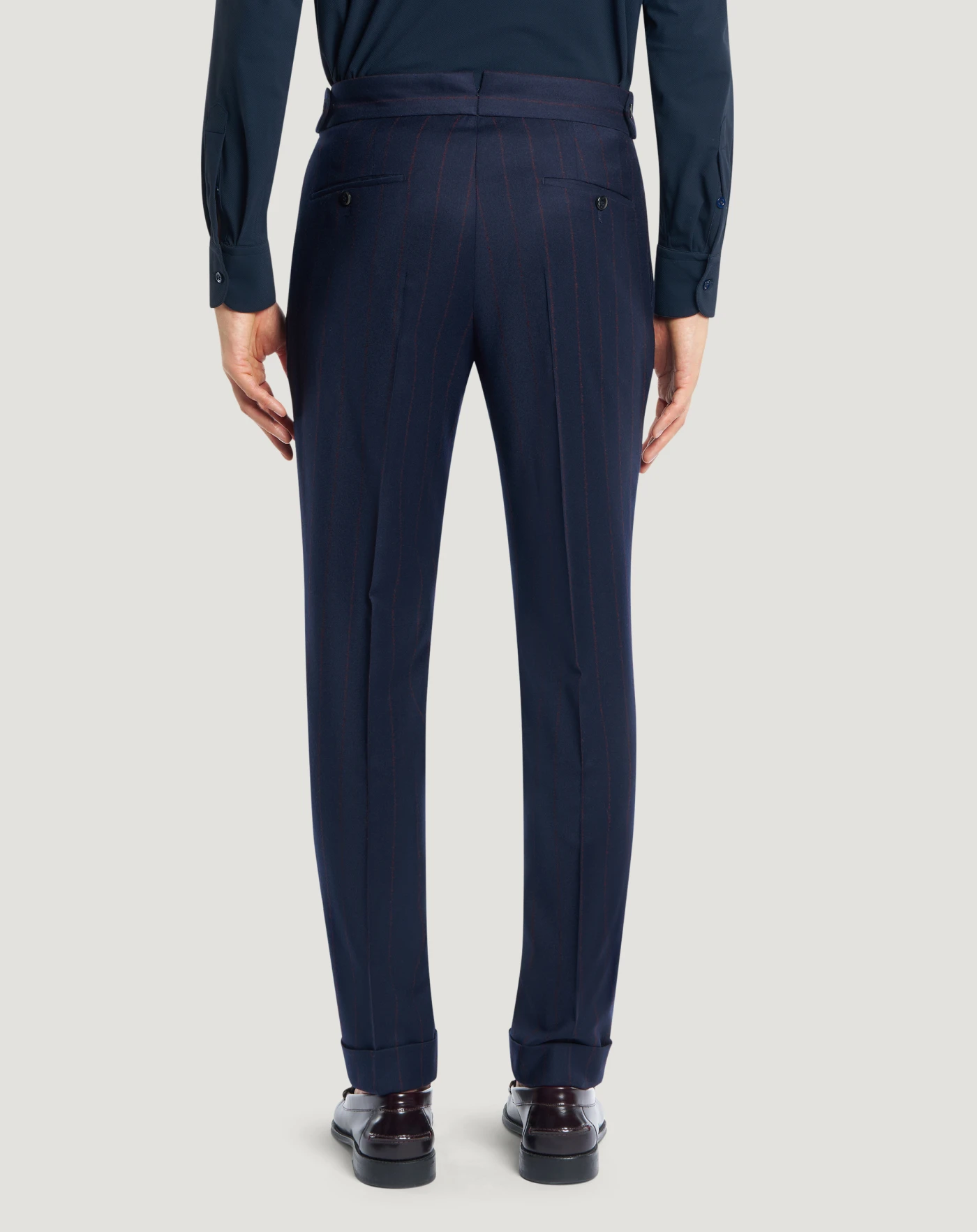 Trousers in stretch flannel, a soft, warm fabric with a modern checked pattern.The garment is delivered unstitched, so that it can be finished to suit your length and style through simple tailoring. With a front pleat and flap pocket, their graphic appeal instantly elevate your style.