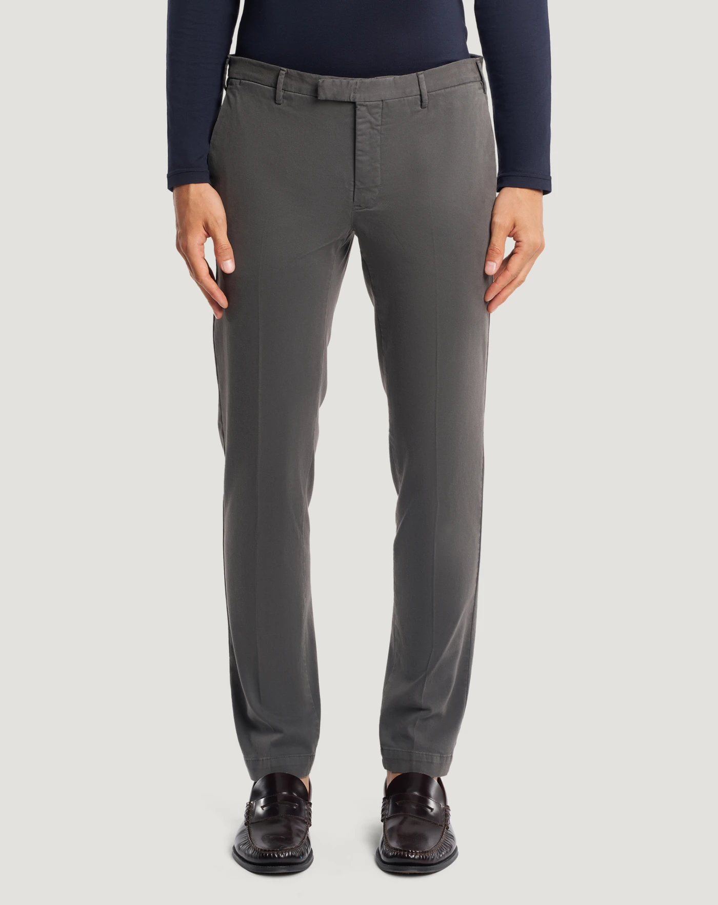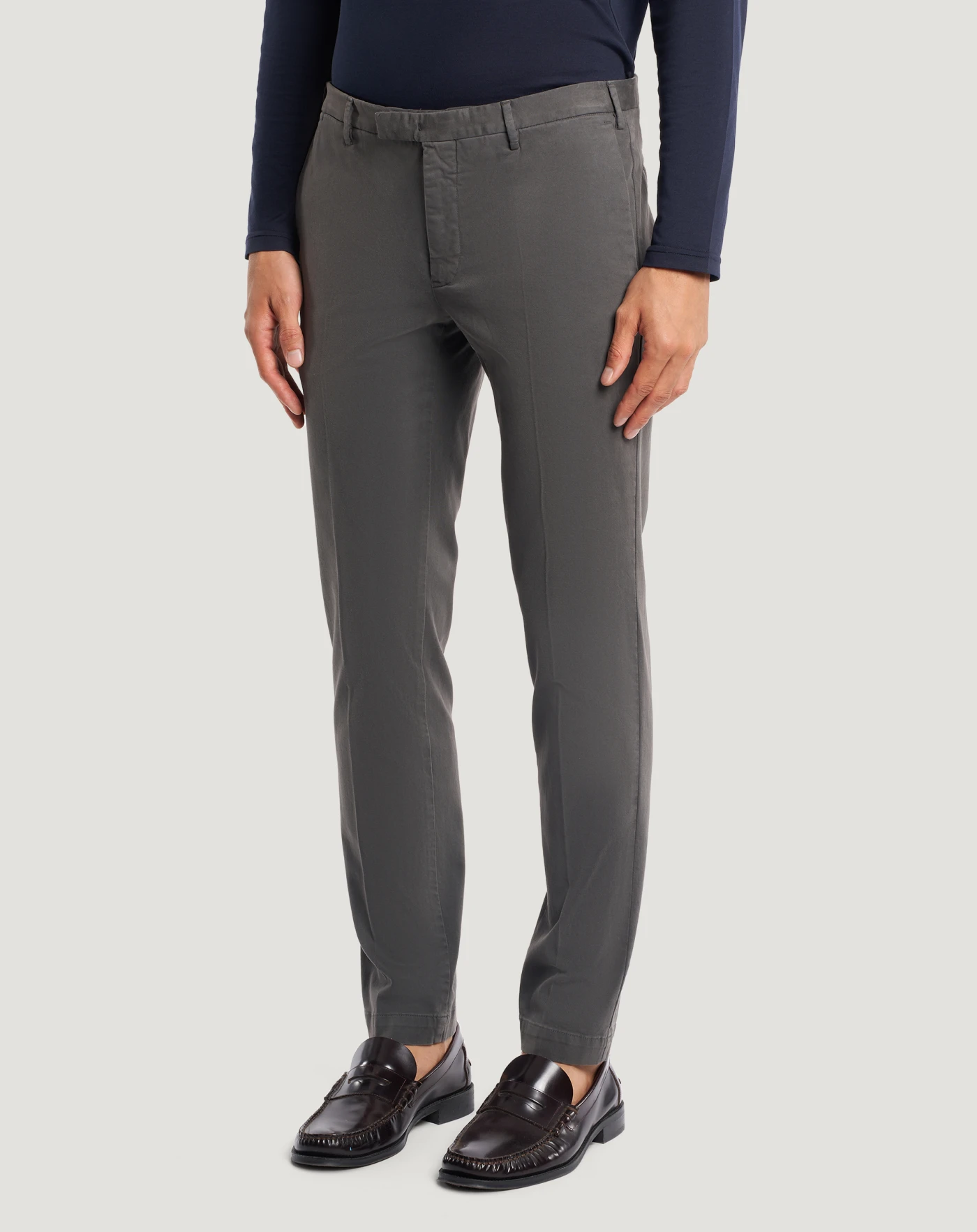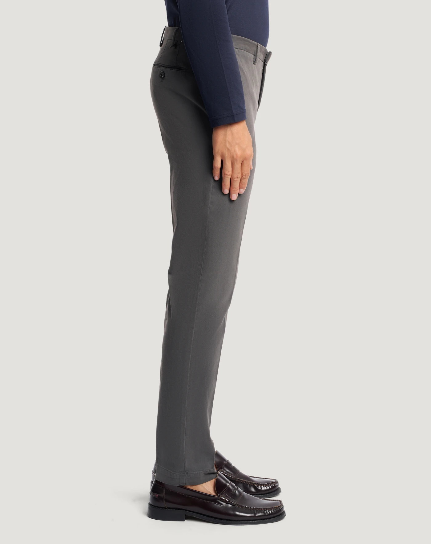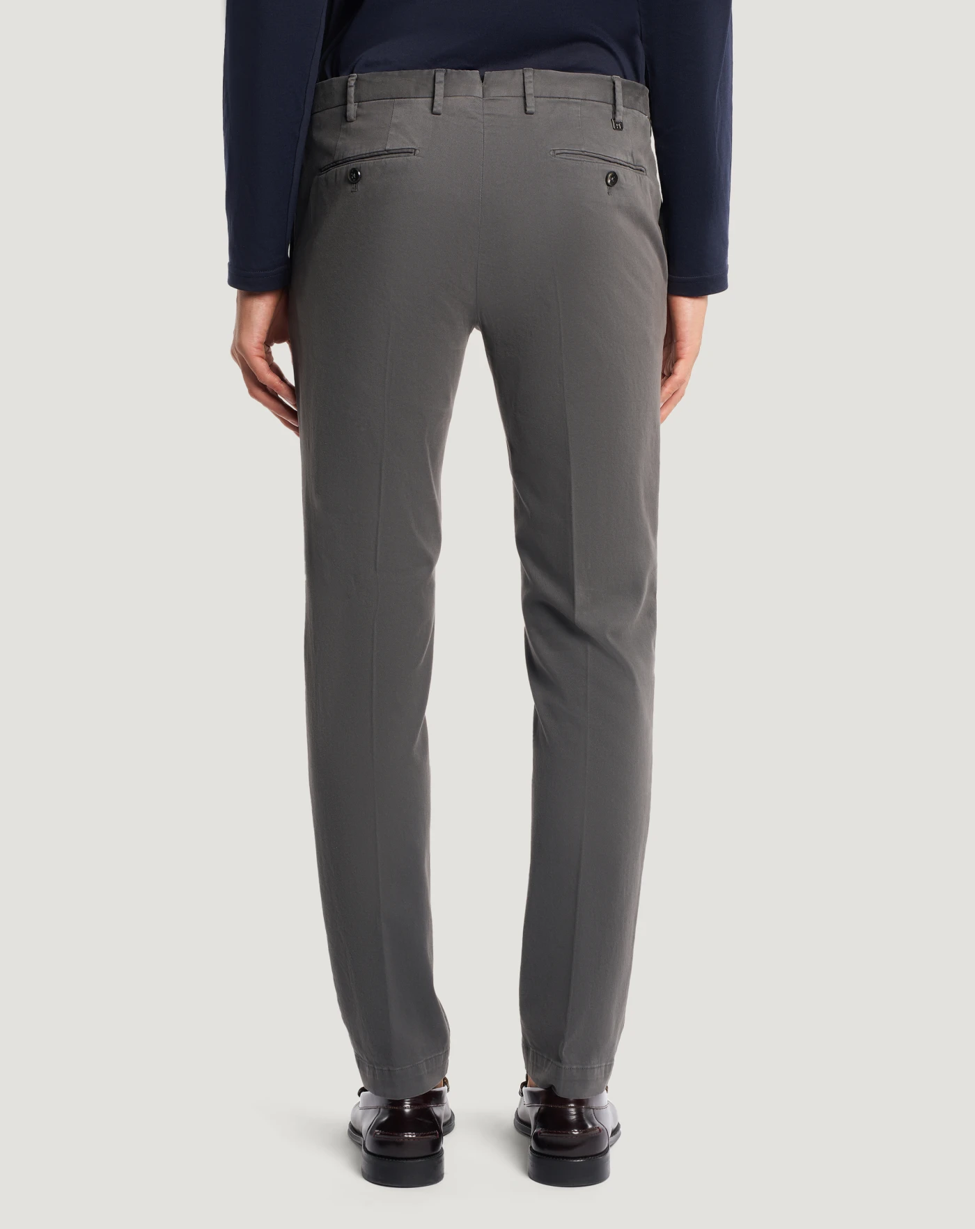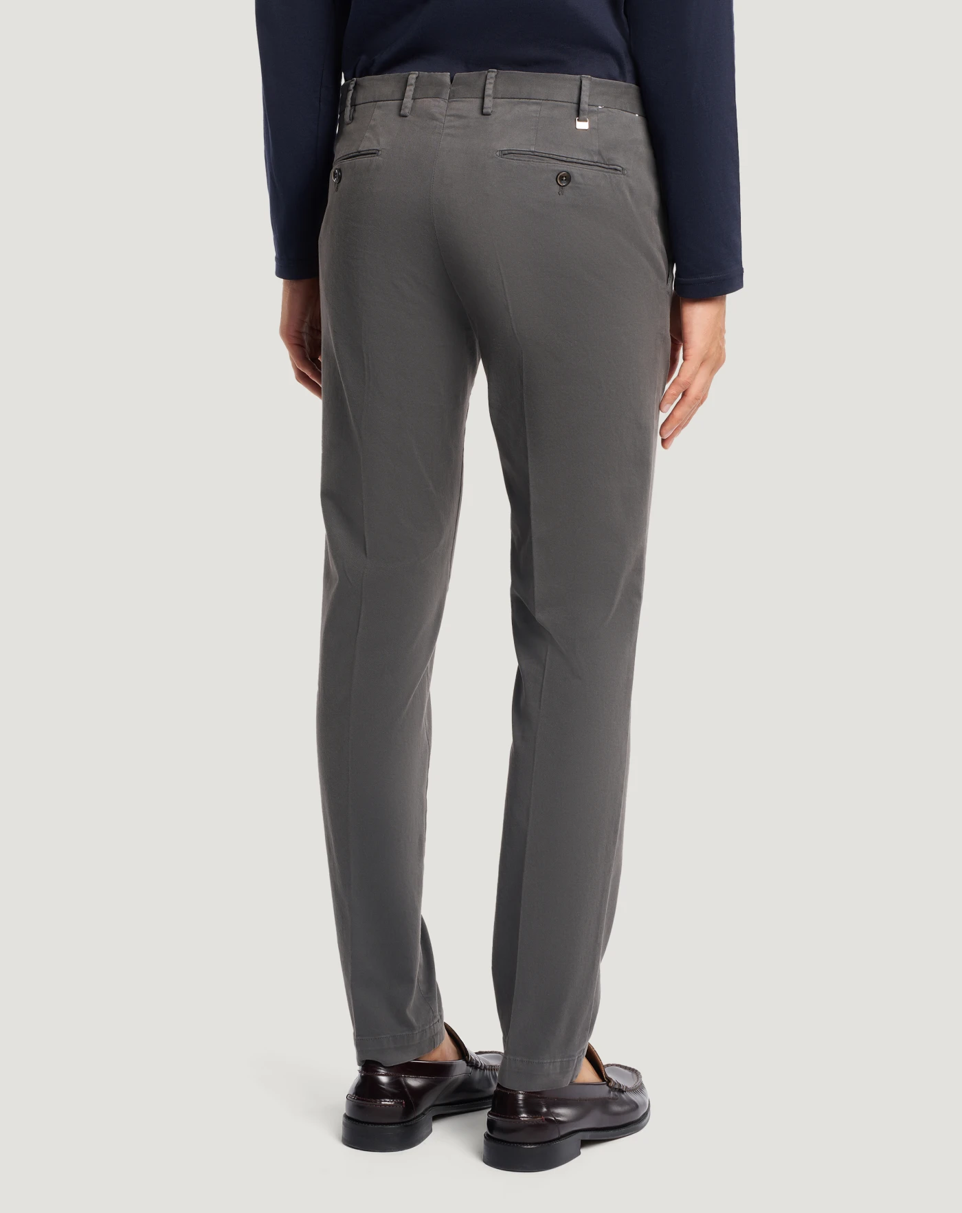 Trousers in stretch cotton winter gabardine with a compact and warm structure. Designed for the cold season, it combines comfort and durability with a soft, enveloping feel.The garment is delivered unstitched, so that it can be finished to suit your length and style through simple tailoring.Choose the anthracite grey variant to complete everyday looks with a sophisticated touch.