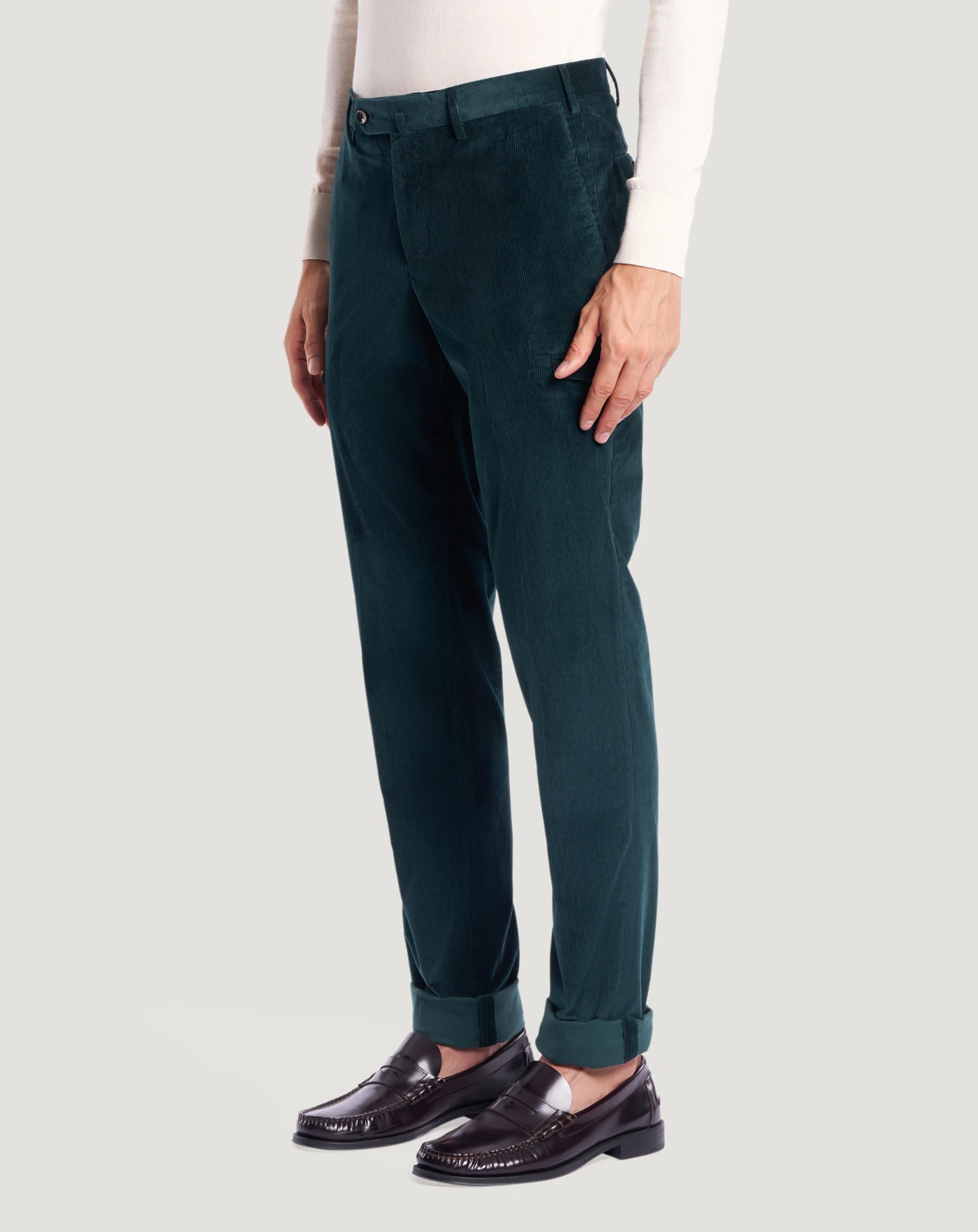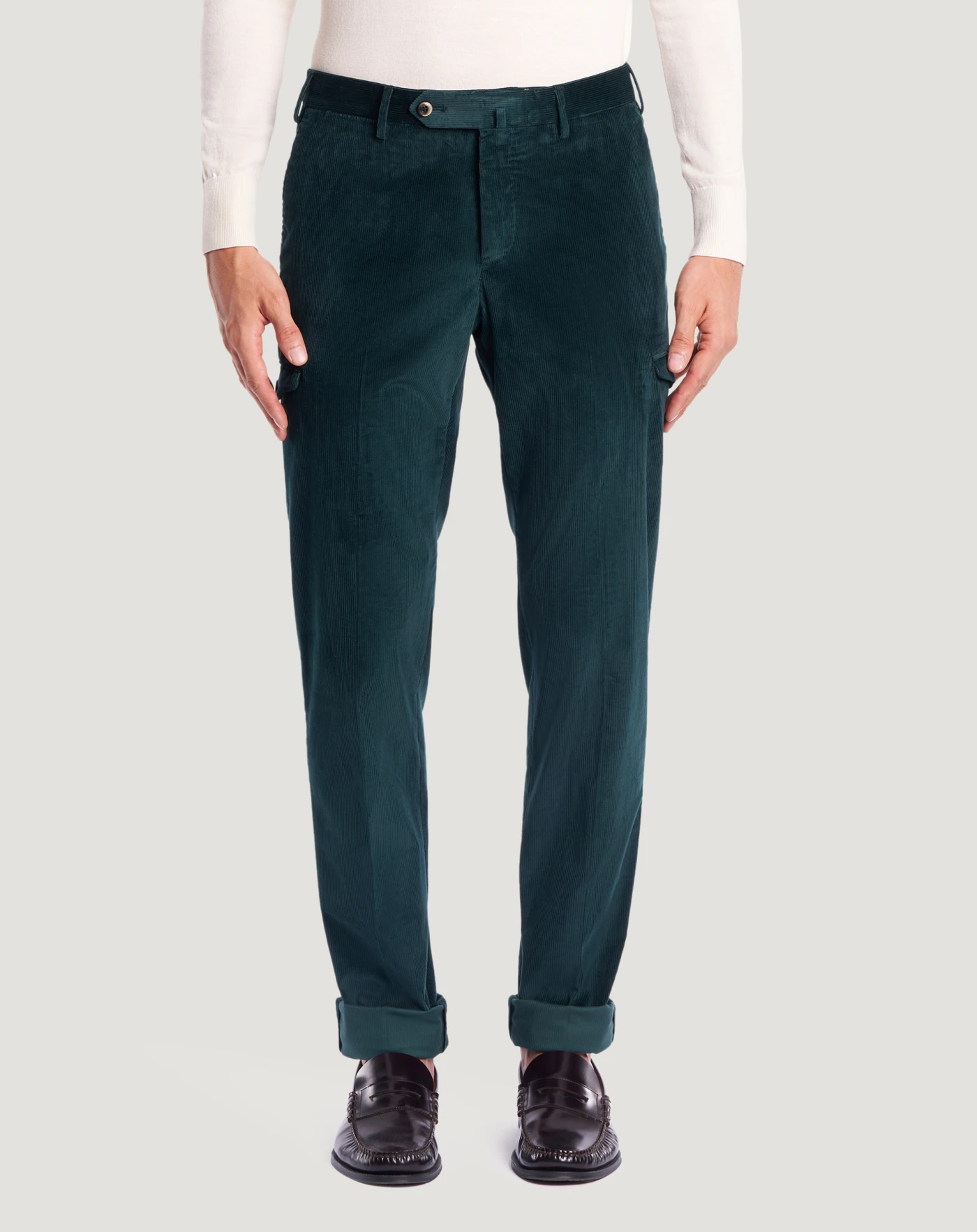 Trousers in stretch cotton-blend fine-rib velvet with a super-soft texture and bright colour.The garment is delivered unstitched, so that it can be finished to suit your length and style through simple tailoring.The design combines refined tailoring and utility details that instantly enhance your look.