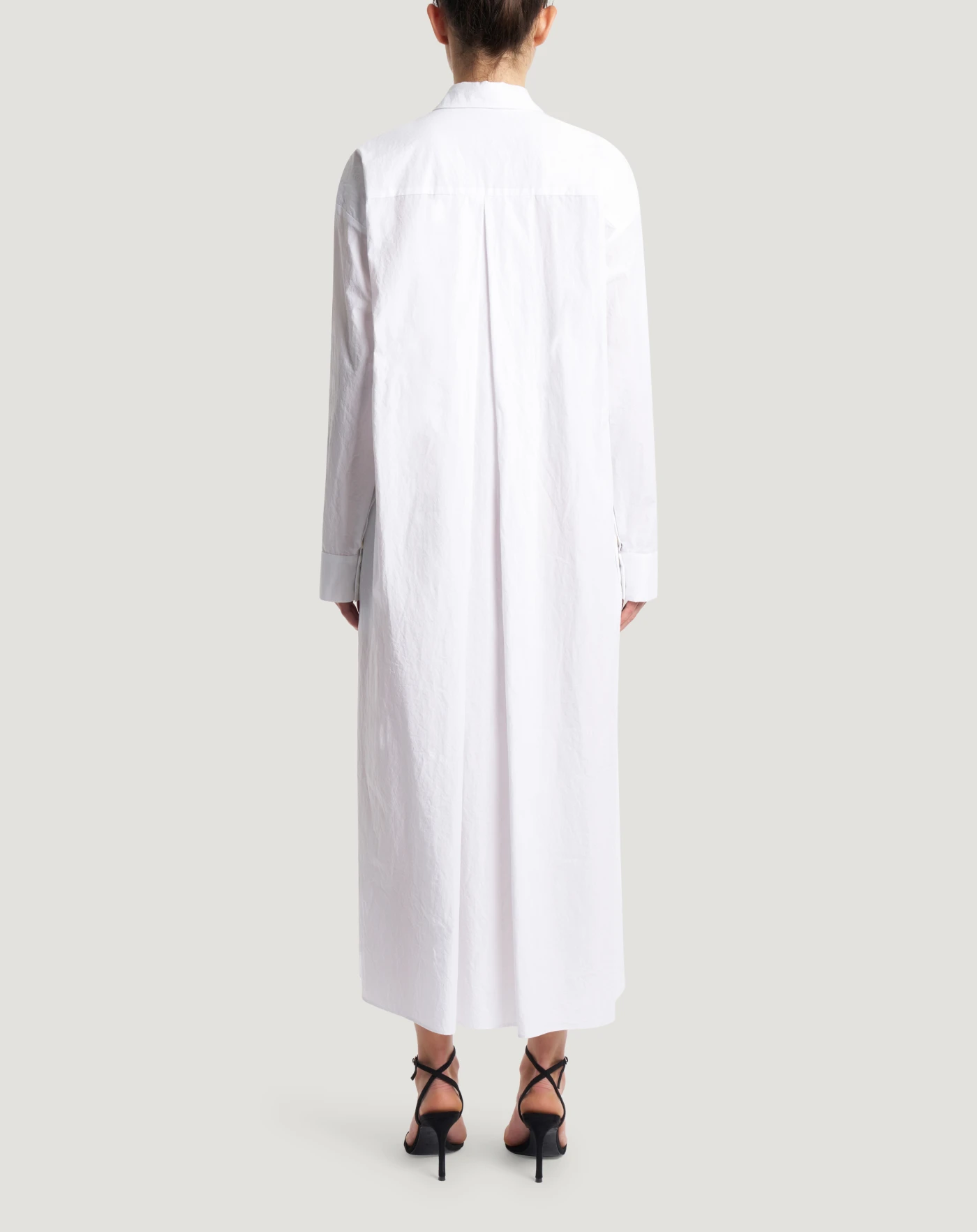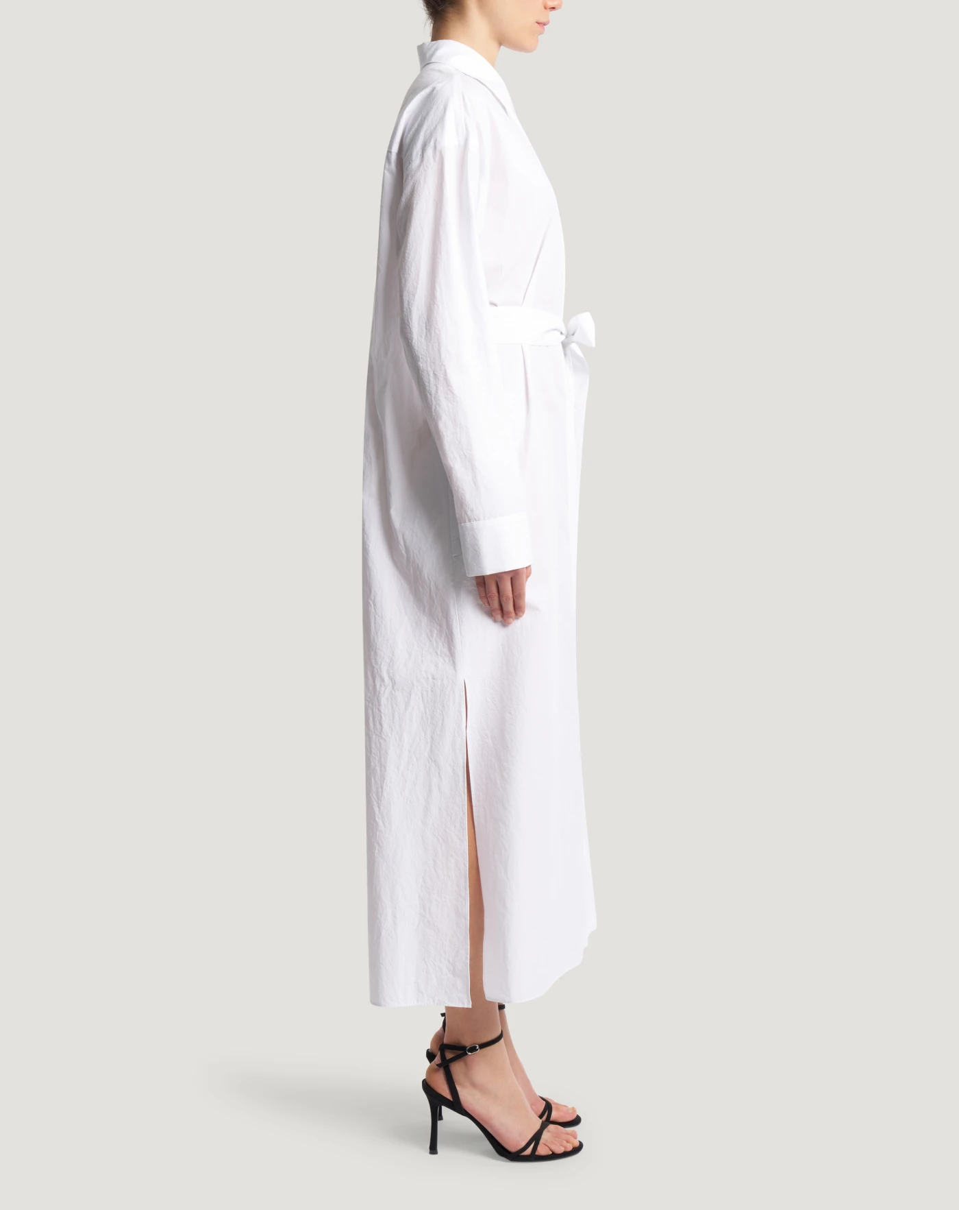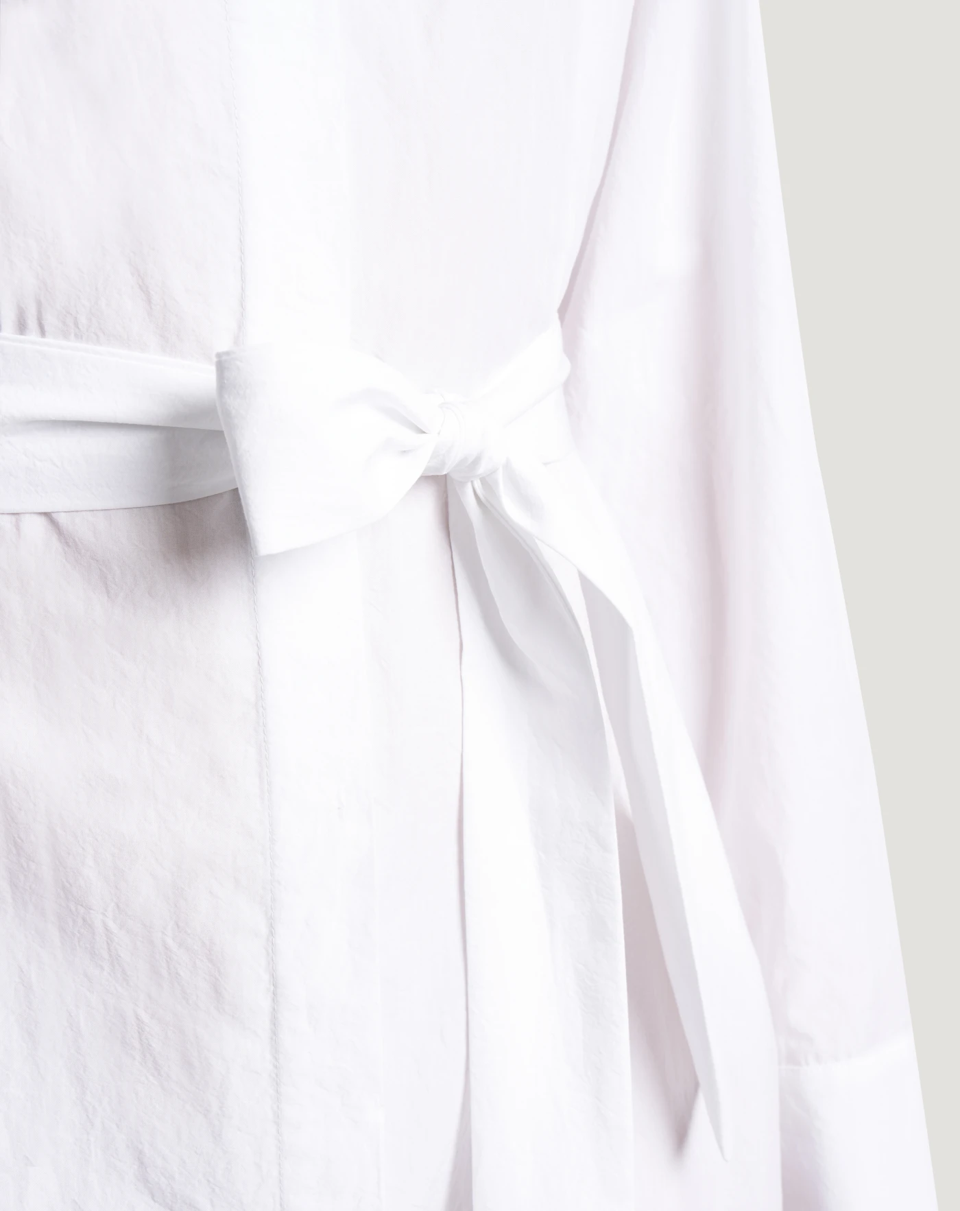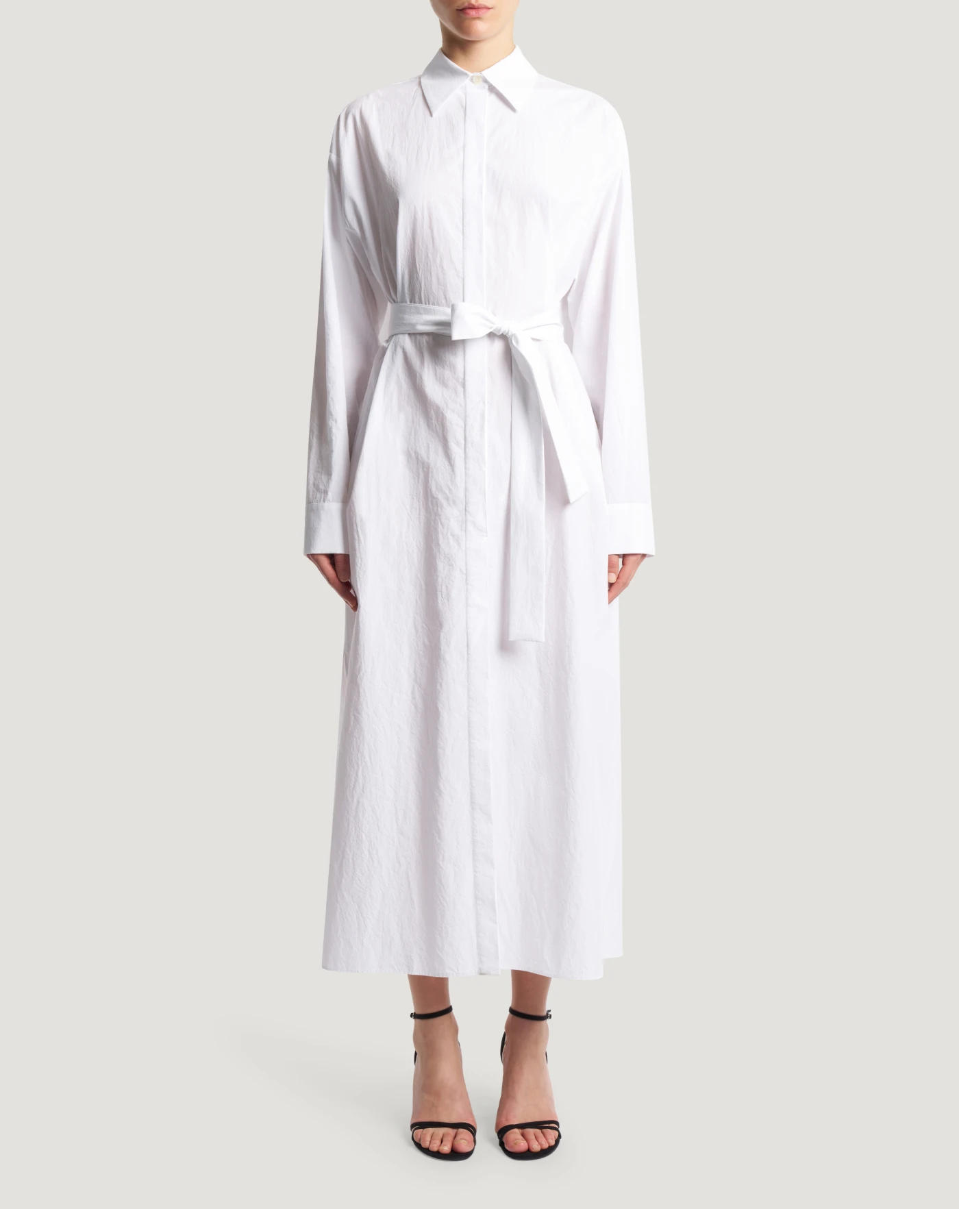 Abito chemisier in popeline di puro cotone crinkle. Da regolare in via con la cintura, sarà il jolly del tuo guardaroba daily.