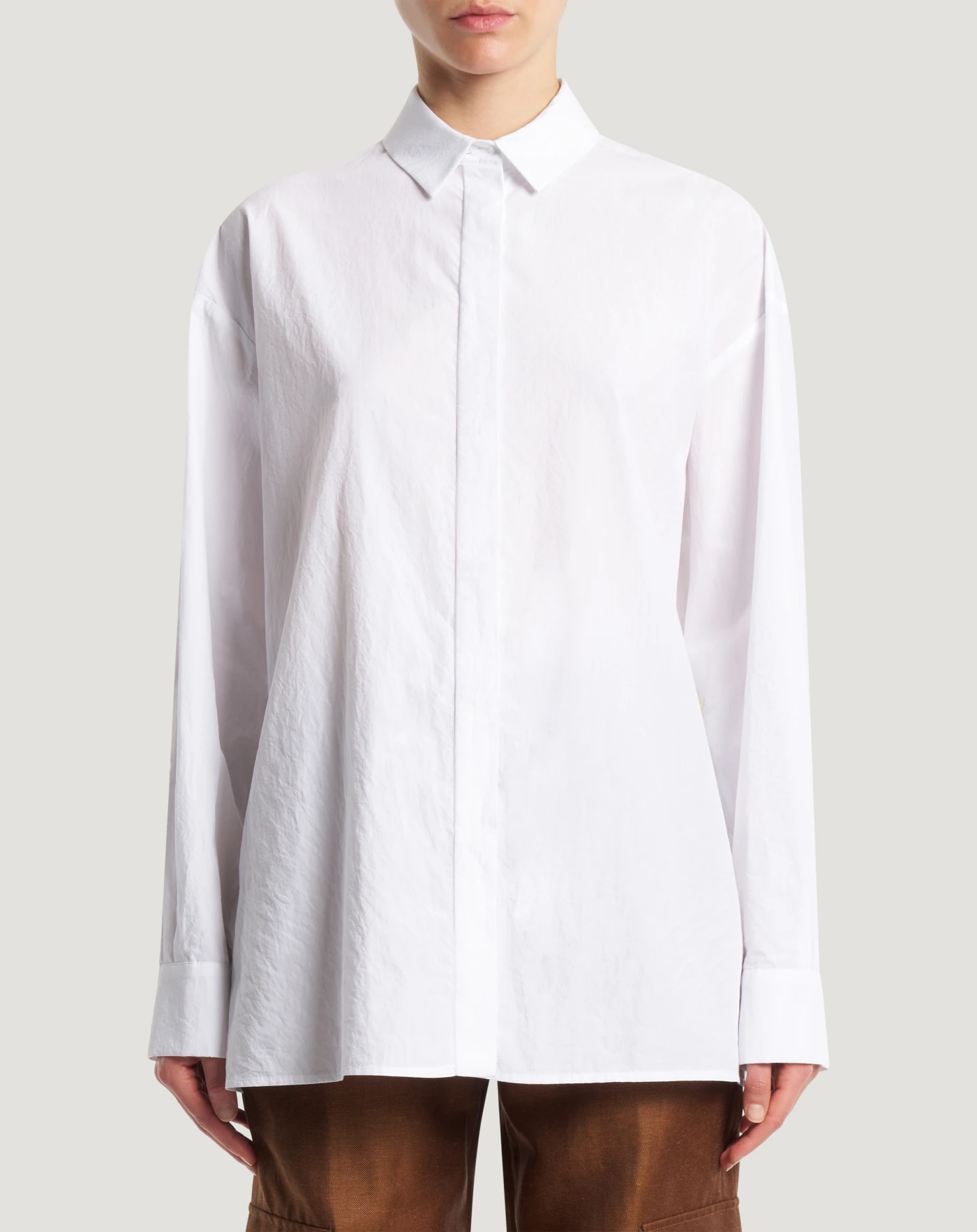Camicia in popeline di puro cotone lavato, un tessuto morbido, fresco e dall’aspetto rilassato. Linea over e bottoni alle maniche per un modello protagonista dei tuoi look daily.