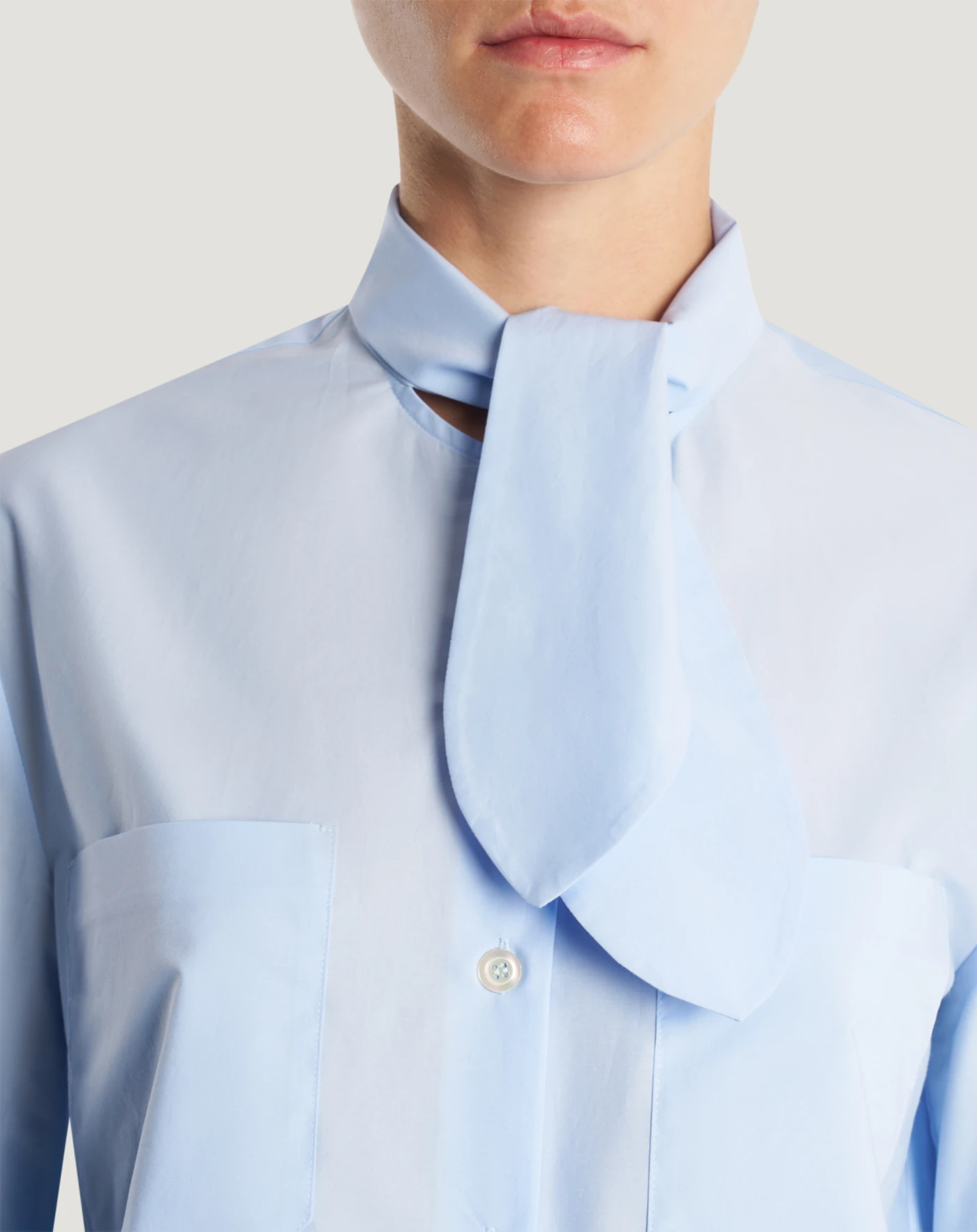 Camicia in popeline stretch 4season un tessuto tecnico ed elastico progettato per essere indossato tutto l’anno, grazie al suo equilibrio tra leggerezza, comfort e resistenza. Con linea boxy e fusciacca al collo, sarà il tocco femminile dei tuoi look casual e formali.