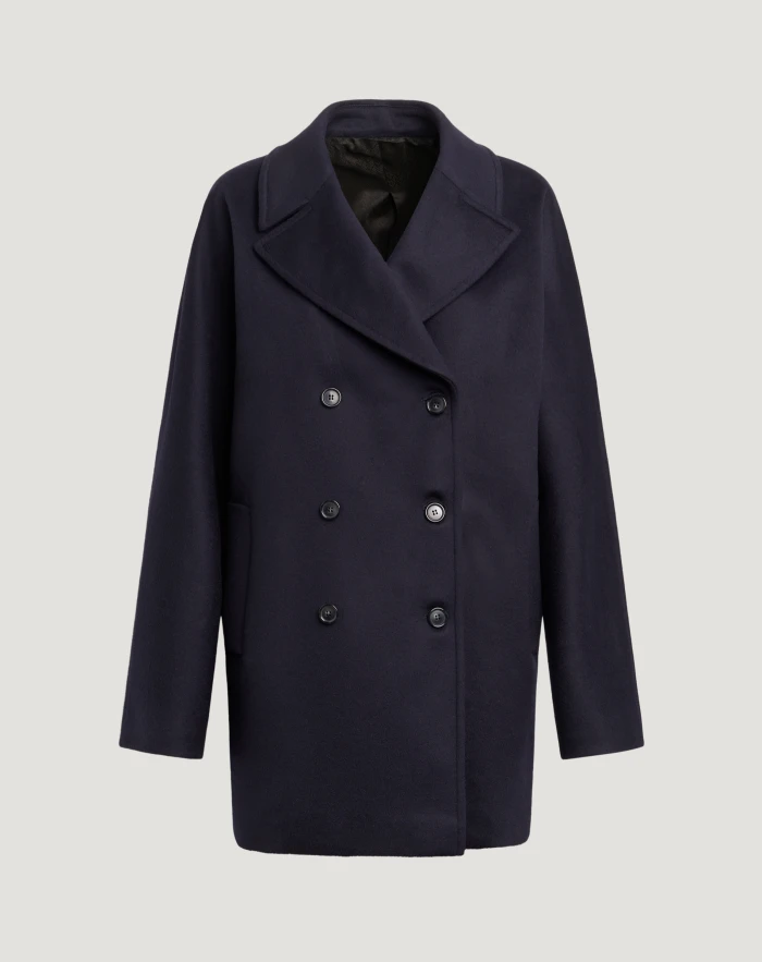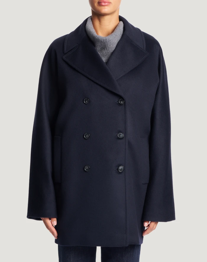 Cappotto in drap di lana e cachemire, un tessuto pregiato, caldo e confortevole. Il modello a kimono con ampi revers e chiusura doppiopetto, ha un'attitudine cittadina versatile e stand out.
