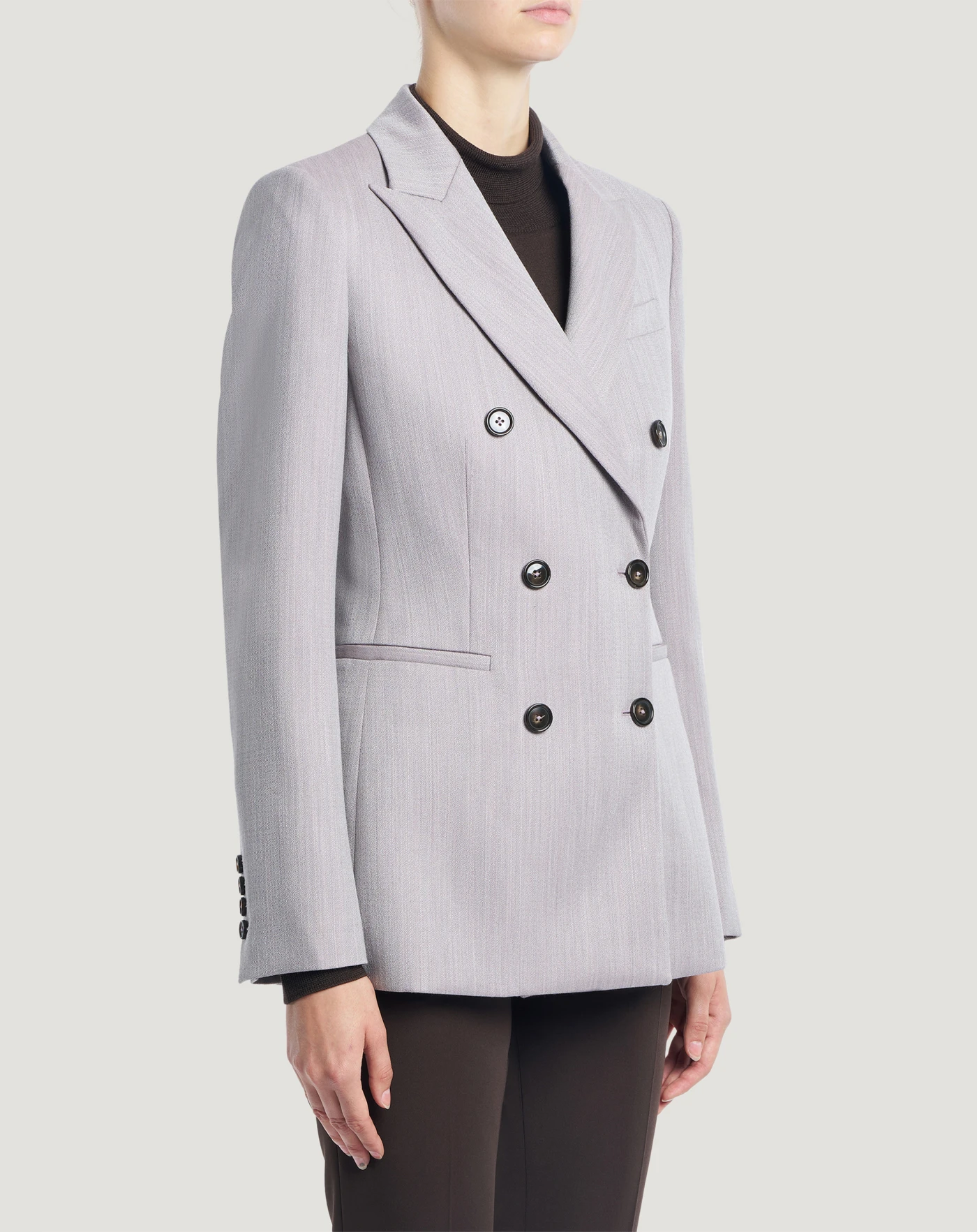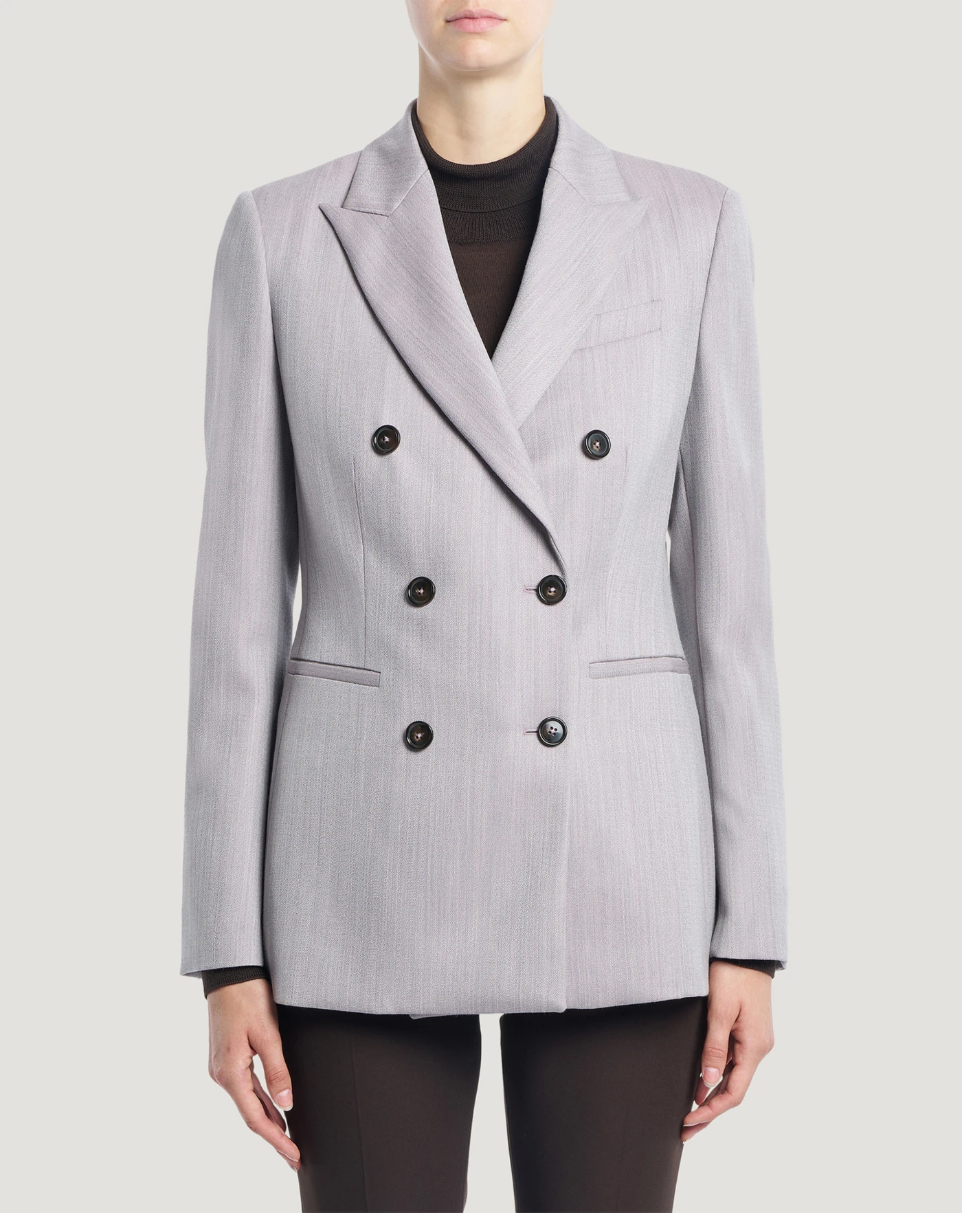 Giacca blazer in pura lana effetto malfilé, un tessuto soffice al tatto, confortevole da indossare e dall'aspetto lavorato. Con slim fit, chiusura doppiopetto e revers a lancia è perfetta per un'occasione speciale, anche in abbinamento ai pantaloni in coordinato.