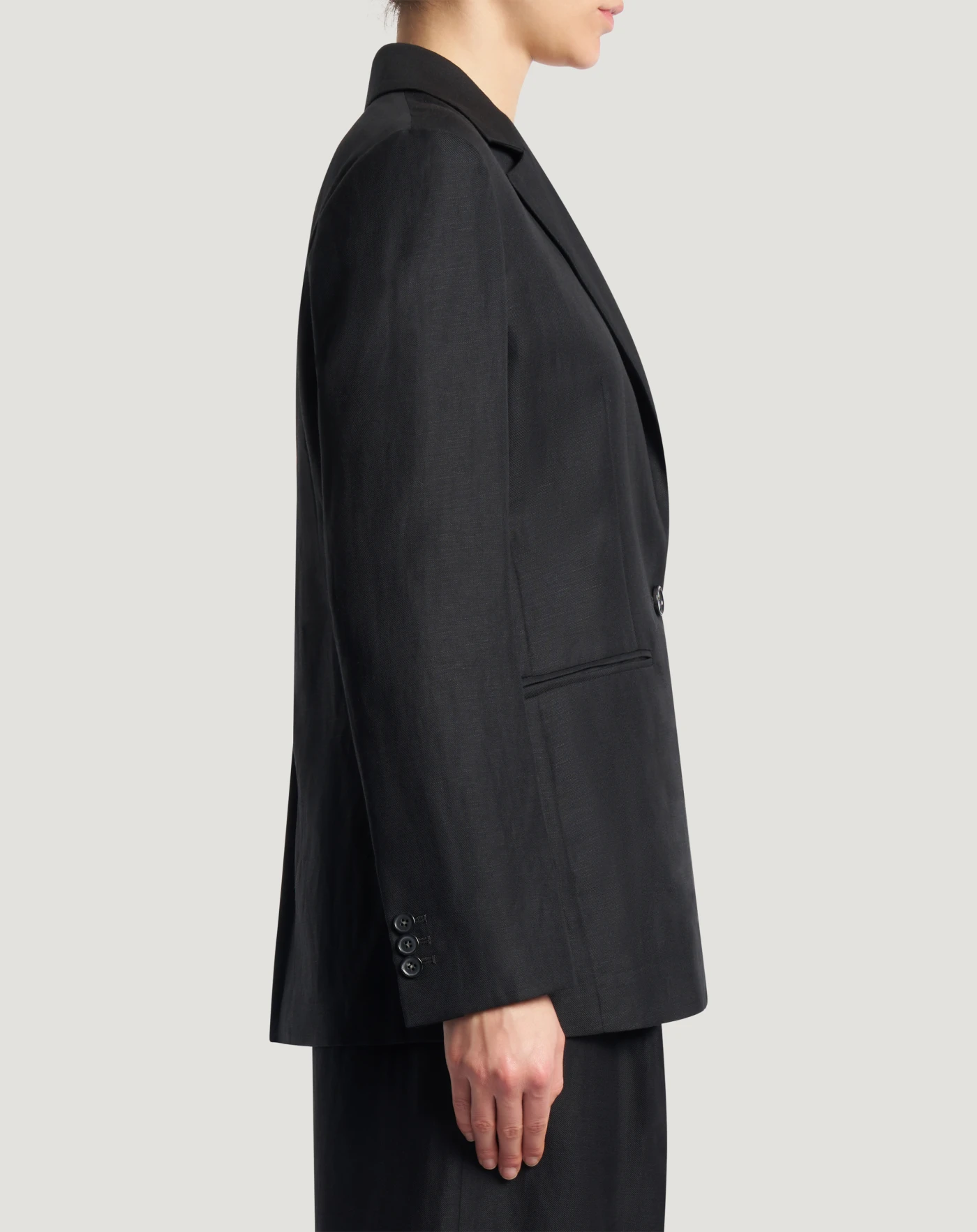 Giacca in twill di viscosa e lino, un tessuto ad armatura diagonale che combina la freschezza naturale del lino con l’eleganza e la morbidezza della lana. Con linea slim e chiusura monopetto, è un modello perfetto nel quotidiano, anche in abbinamento ai pantaloni in coordinato.