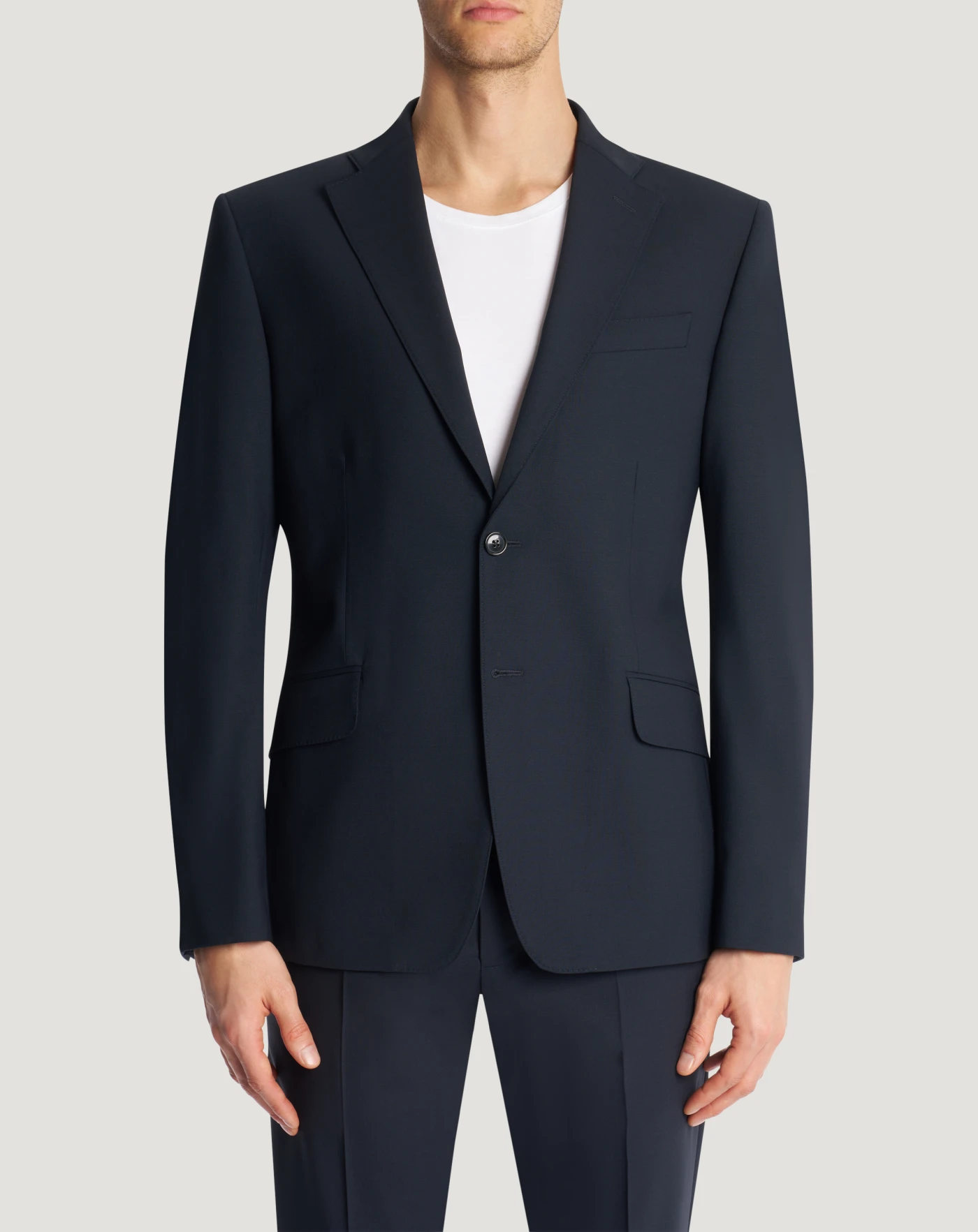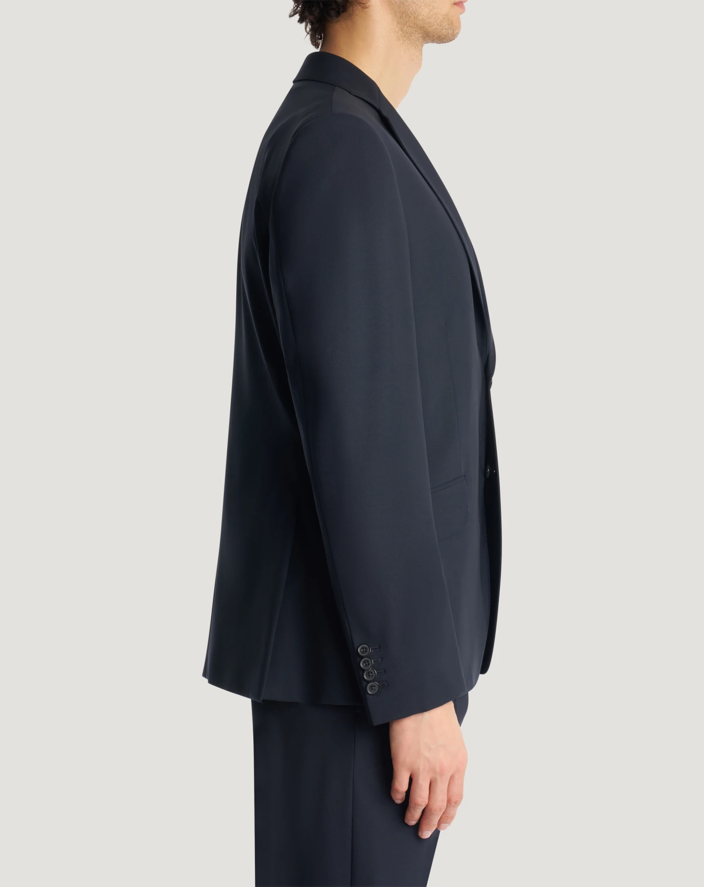 Giacca in lana vergine b-stretch tropical, un tessuto in armatura tela fresco e adatto alla stagione. Con chiusura monopetto e tasche con patta ha un fascino essenziale, che puoi abbinare ai pantaloni in coordinato.